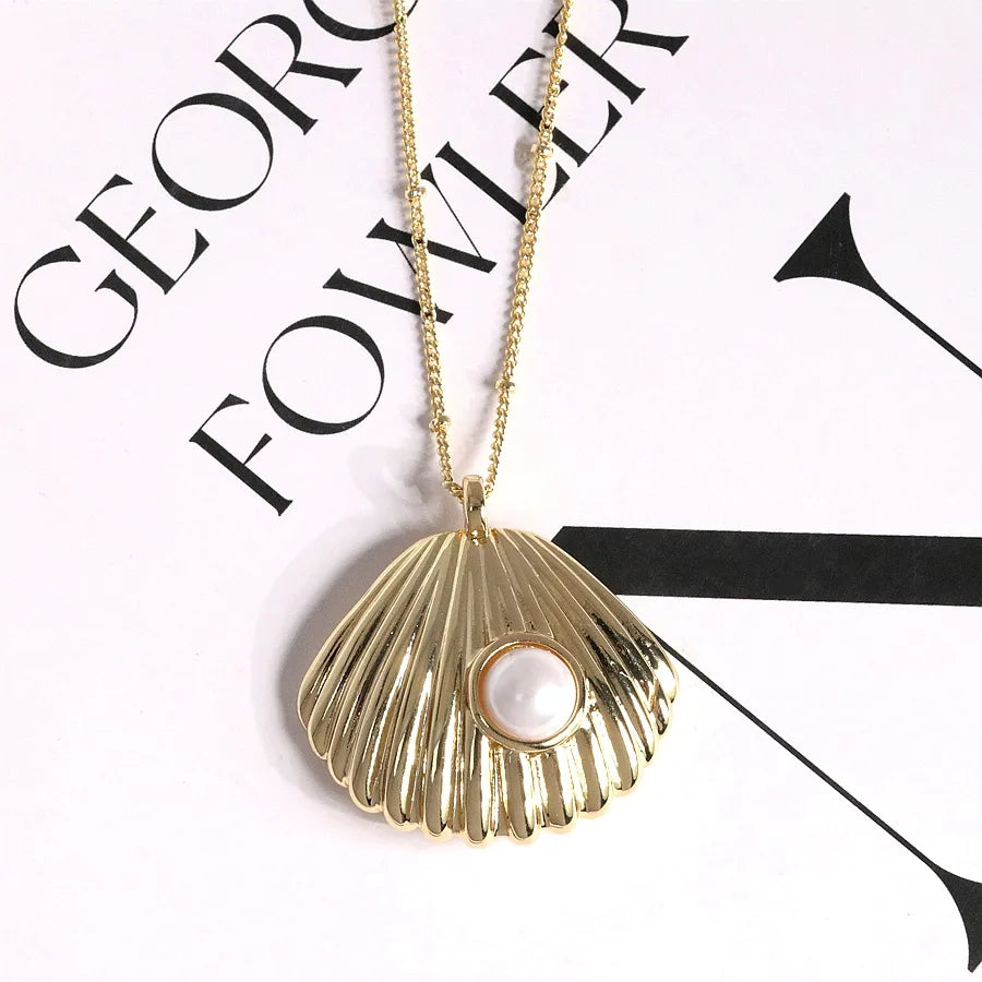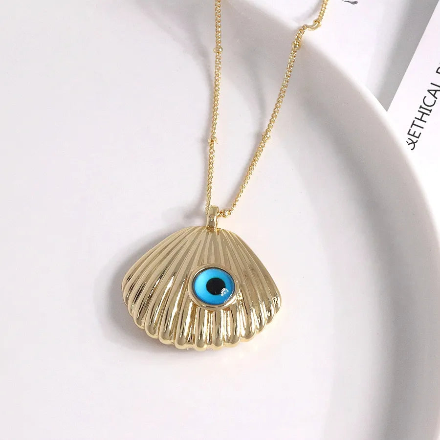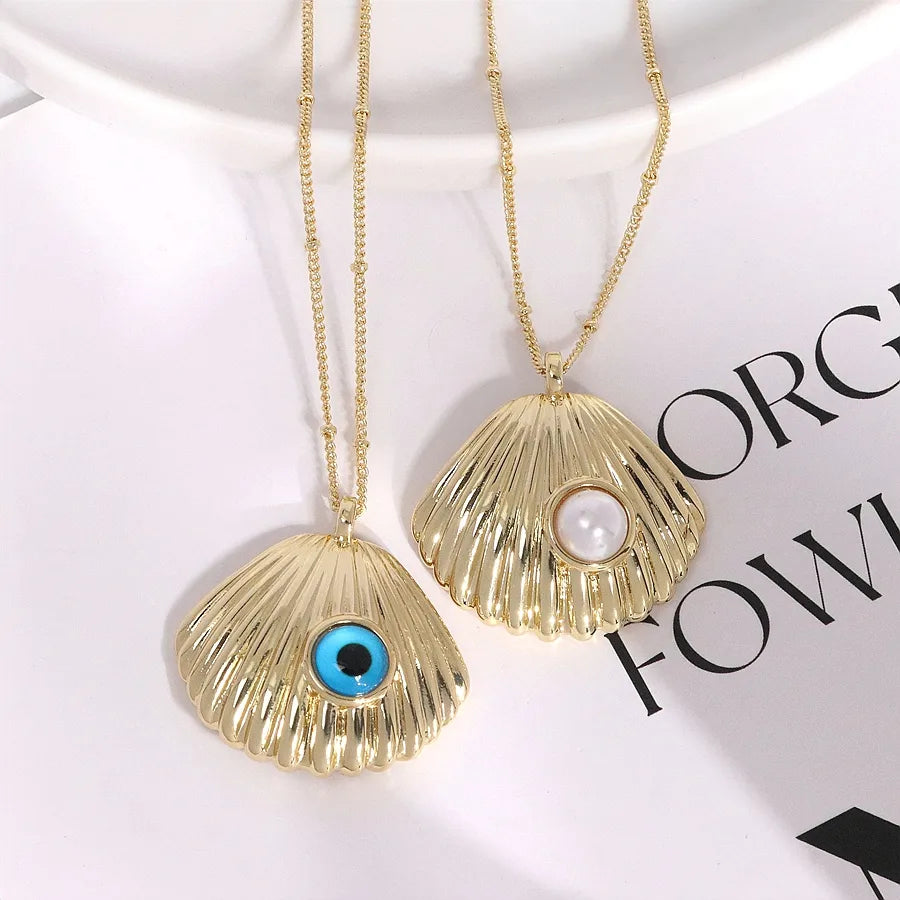 Fashionable Ocean Vacation Pearl Scallop Pendant Necklace Simple Shell Blue Eye Bead Chain Necklace For Women Lobster Clasp - Style 1