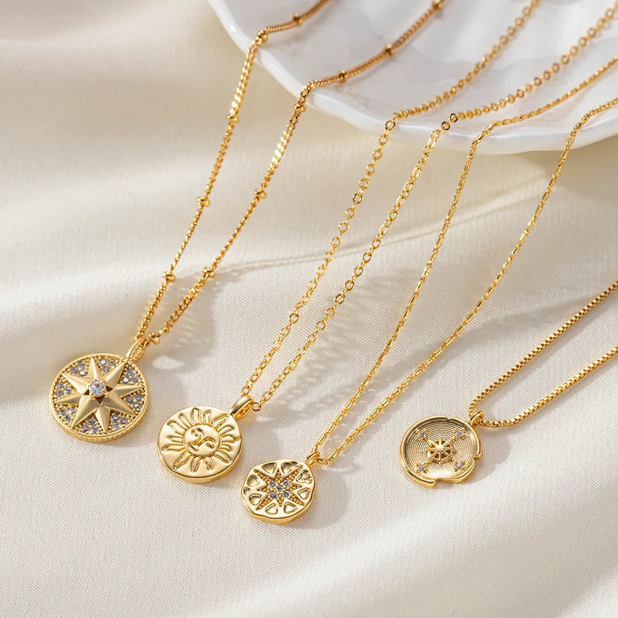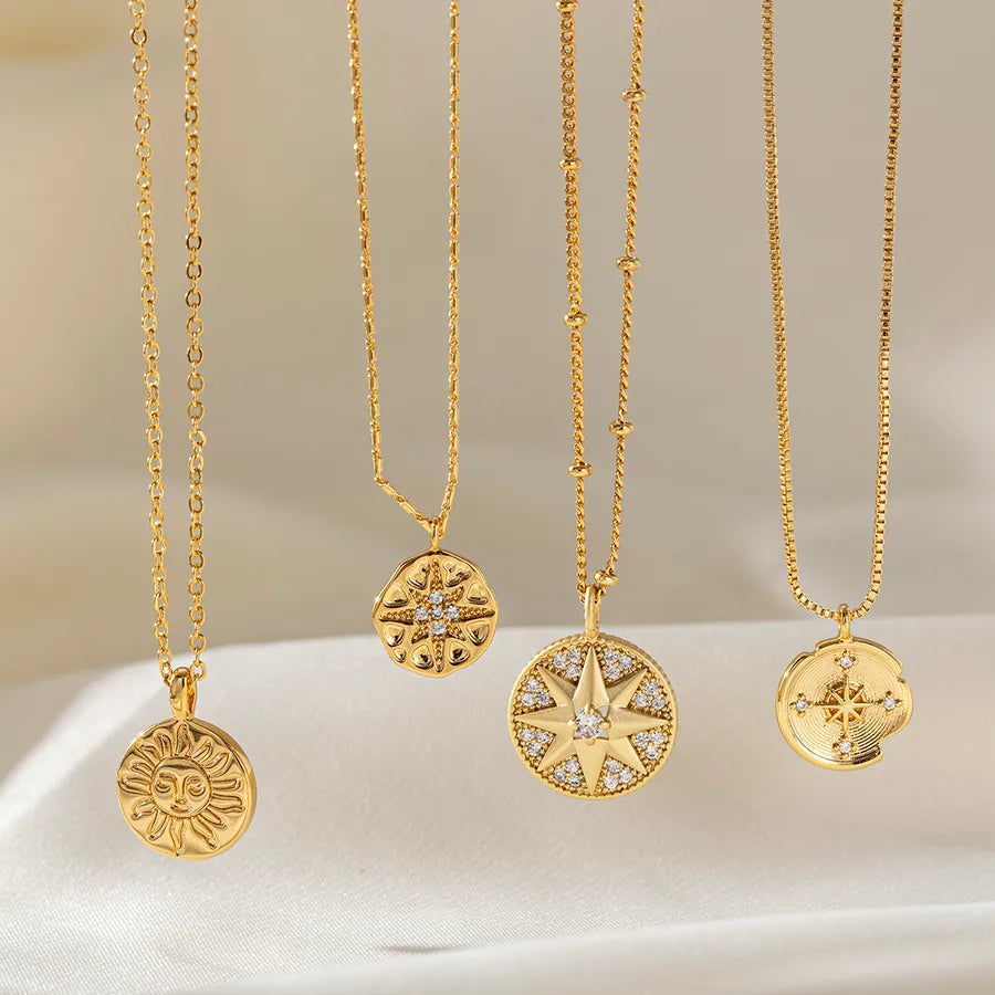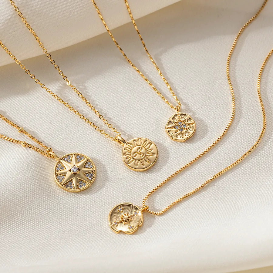 Fashionable Retro Compass Pendant Necklace Women's Trendy Minimalist Commute High-End Feel Summer Hit Round Pattern Copper Alloy - 1908ZJ04044XL