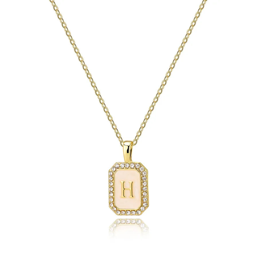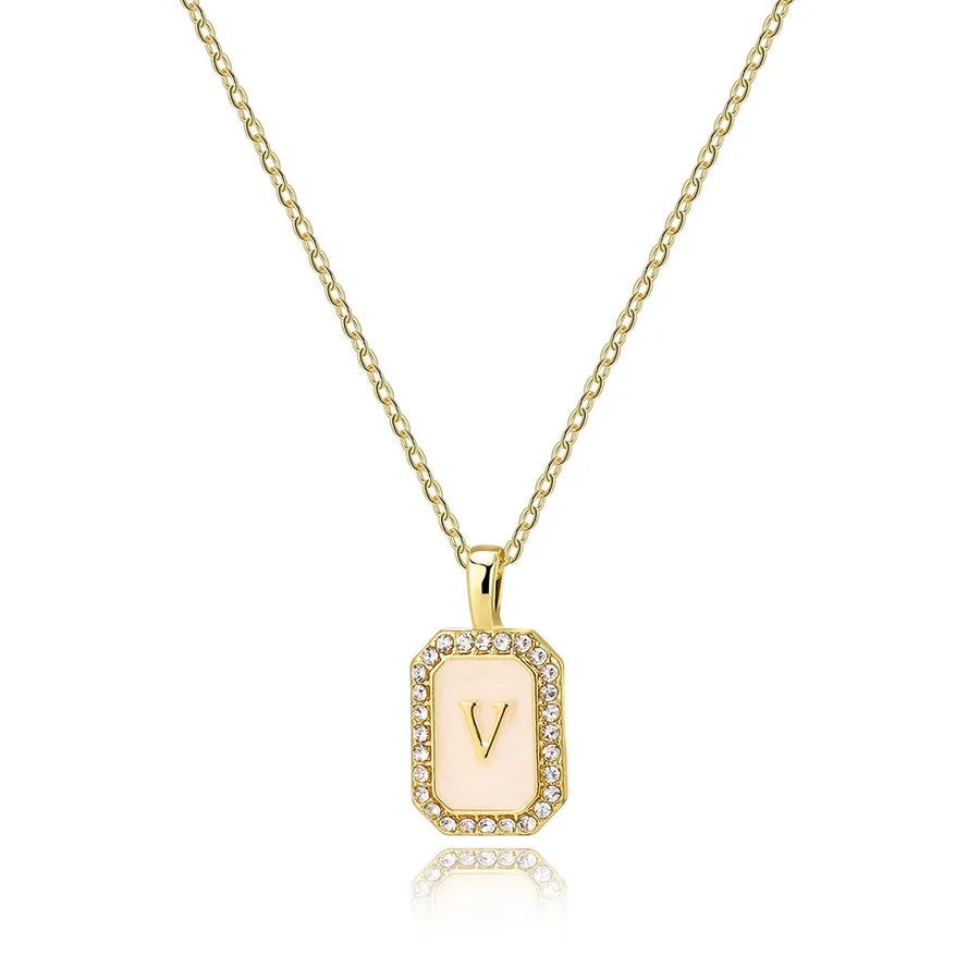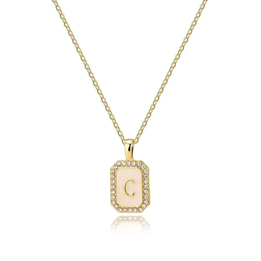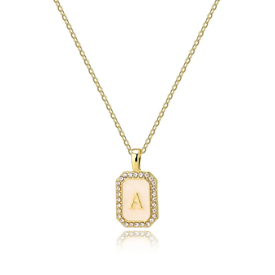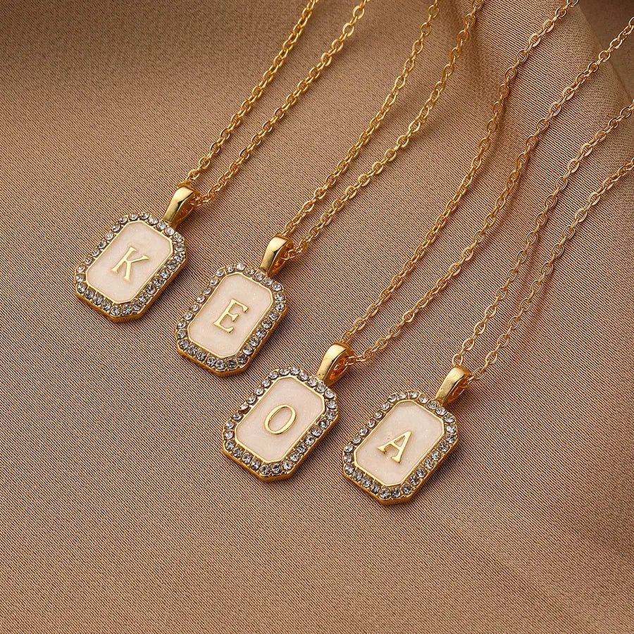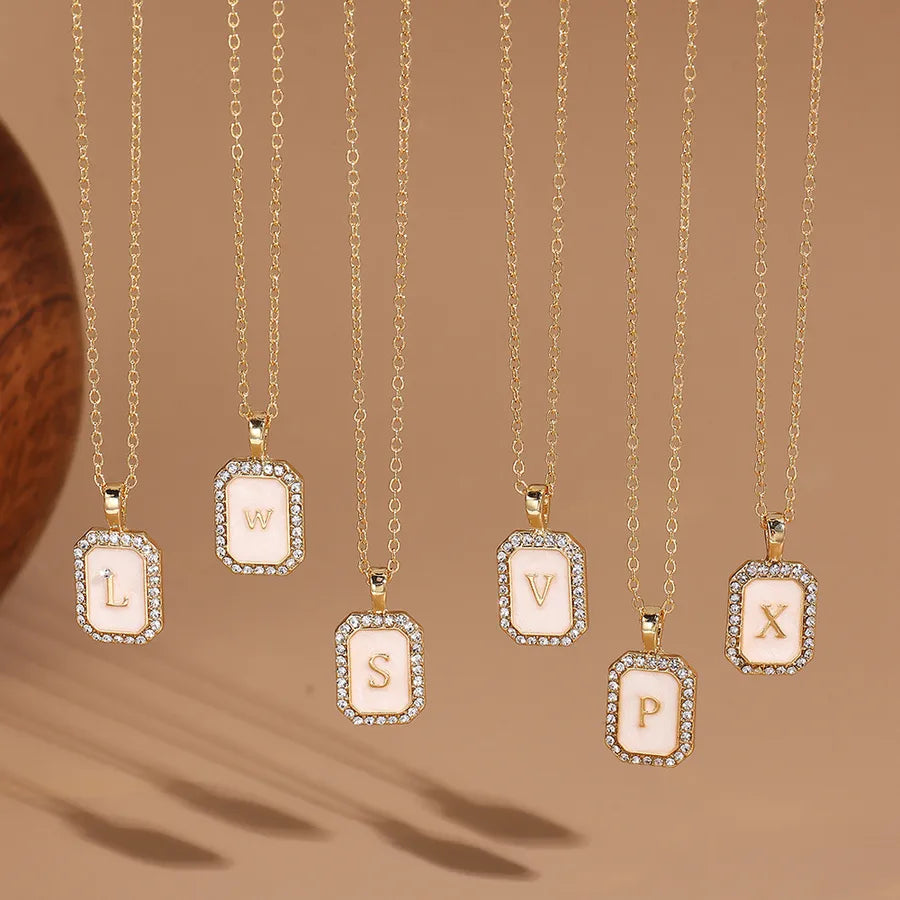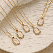 Fashionable Square Letter Shell Pendant Necklace 26 English Alphabet Zircon Stone Women's Personalized Alloy Jewelry Accessory - A