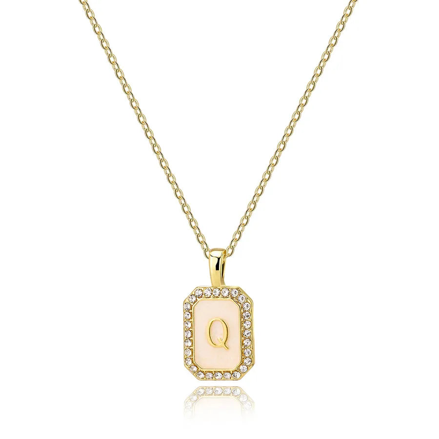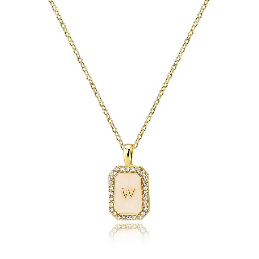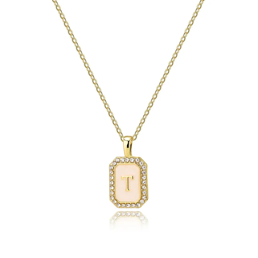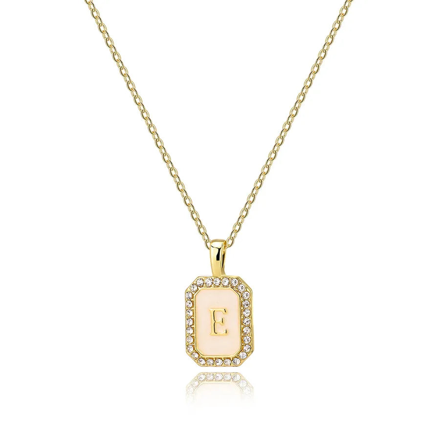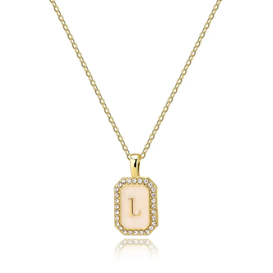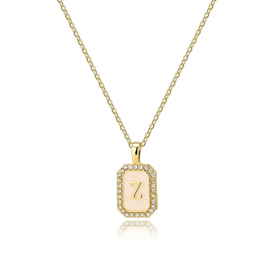 Fashionable Square Letter Shell Pendant Necklace 26 English Alphabet Zircon Stone Women's Personalized Alloy Jewelry Accessory - A