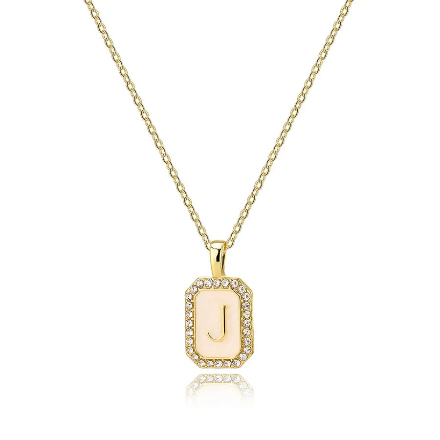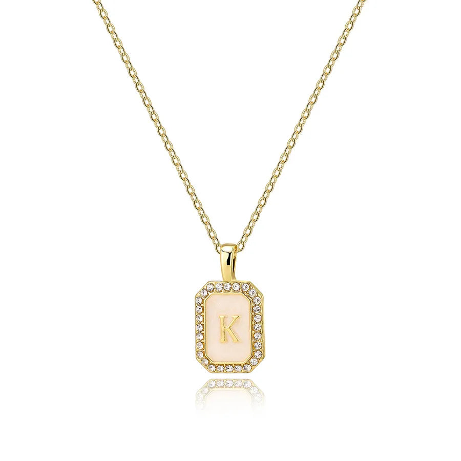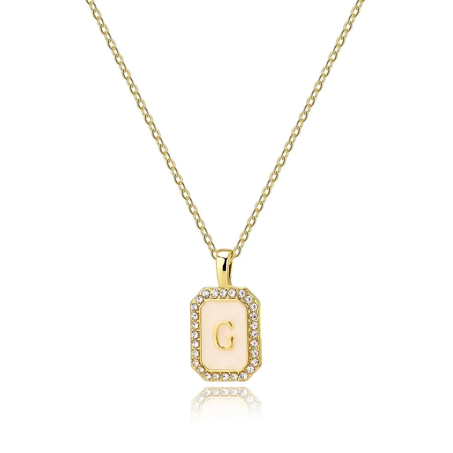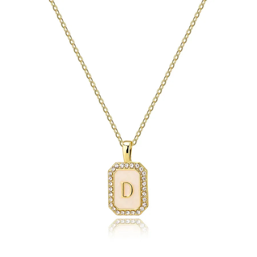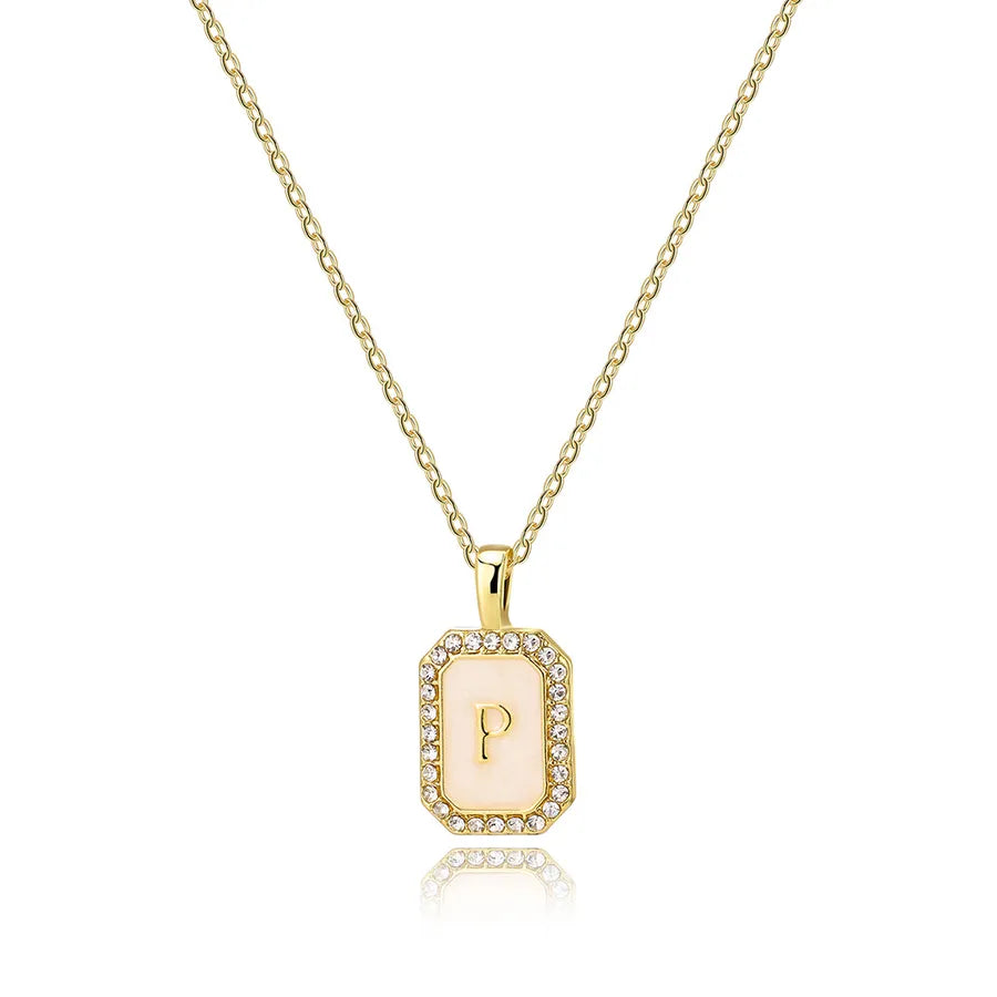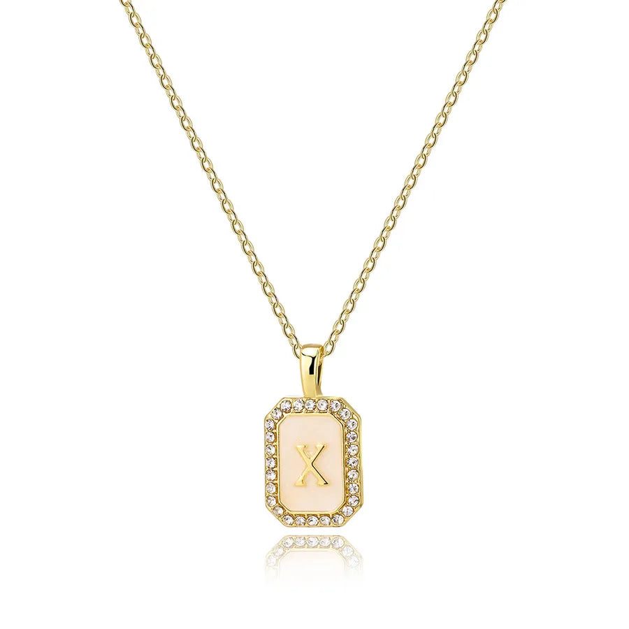 Fashionable Square Letter Shell Pendant Necklace 26 English Alphabet Zircon Stone Women's Personalized Alloy Jewelry Accessory - A