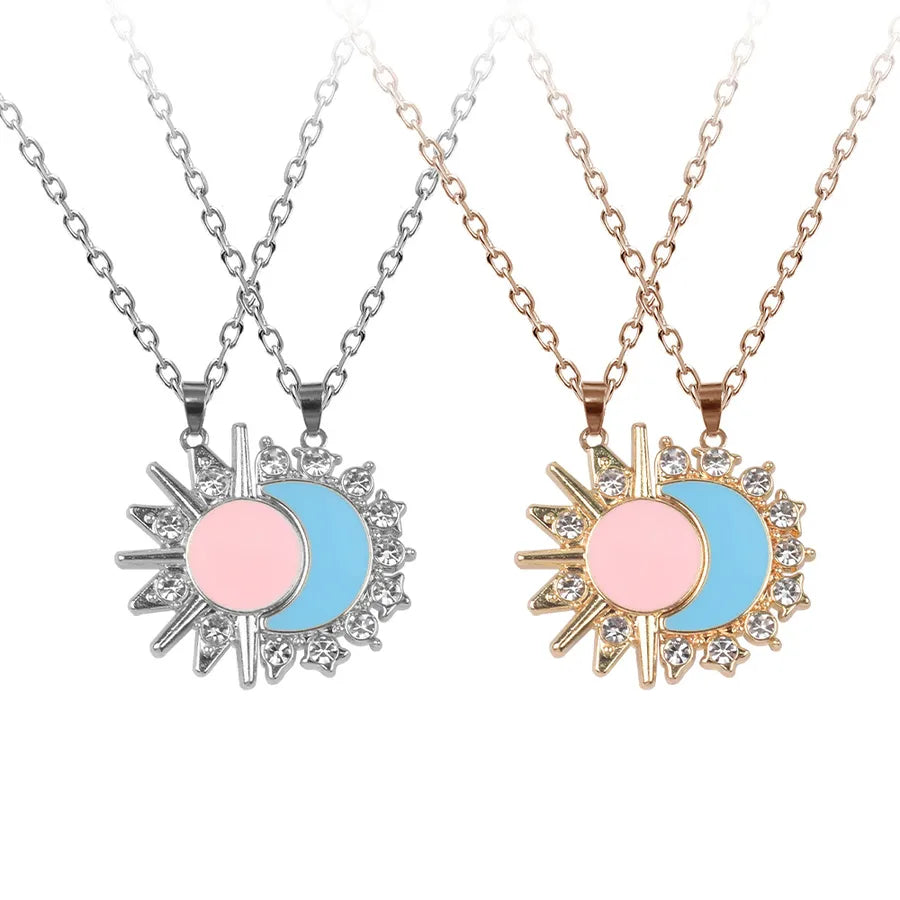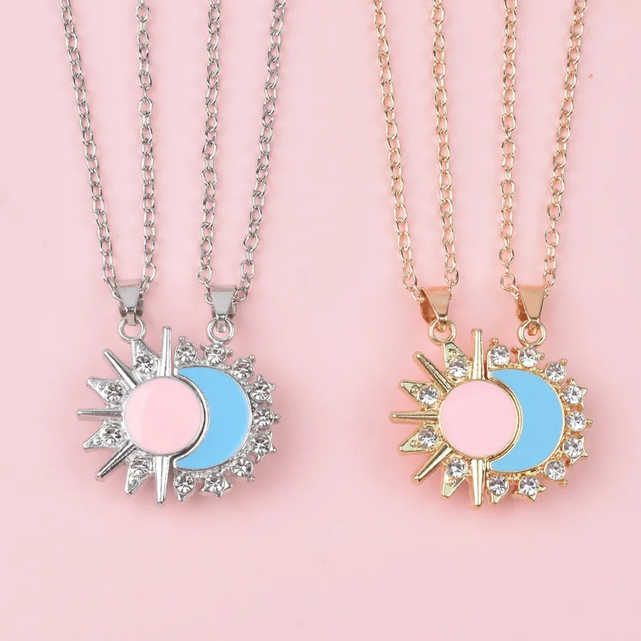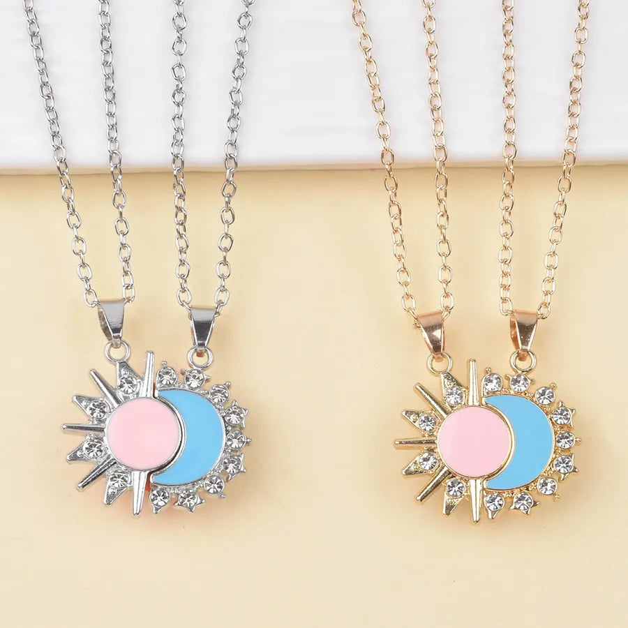 Fashionable Sun Moon Diamond Embedded Necklace Set For Men And Women Couple Pendant Geometric Pattern Alloy Jewelry Accessory - HQ617 Gold