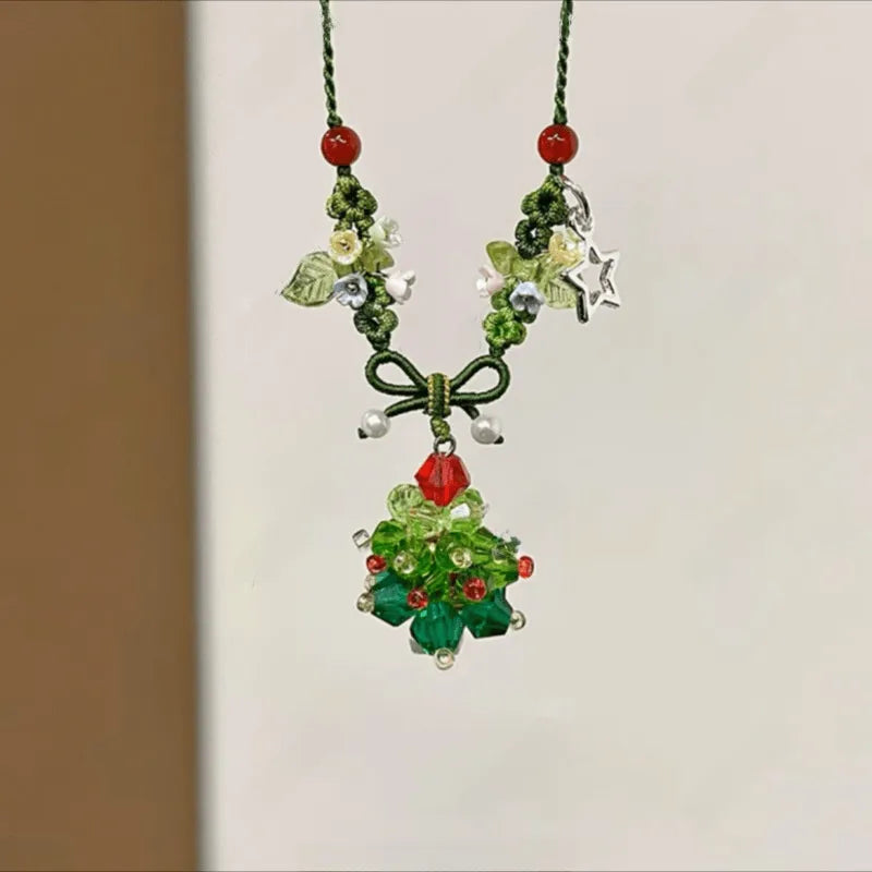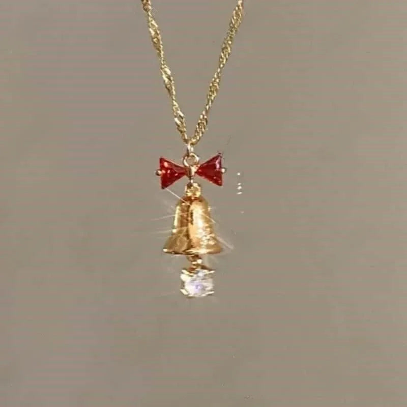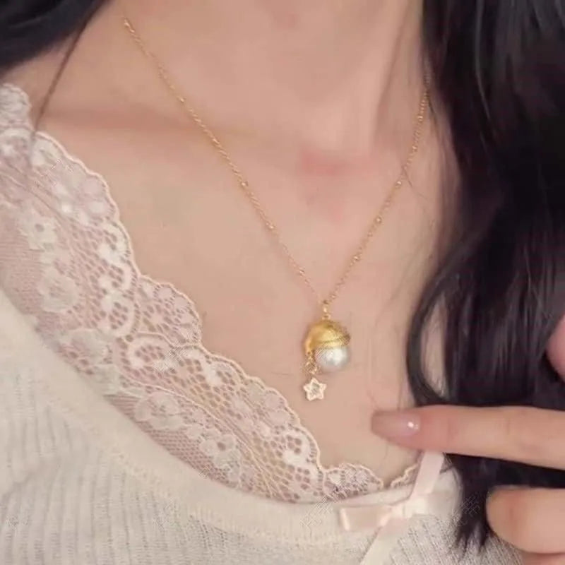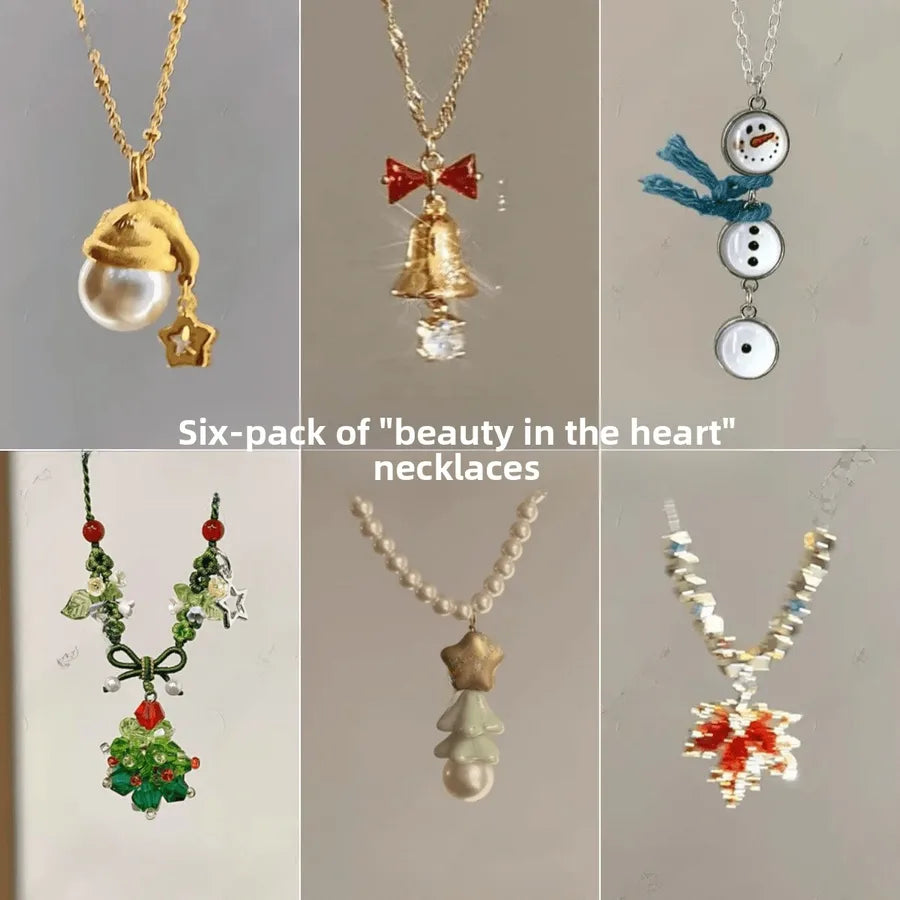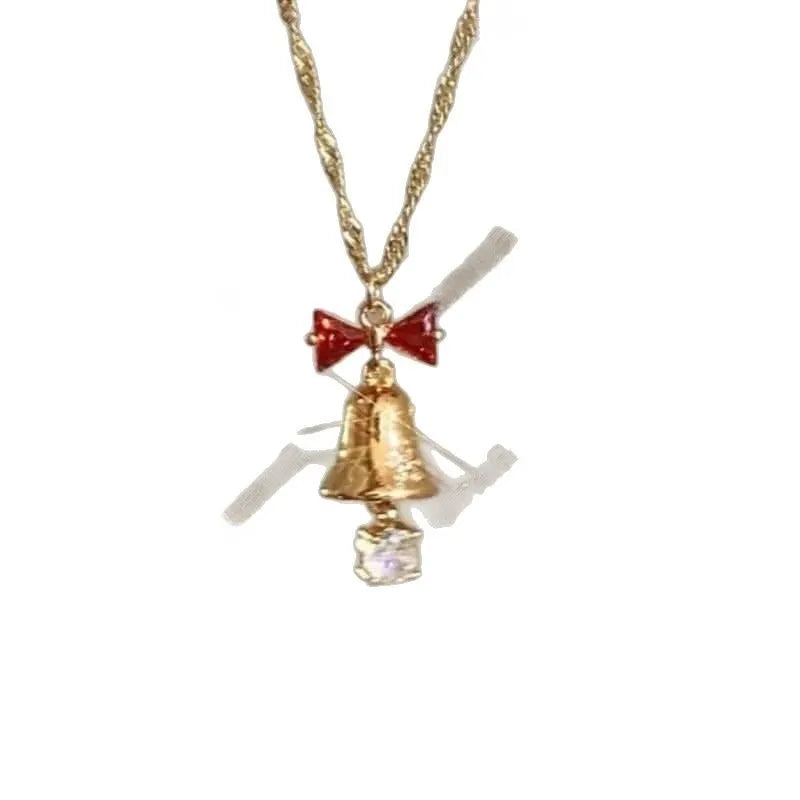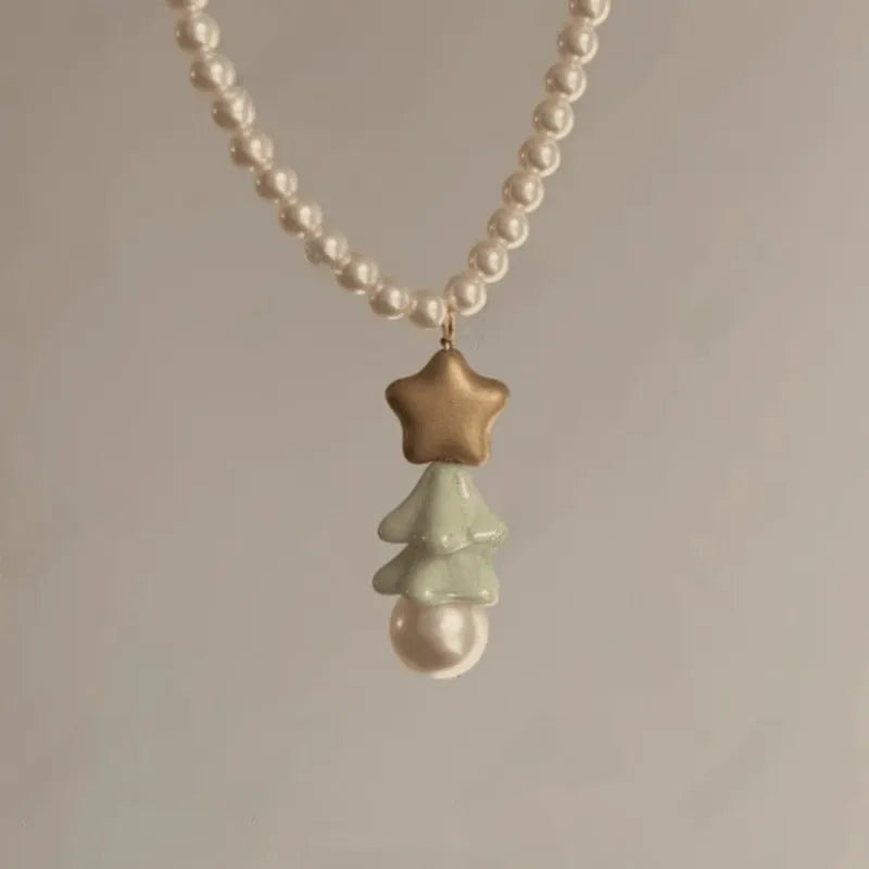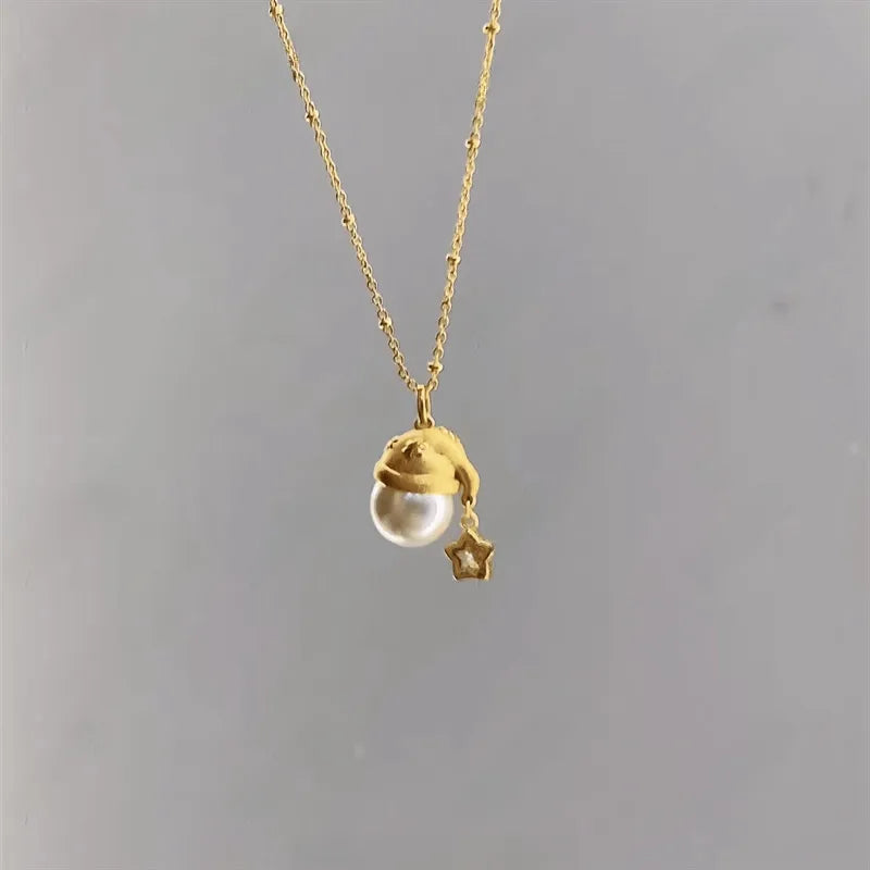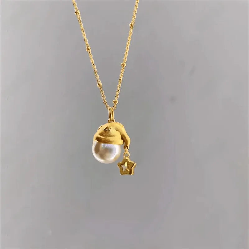 Golden Filing Christmas Hat Necklace Women's Pearl Star Pendant Necklace Elegant Baubles Mixed Material Earrings Cartoon Style - 9637