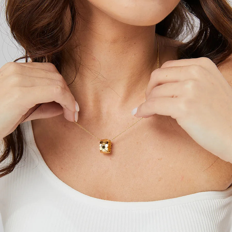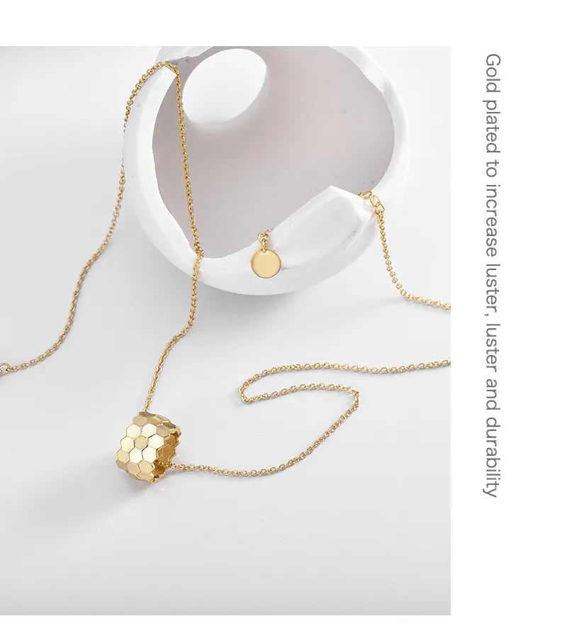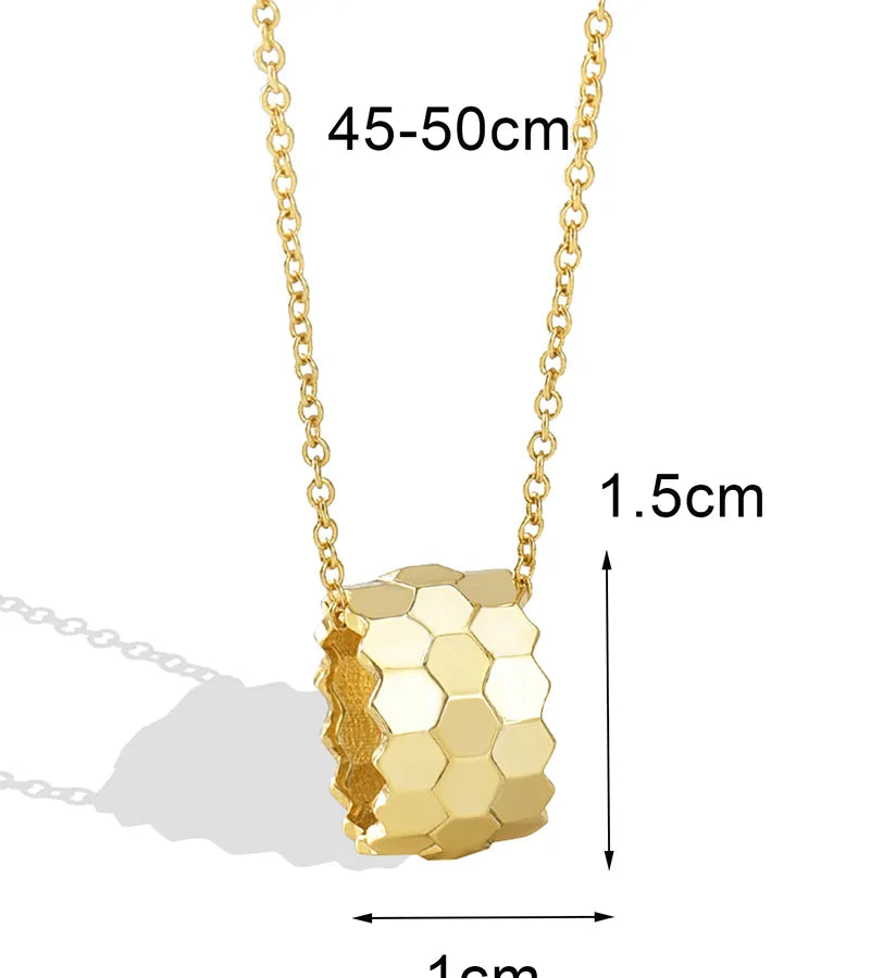 Golden Honeycomb Design Pendant Women's High Fashion Luxury Necklace Spring Buckle Copper Alloy Suitable For All Seasons - Average Size / Gold