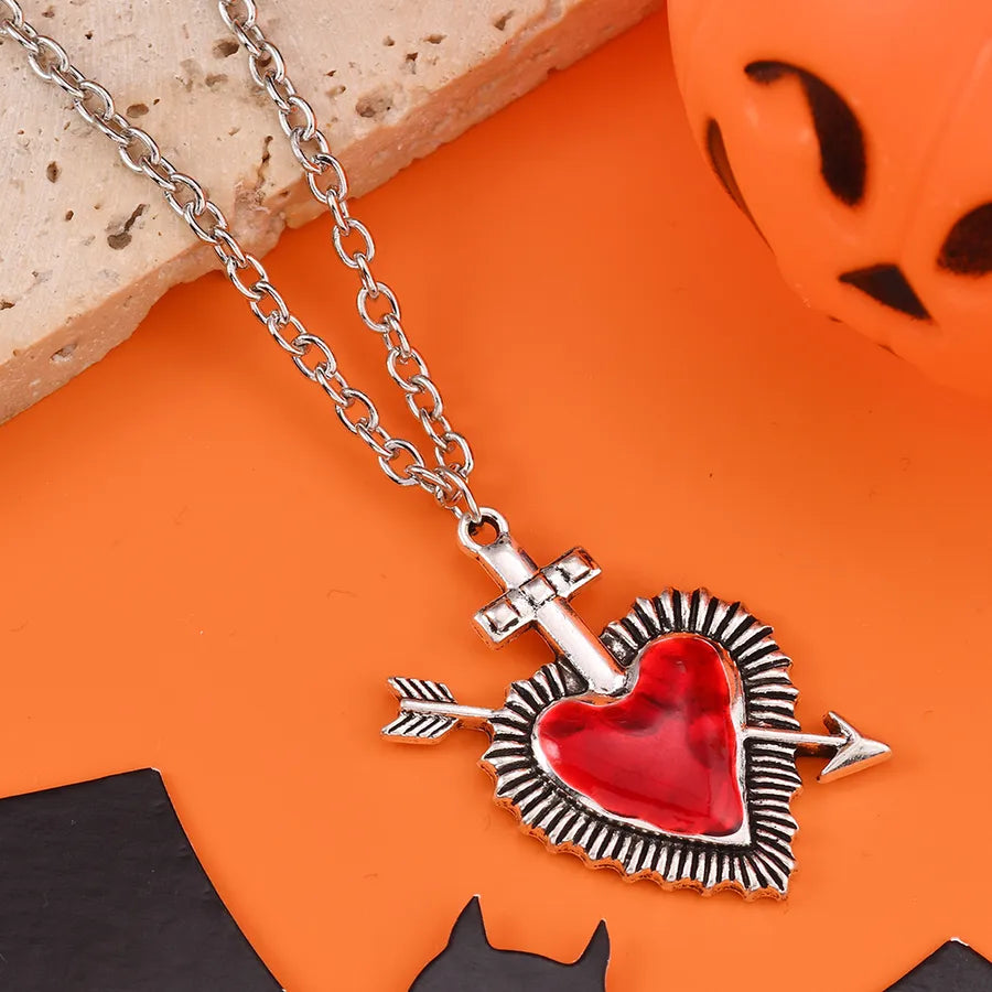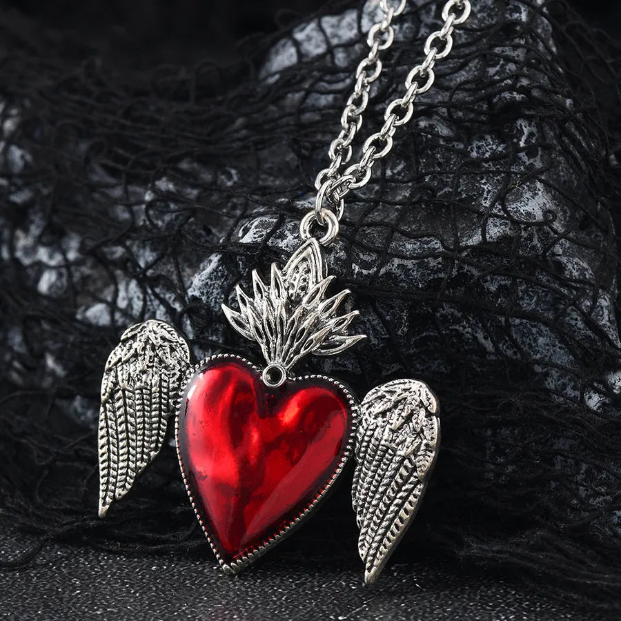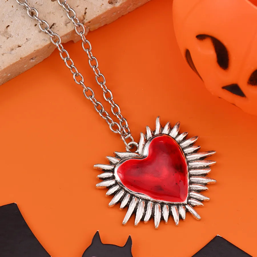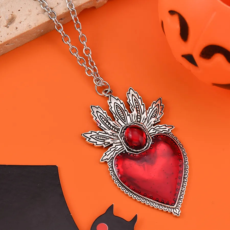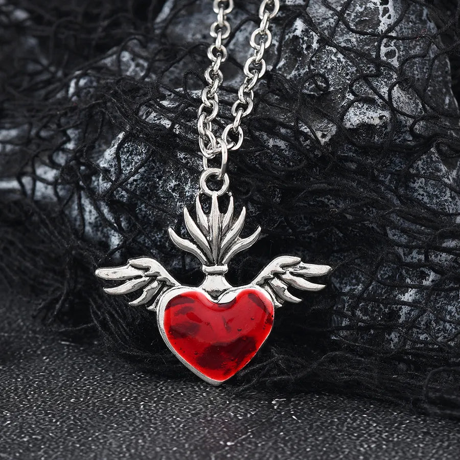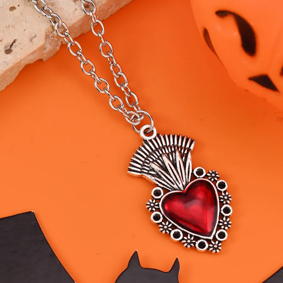Gothic Style Heart Wing Halloween Creative Alloy Supernatural Love Necklace Unisex Red Heart Shaped Pendant Club Party Jewelry Accessory