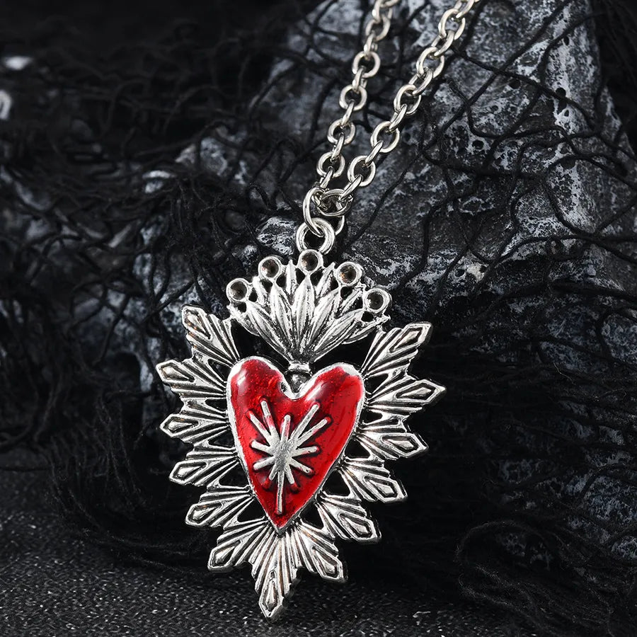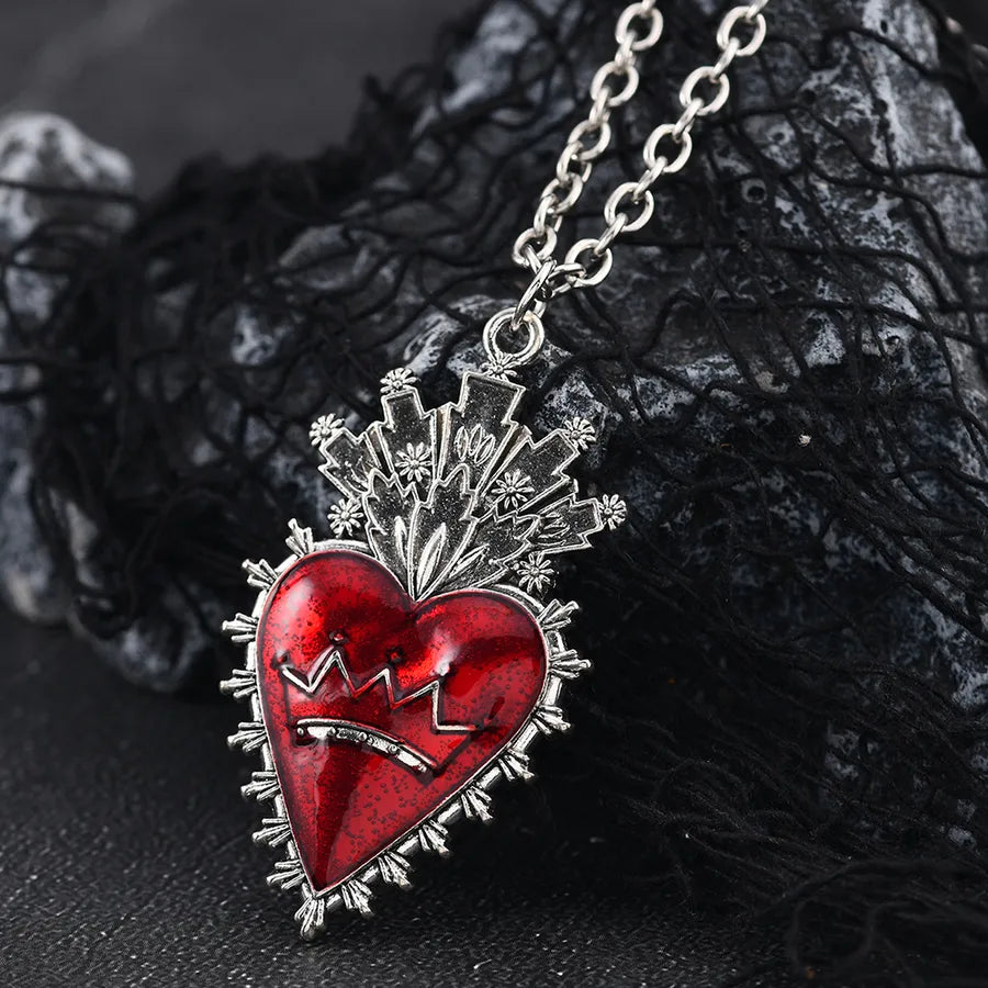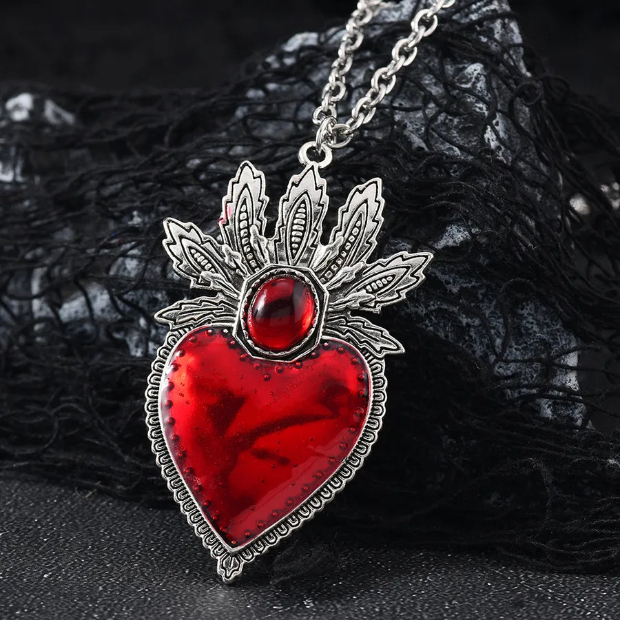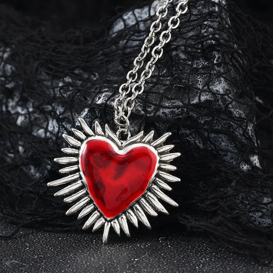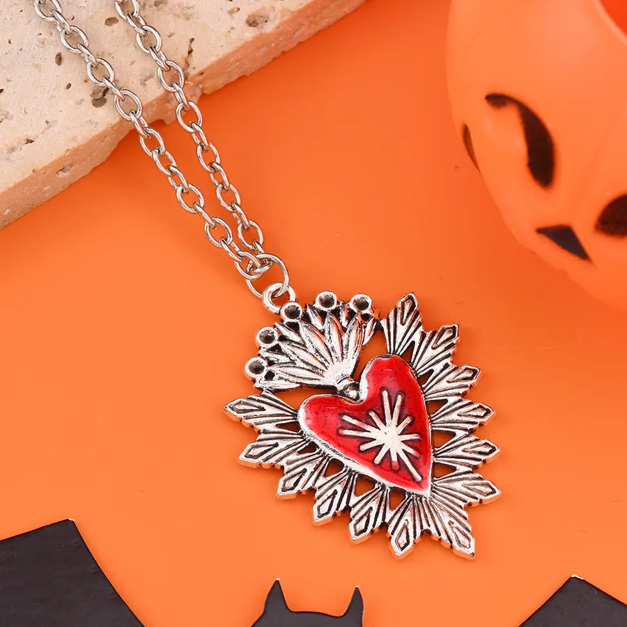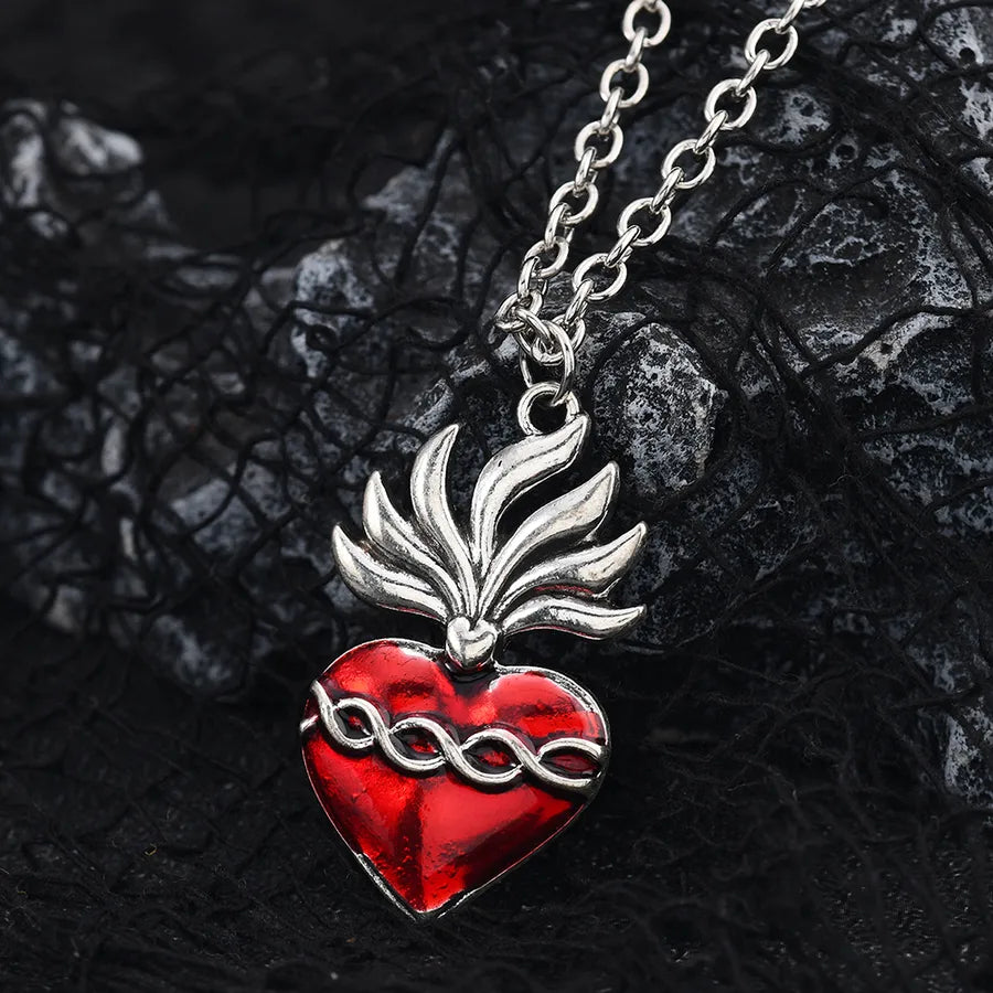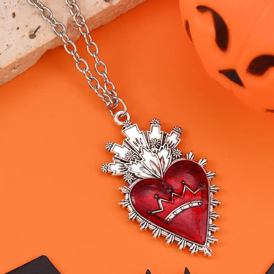 Gothic Style Heart Wing Halloween Creative Alloy Supernatural Love Necklace Unisex Red Heart Shaped Pendant Club Party Jewelry Accessory