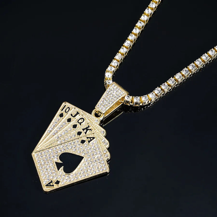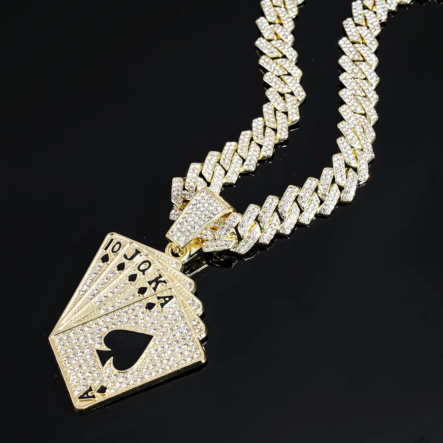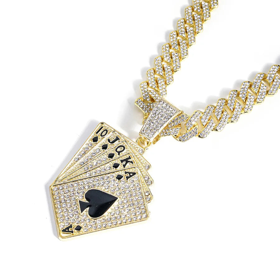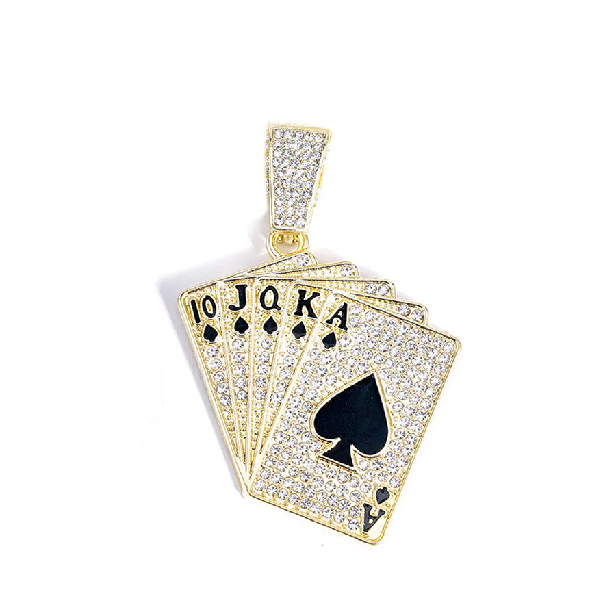 High-Quality Men's Poker-Card Pendant Necklace Fashionable Diamond-Inlaid Trendy Alloy Jewelry Hip-Hop Style Other Print Design - Gold Single Pendant