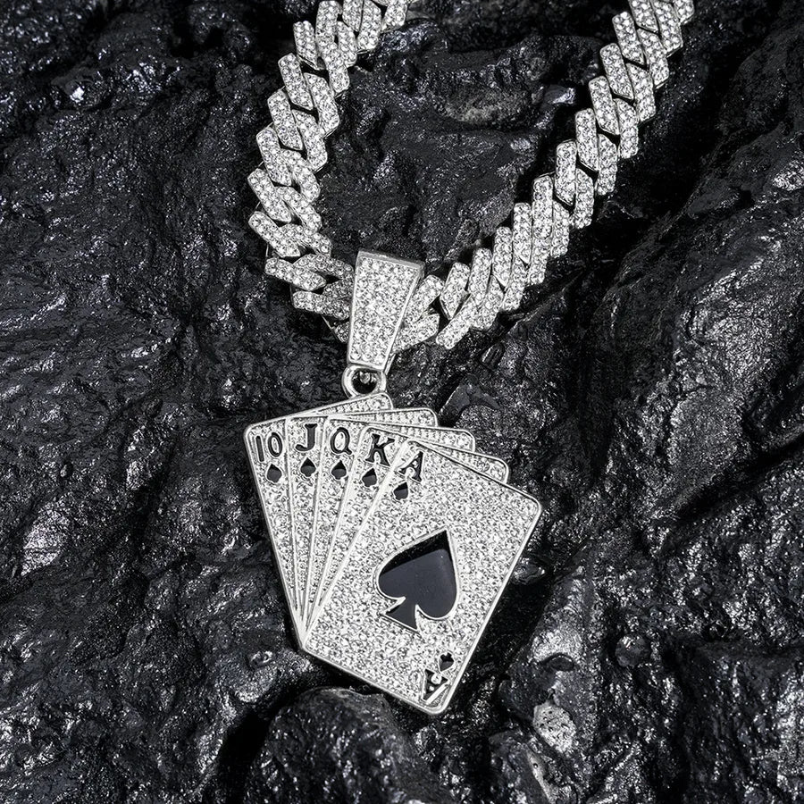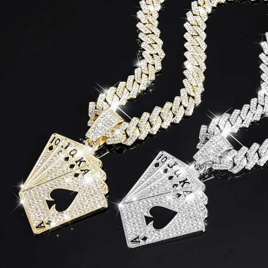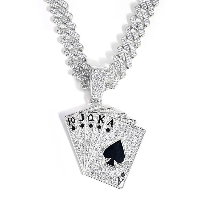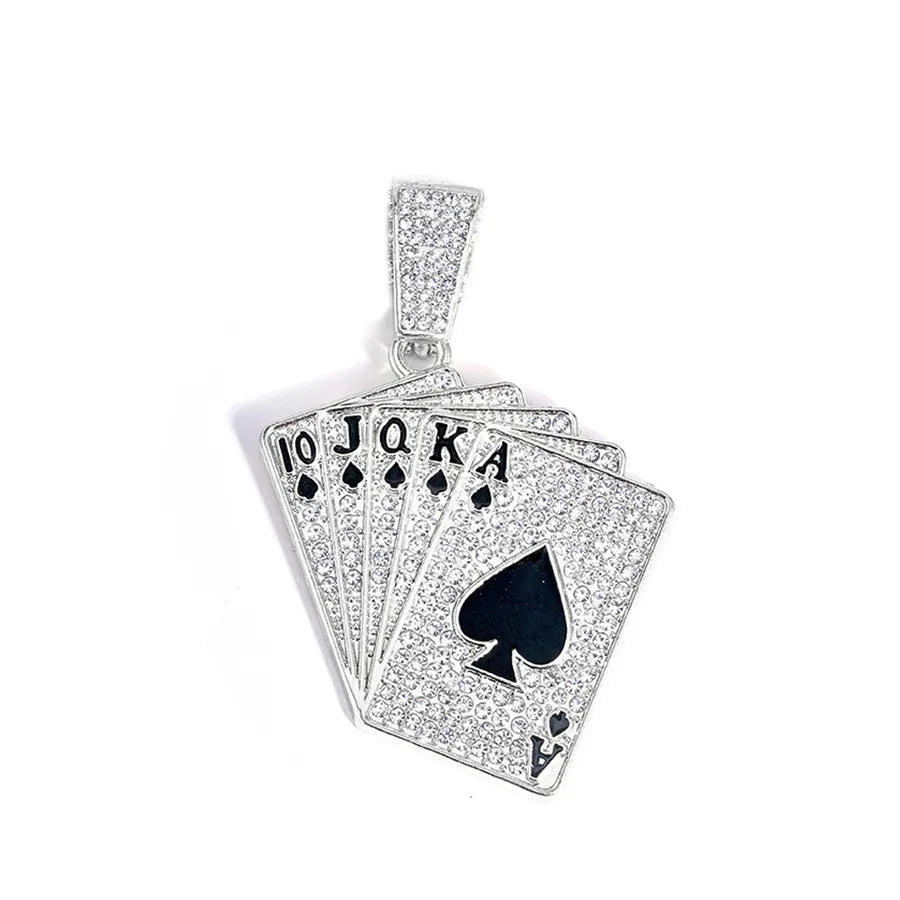 High-Quality Men's Poker-Card Pendant Necklace Fashionable Diamond-Inlaid Trendy Alloy Jewelry Hip-Hop Style Other Print Design - Gold Single Pendant