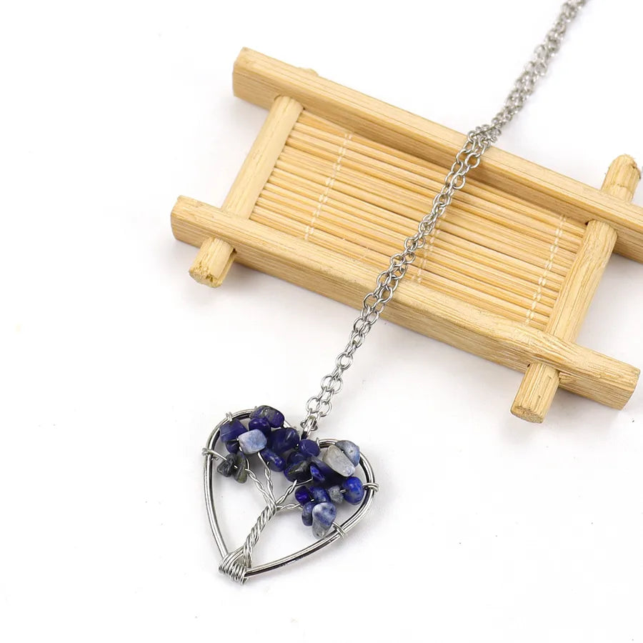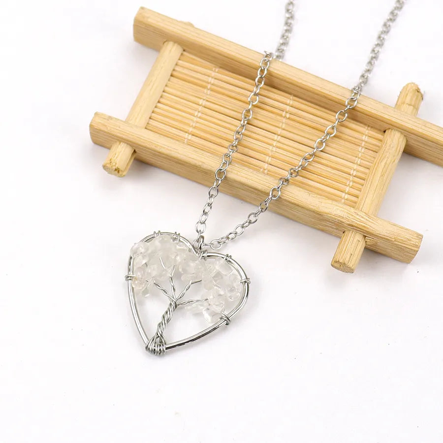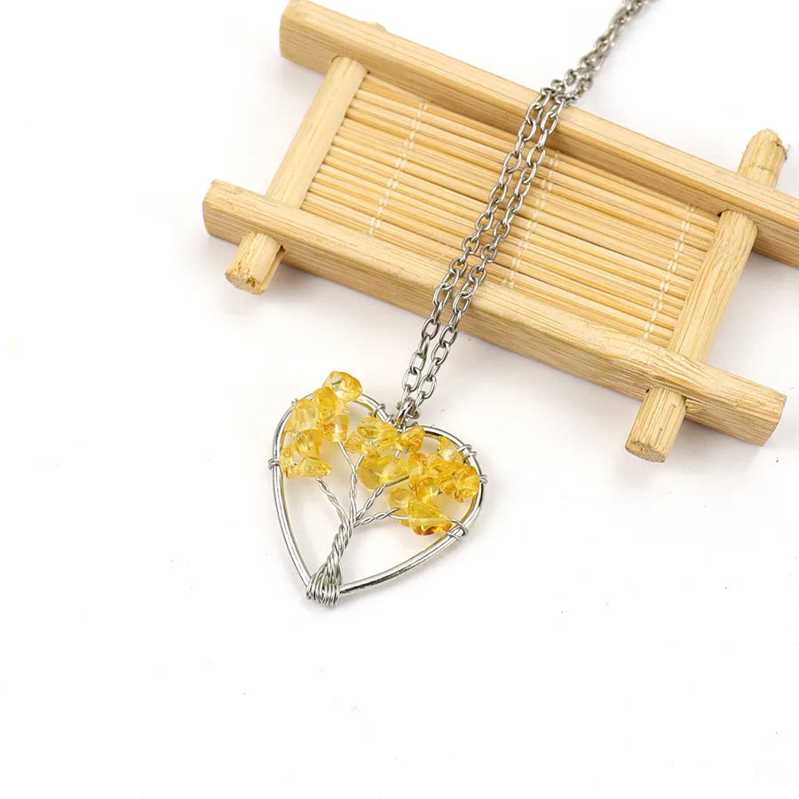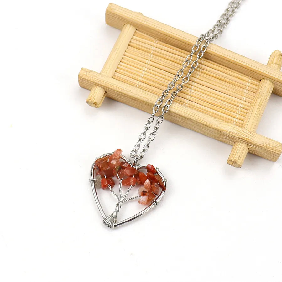 IG Style Pastoral Simple Style Tree Heart Shape Alloy natural stone Agate Wholesale Pendant Necklace - Colorful Chain Terms