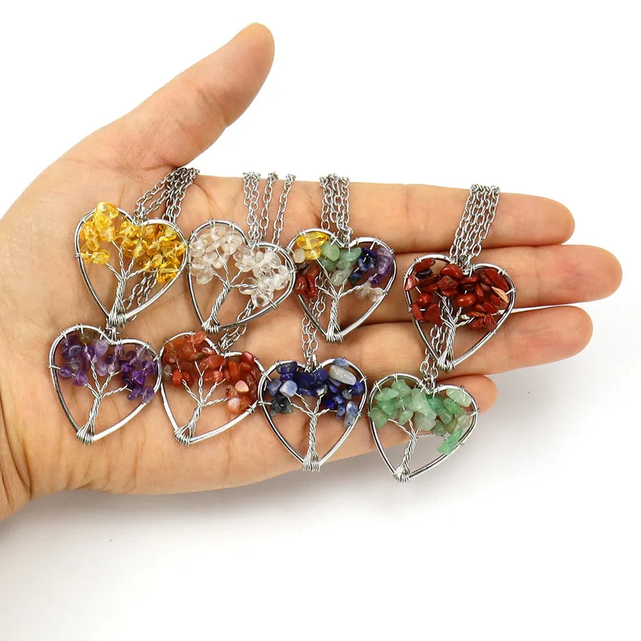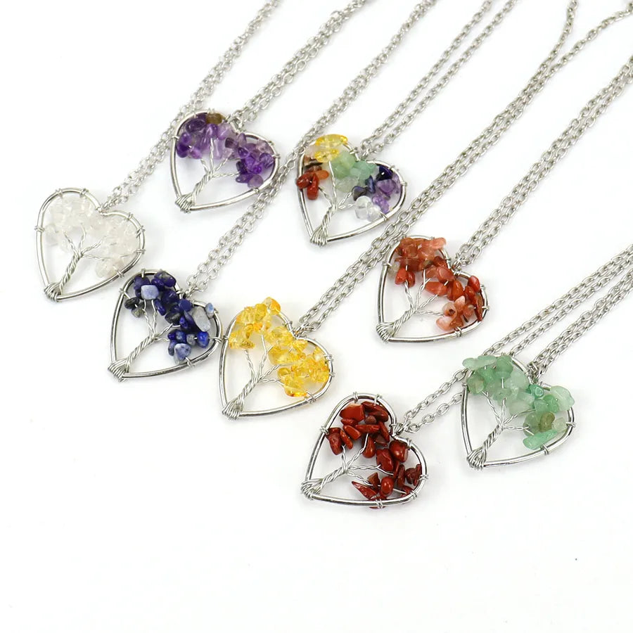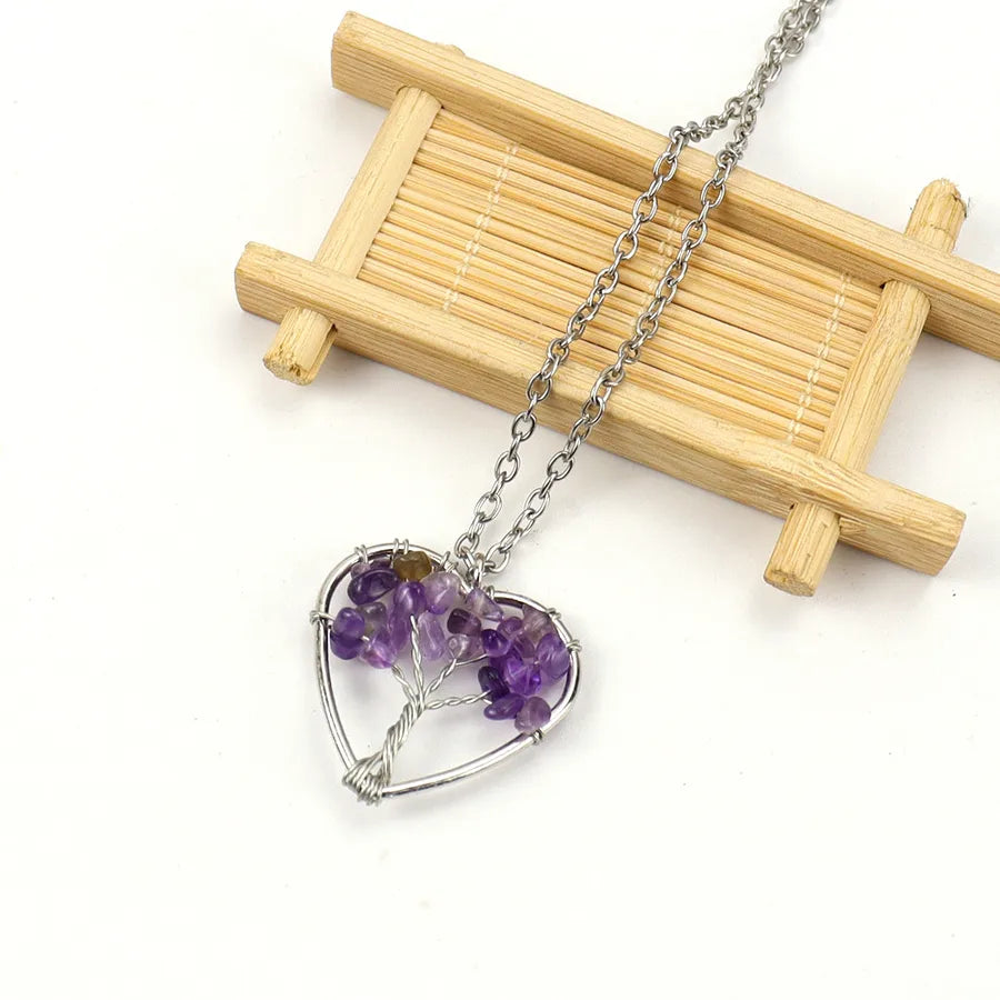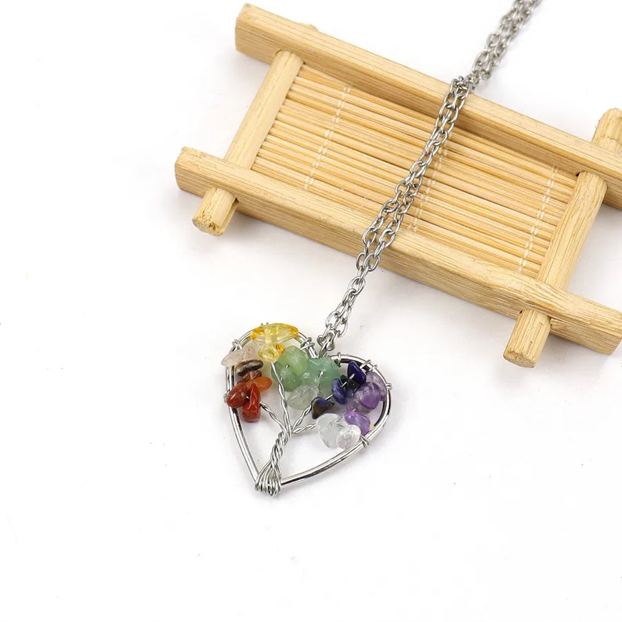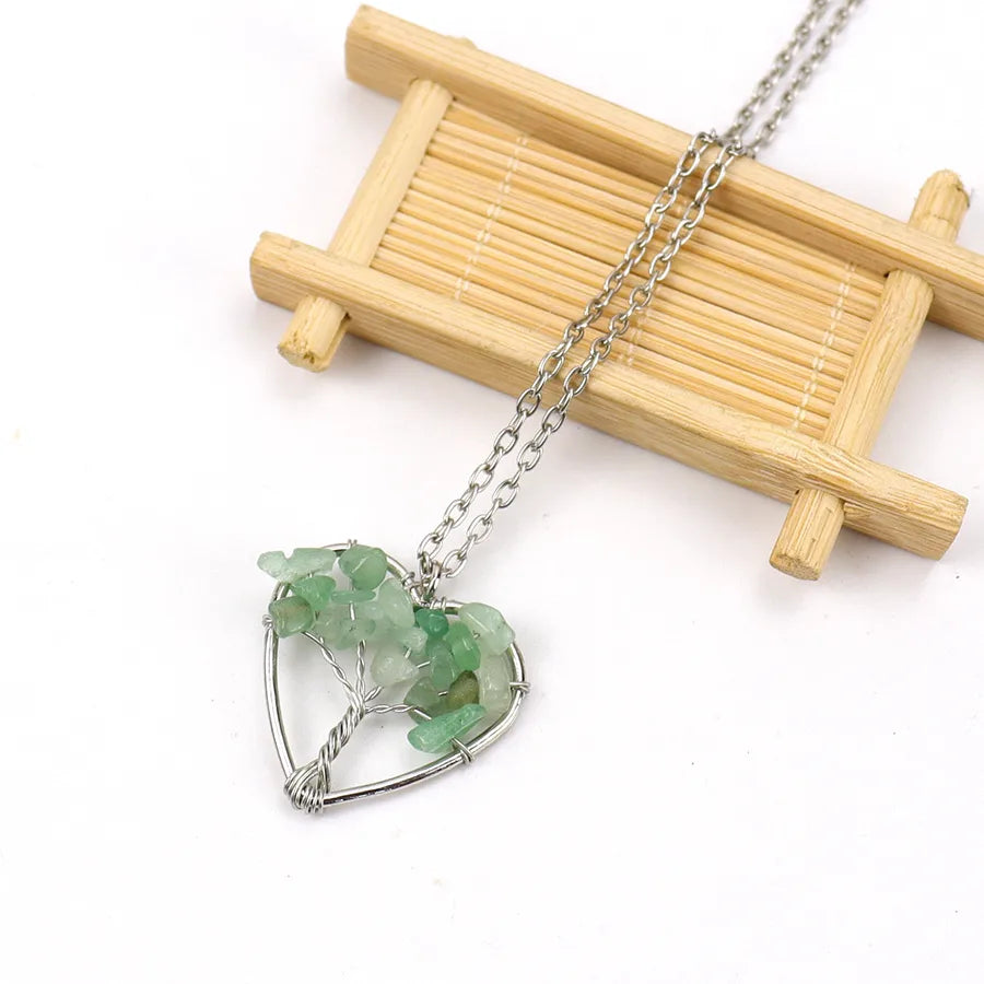 IG Style Pastoral Simple Style Tree Heart Shape Alloy natural stone Agate Wholesale Pendant Necklace - Colorful Chain Terms