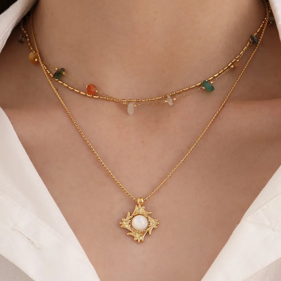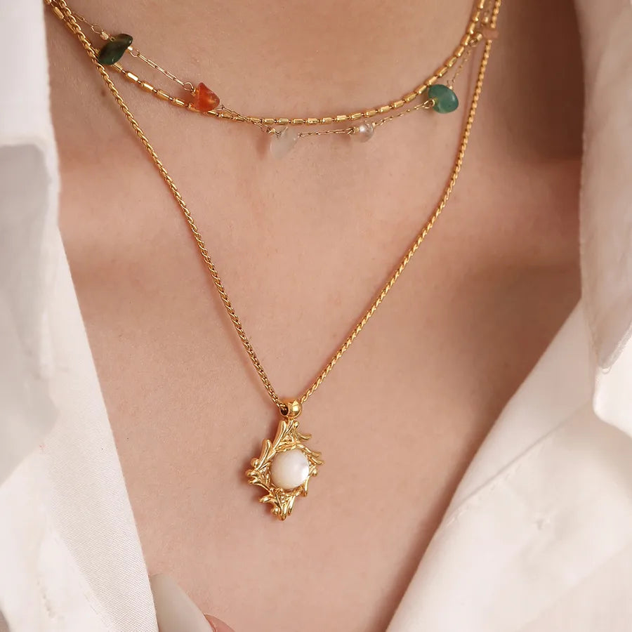 Luxurious Copper Plated 18K Gold Dipped Necklace For Women Elegant Personality Unique Stacking Shell Pendant Jewelry Summer New - 2203ZK16372XL