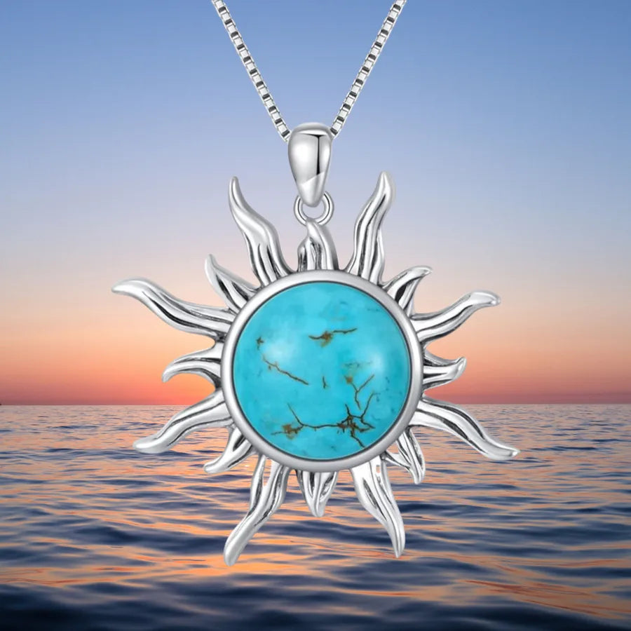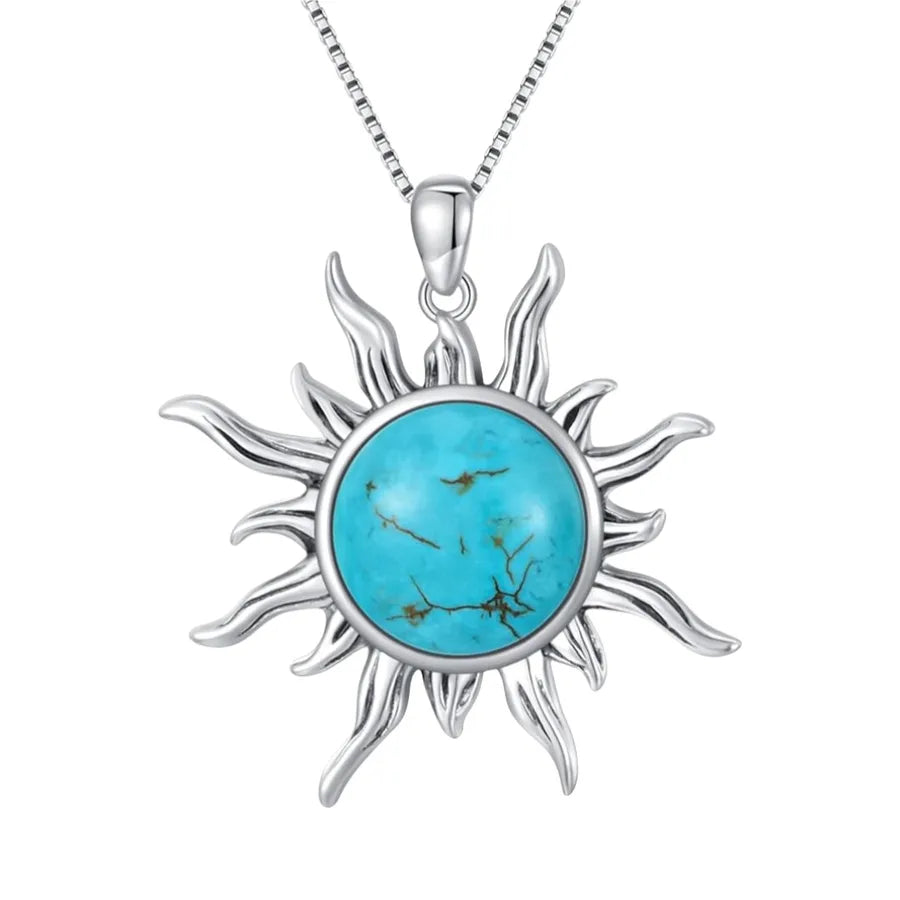 Morning Card Sunflower Turquoise Necklace Personalized Retro Turquoise Pendant Necklace Alloy Green Turquoise Jewelry For Women - X126 Turquoise Sun Flower Necklace
