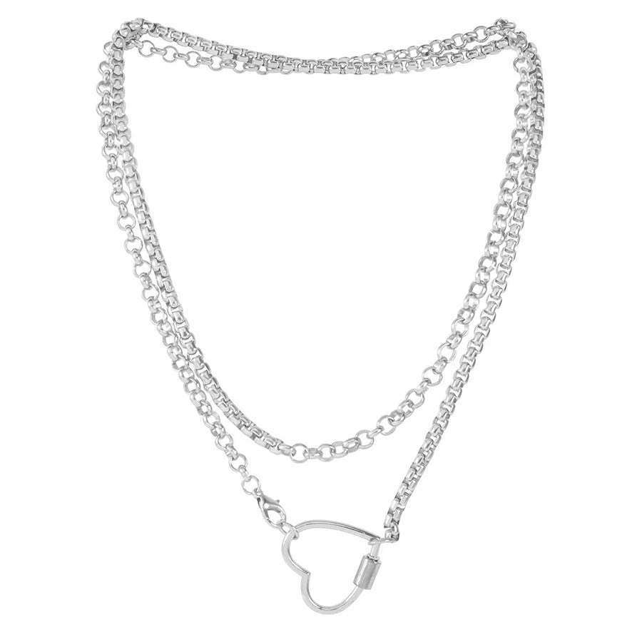 Multi-Layered Metal Heart-Shaped Necklace Hip Hop Style Layered Jewelry Elegant Luxury Romantic British New Style For Women - Gold