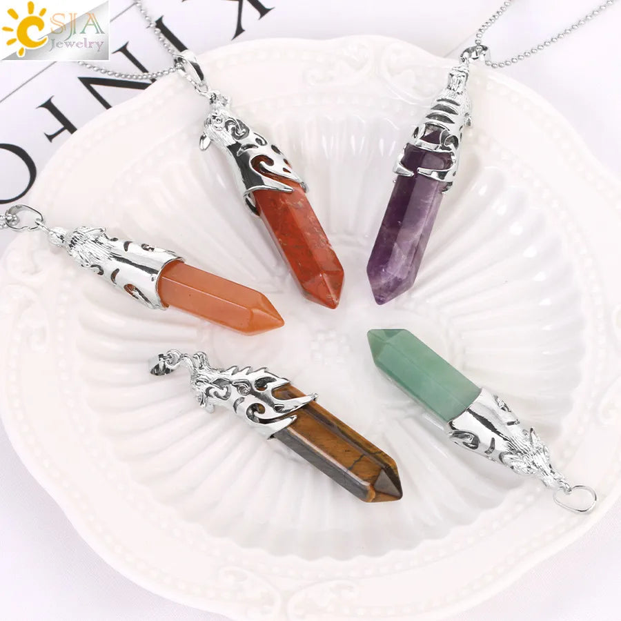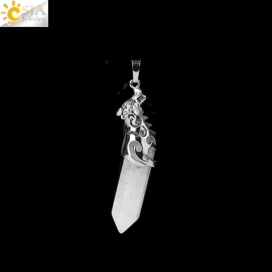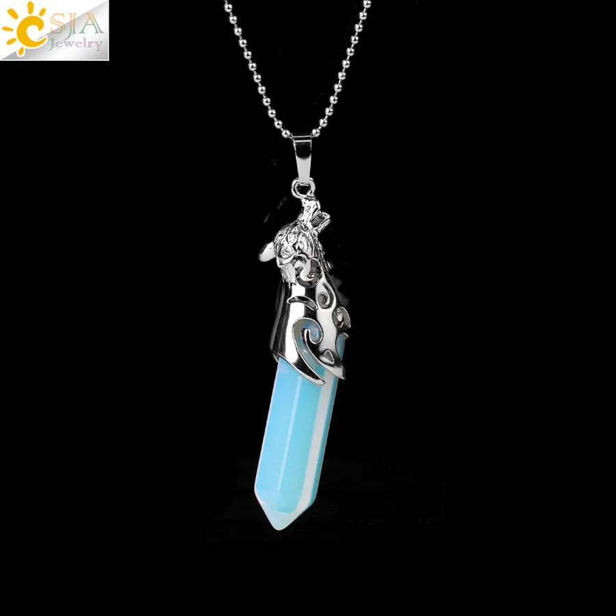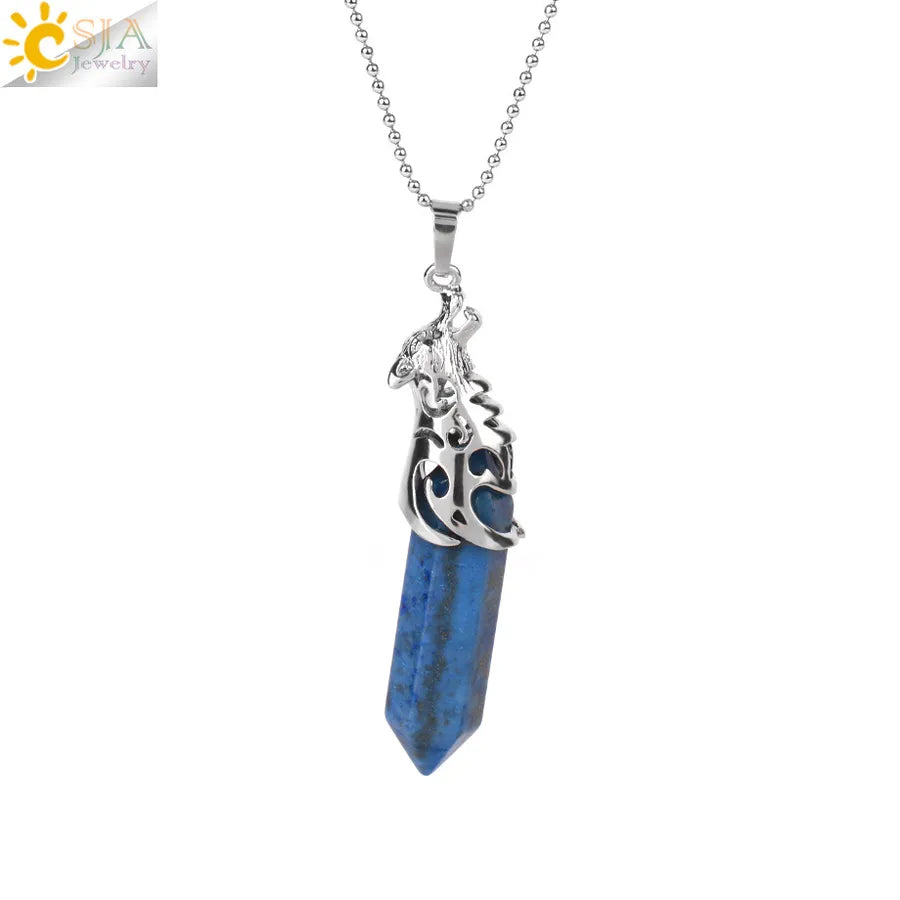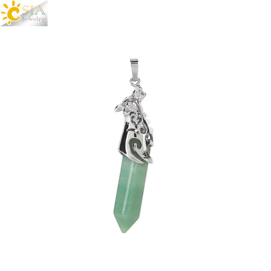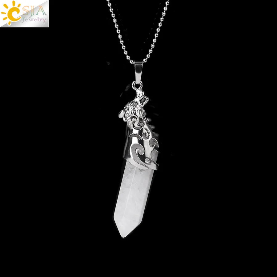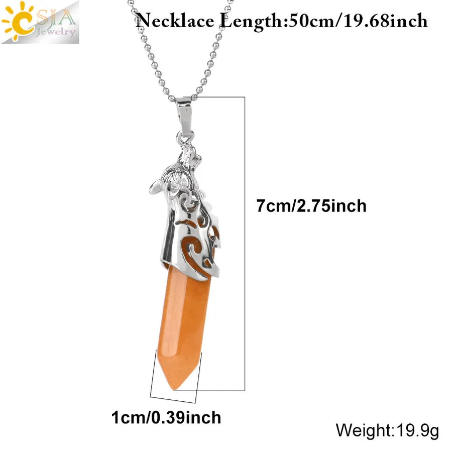 Natural Crystal Wolf Head Pendant Necklace Hexagonal Column Tiger Eye Obsidian Jewelry Unisex Simple Geometric Design