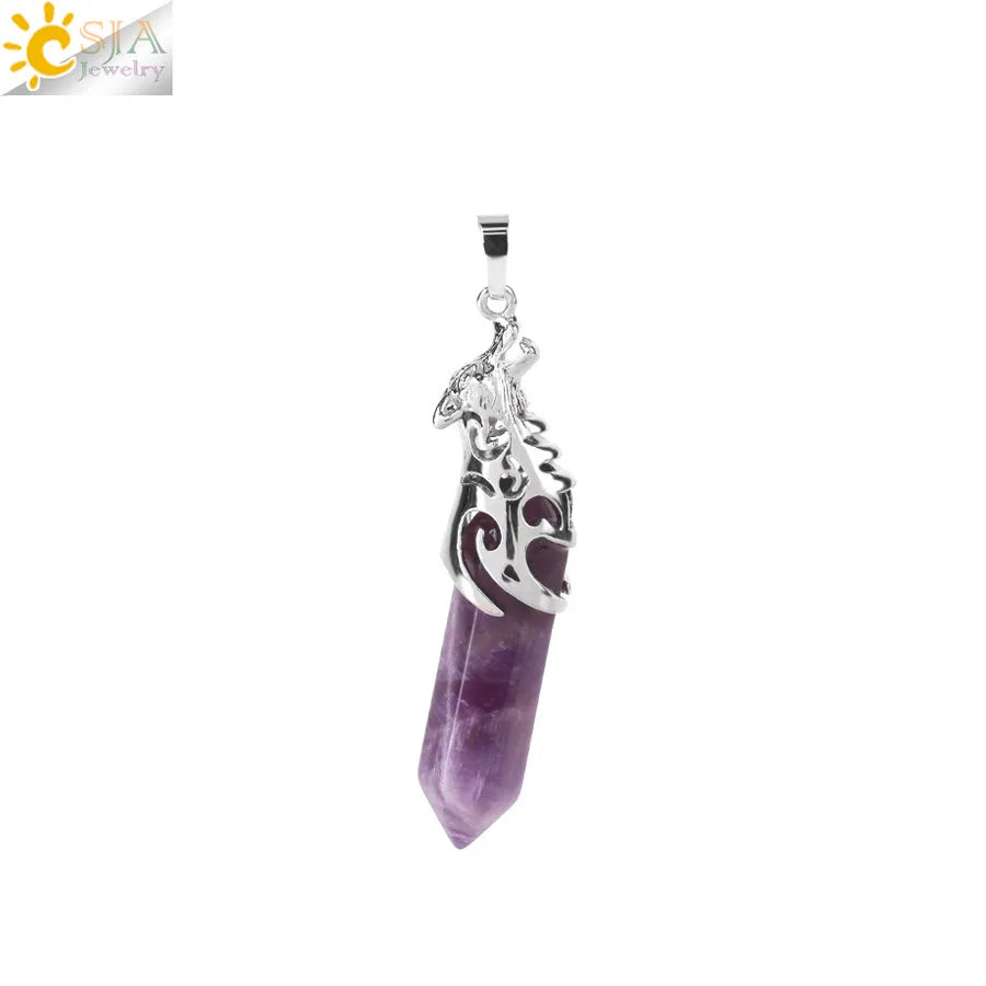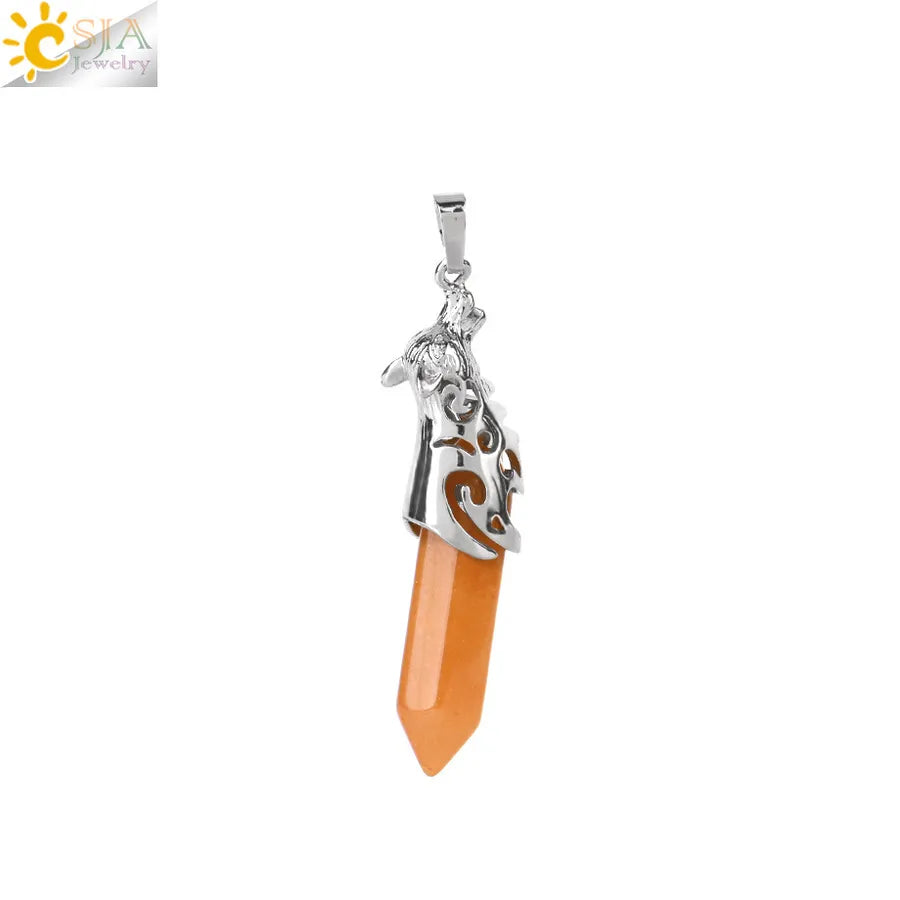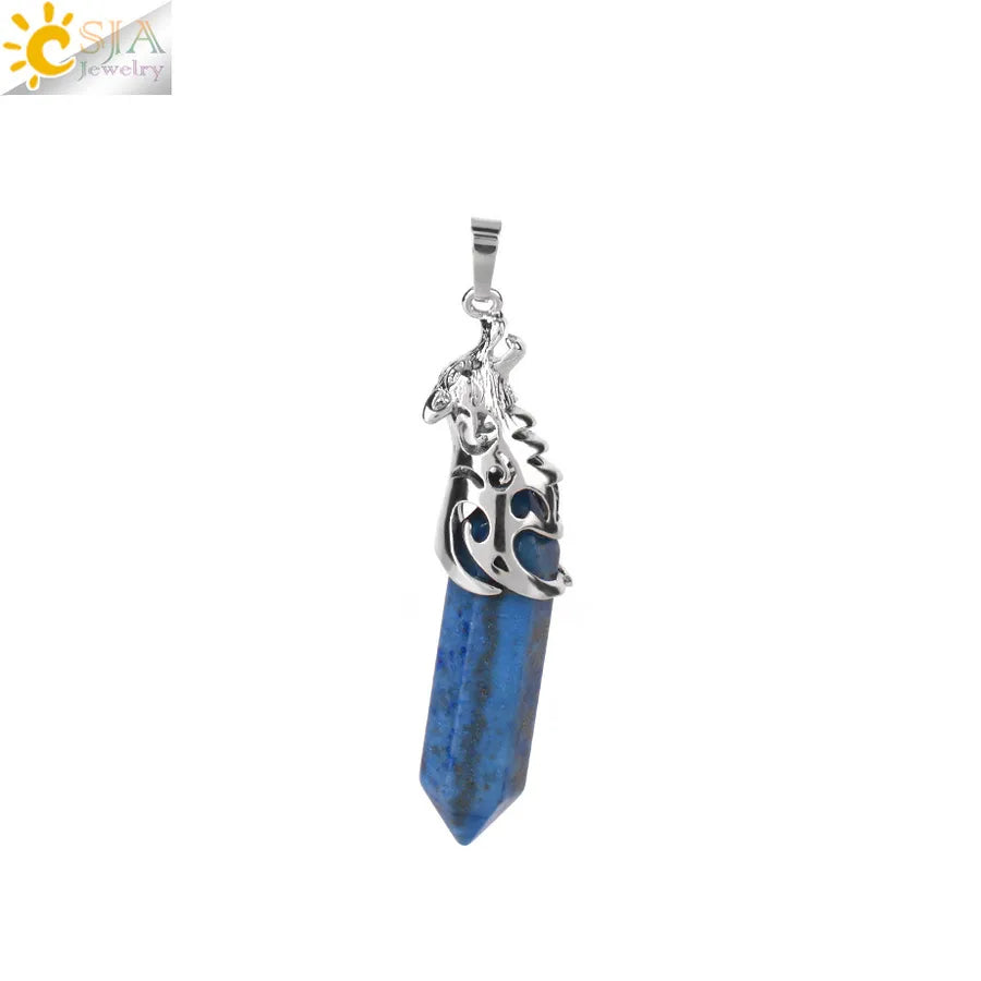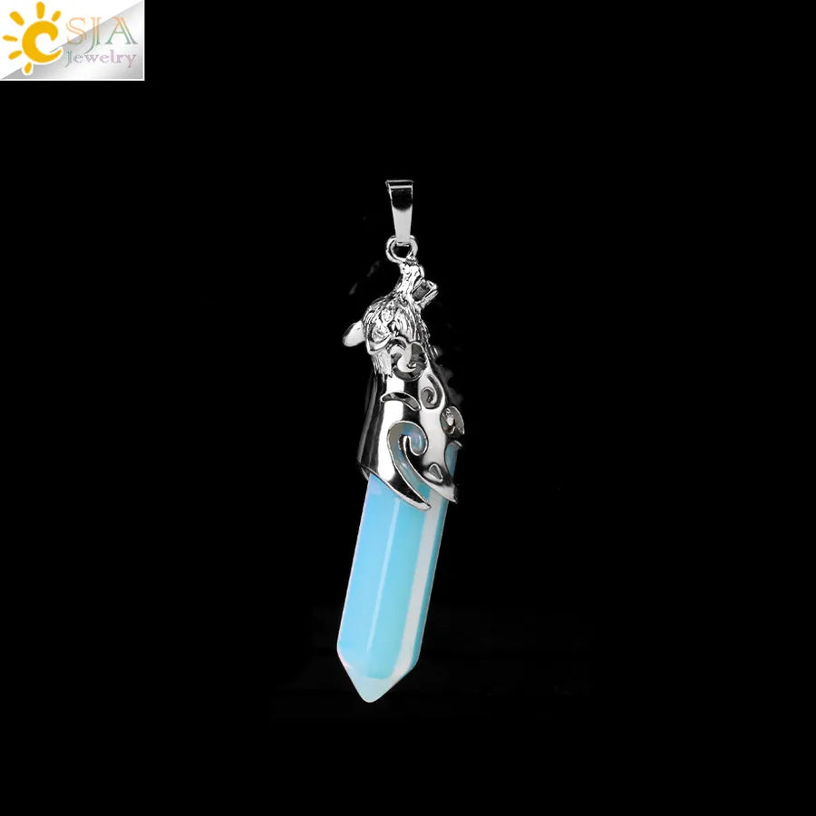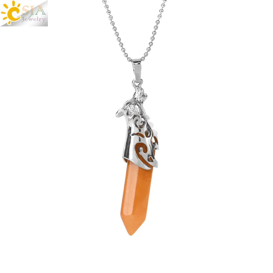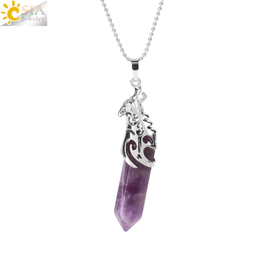 Natural Crystal Wolf Head Pendant Necklace Hexagonal Column Tiger Eye Obsidian Jewelry Unisex Simple Geometric Design