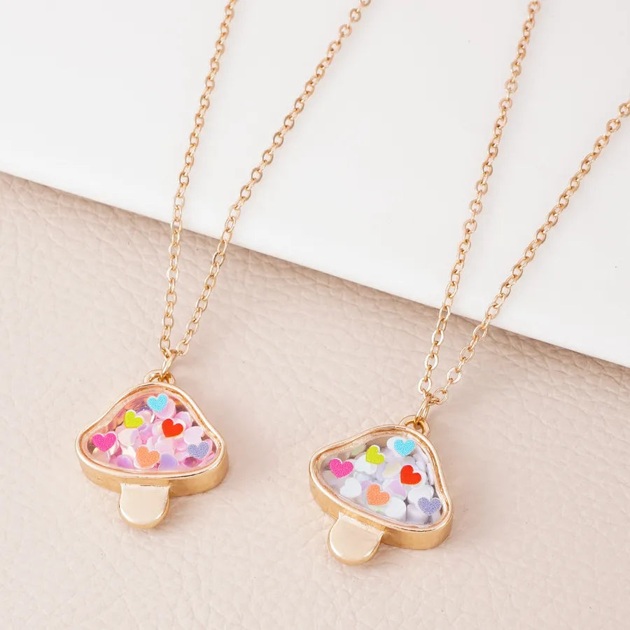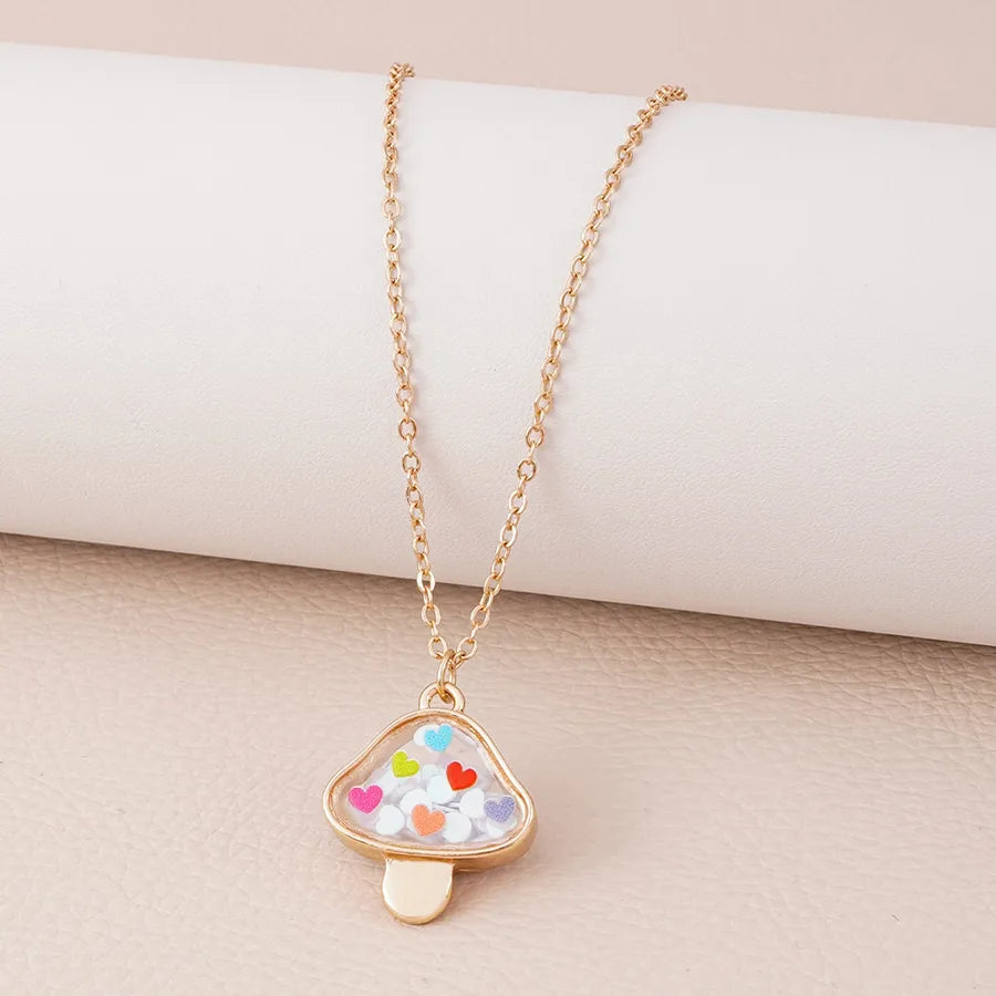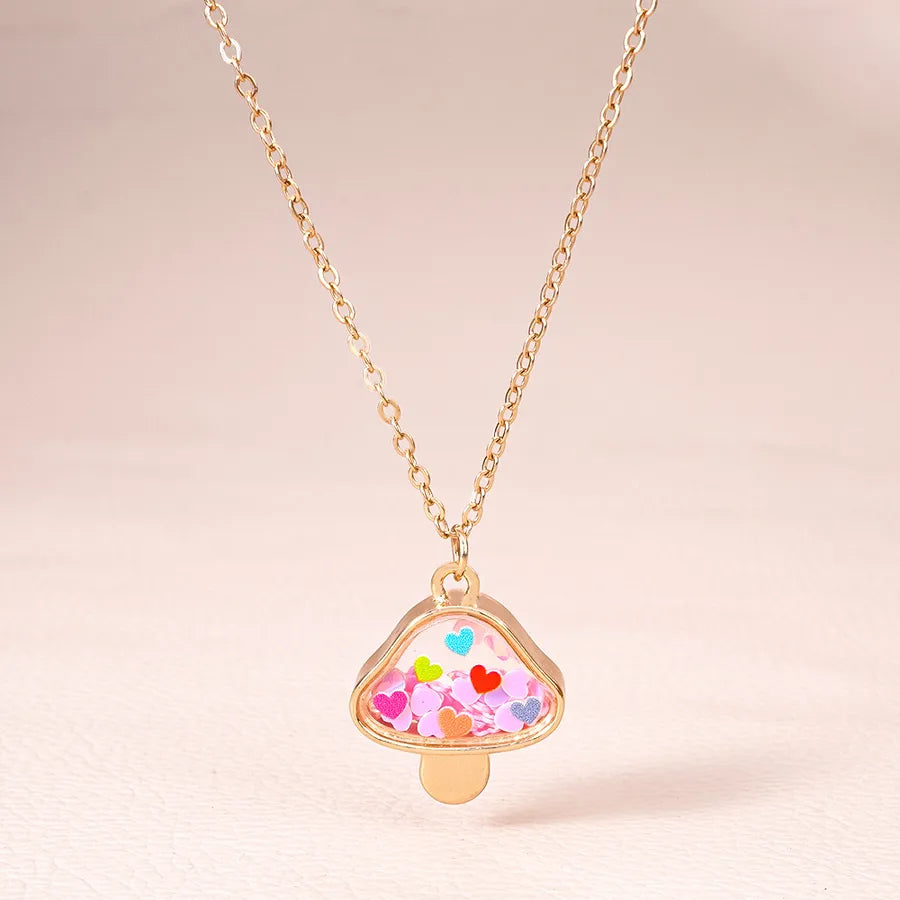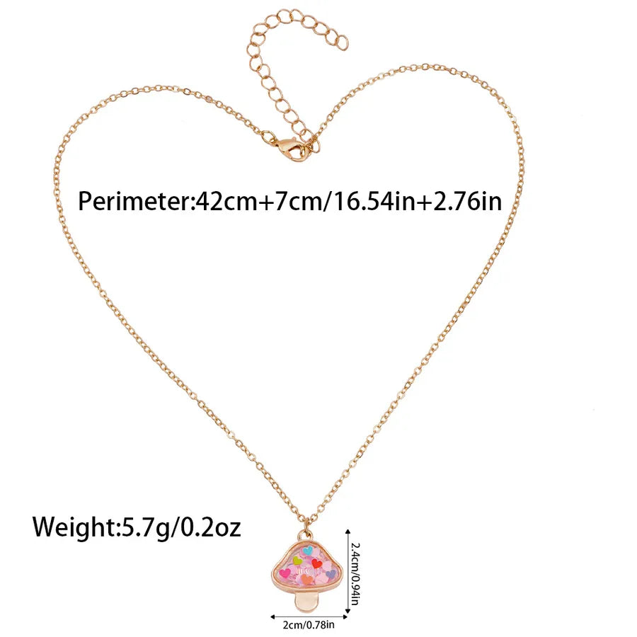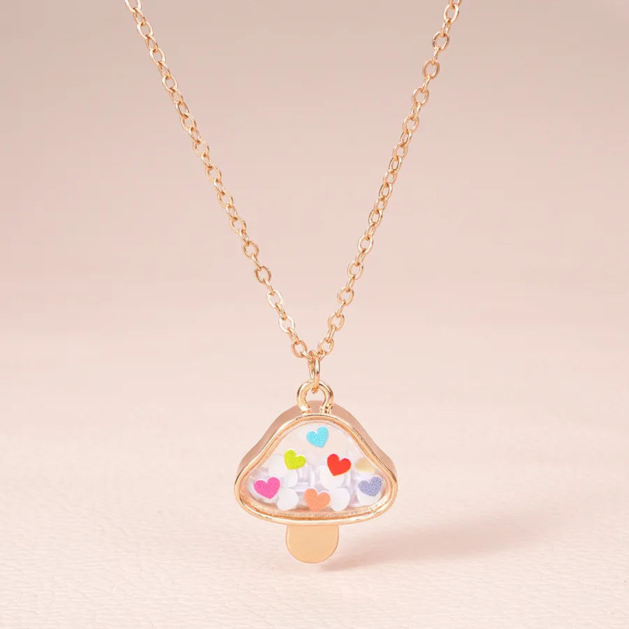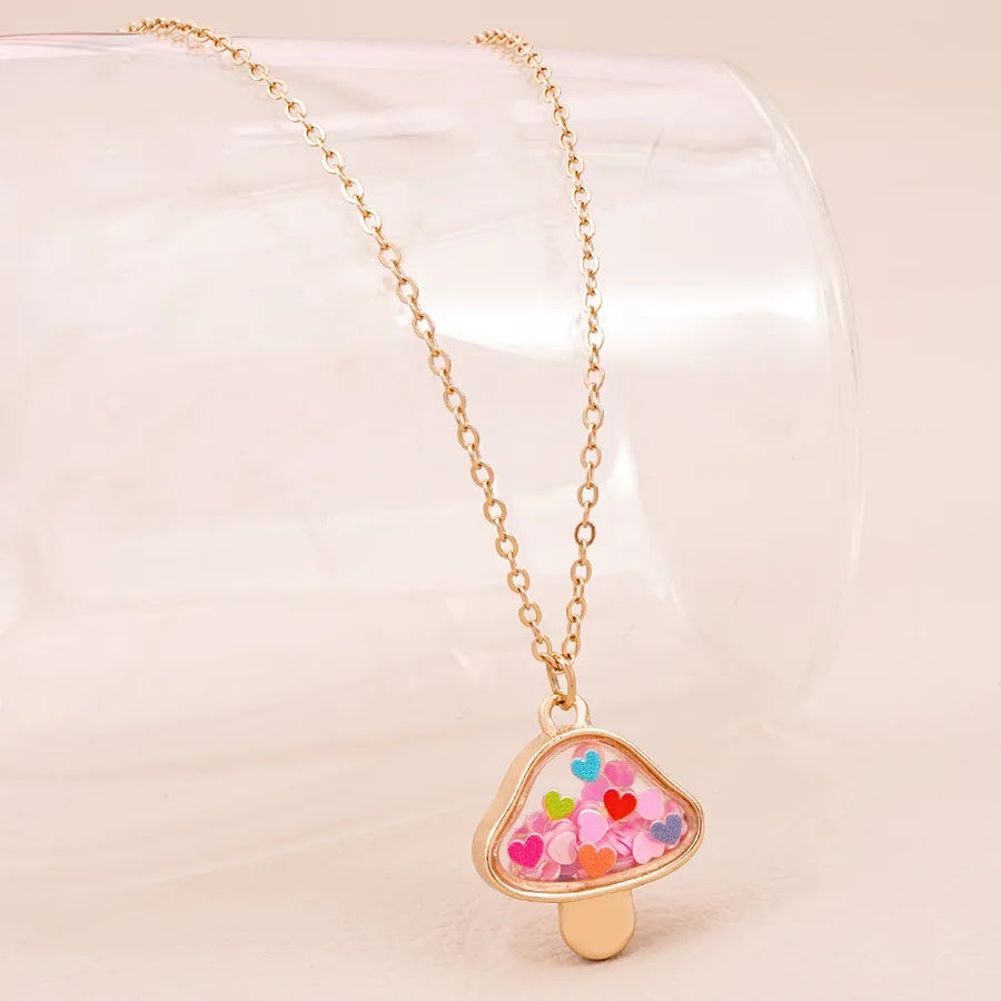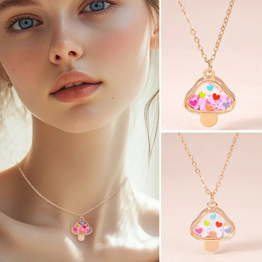New Cute Mushroom Alloy Electroplated Transparent Pendant Necklace Women's Lockbone Chain Jewelry Heart Shaped Design Sparkling Sequins - Peach