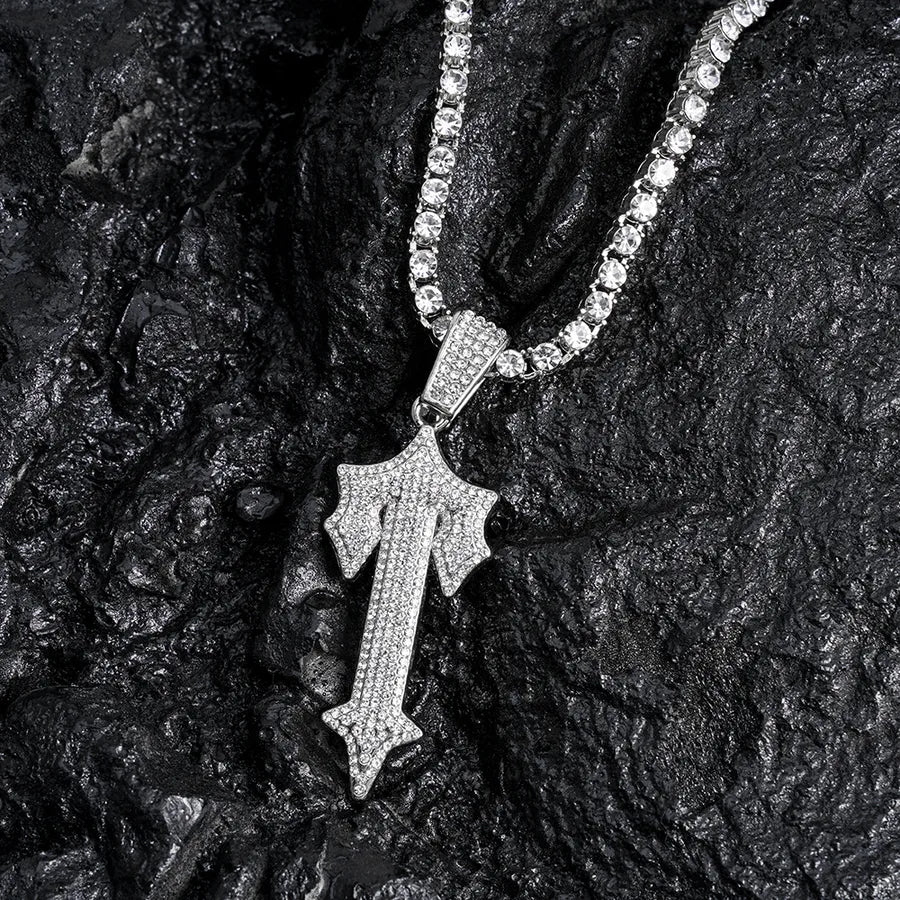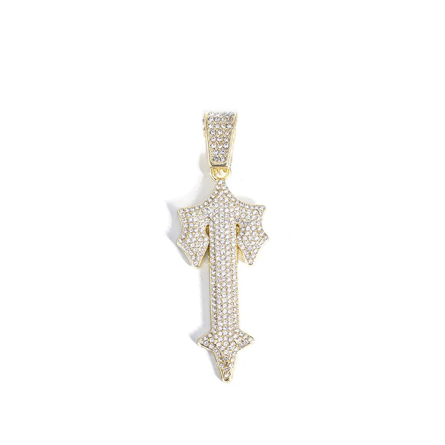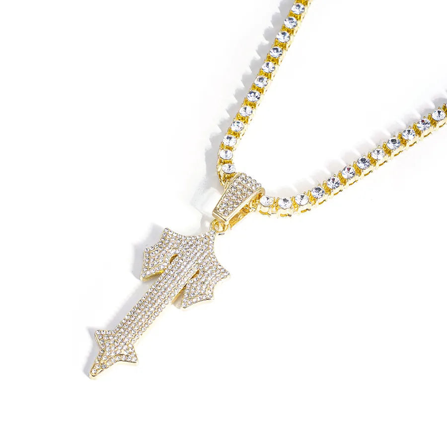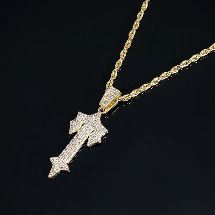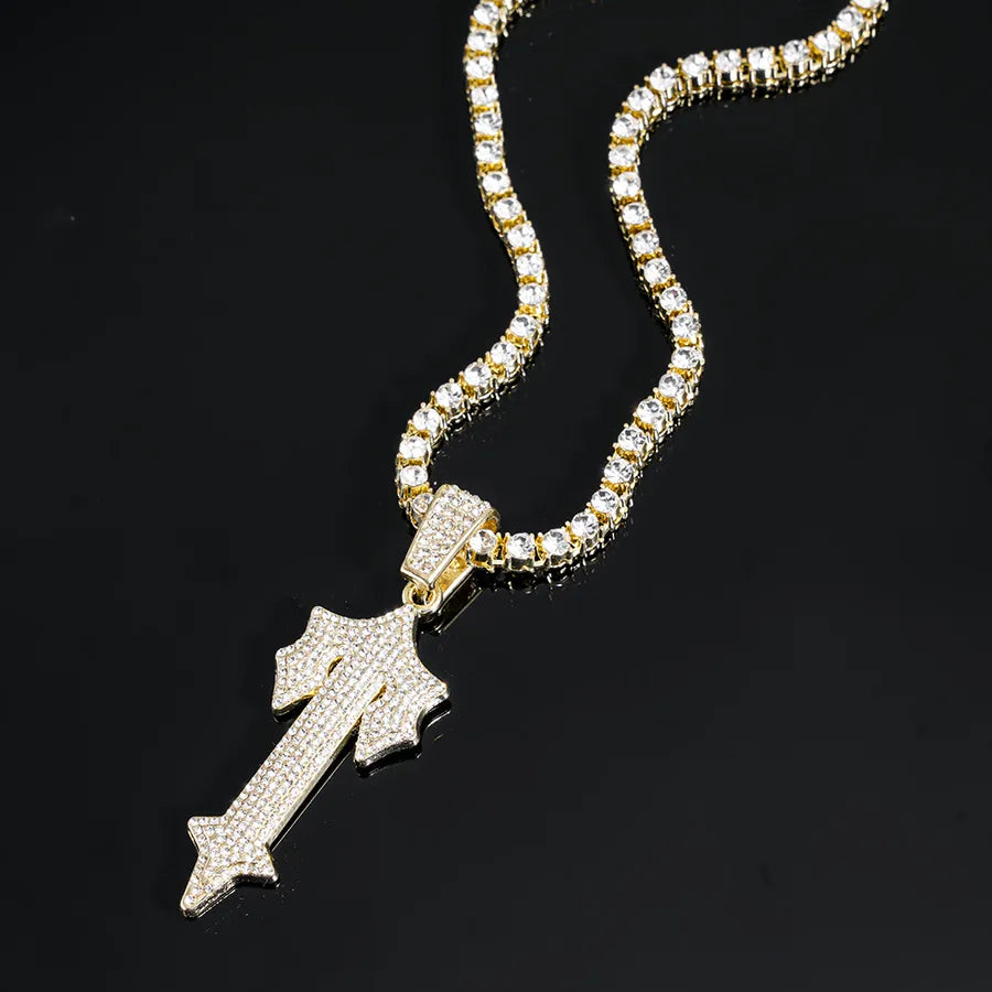 New Style Men's Cross Pendant Hip Hop Tennis Chain Jewelry Alloy Material Oval Shape Fashion Accessory - Gold Single Pendant