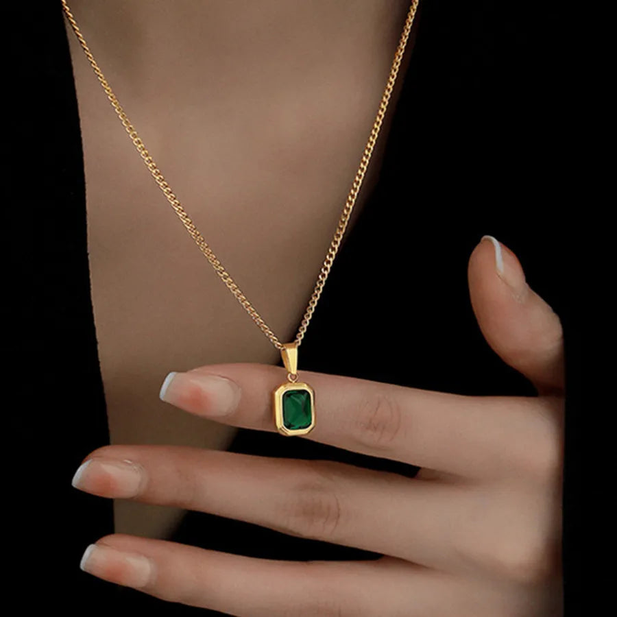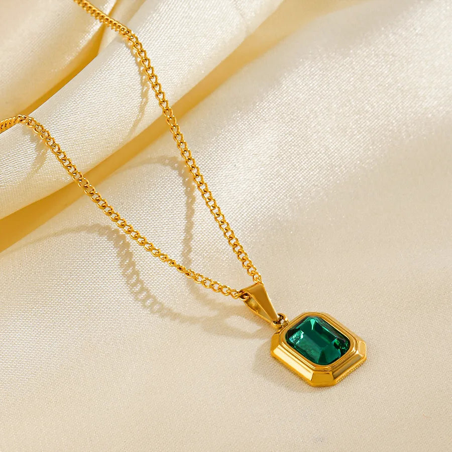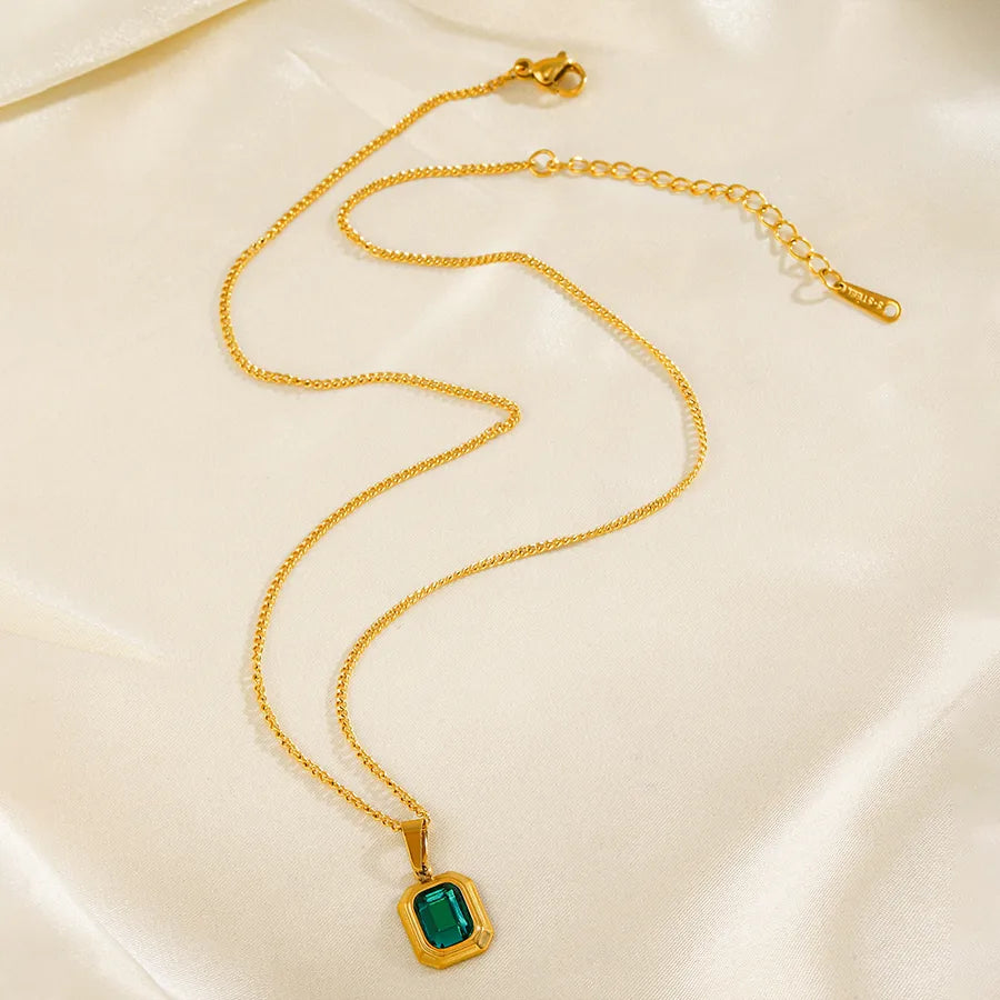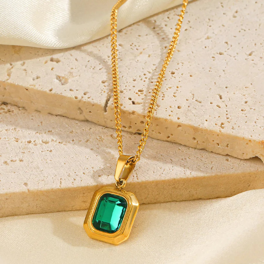 PVD Coated 18K Gold Plated Square 304 Stainless Steel Classic Style Waterproof Non Tarnish 304 Stainless Steel Pendant Necklace - Emerald Necklace
