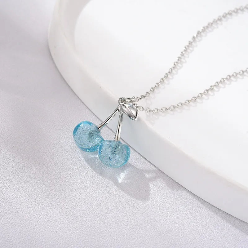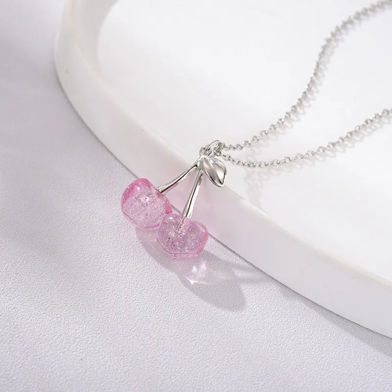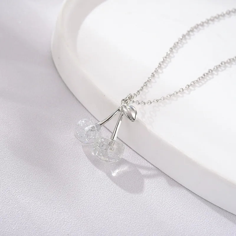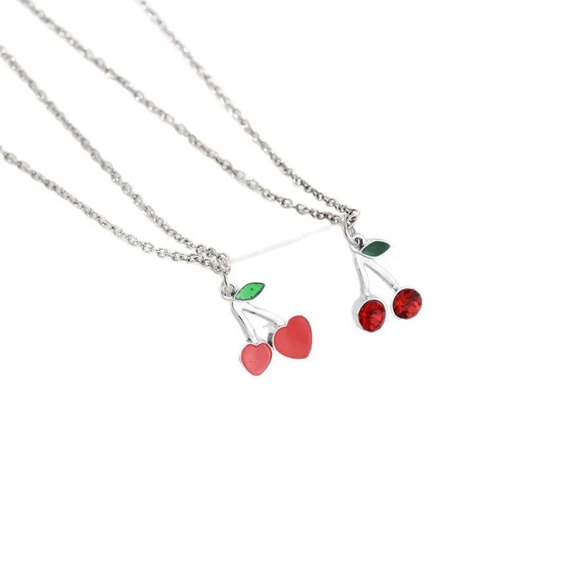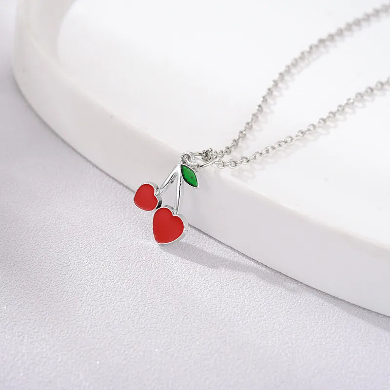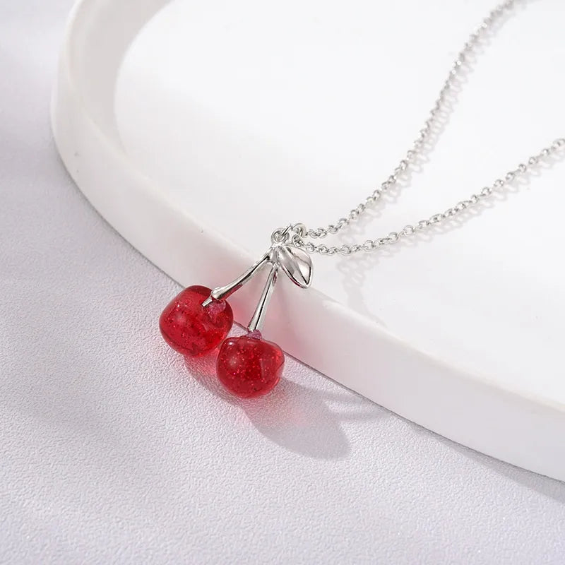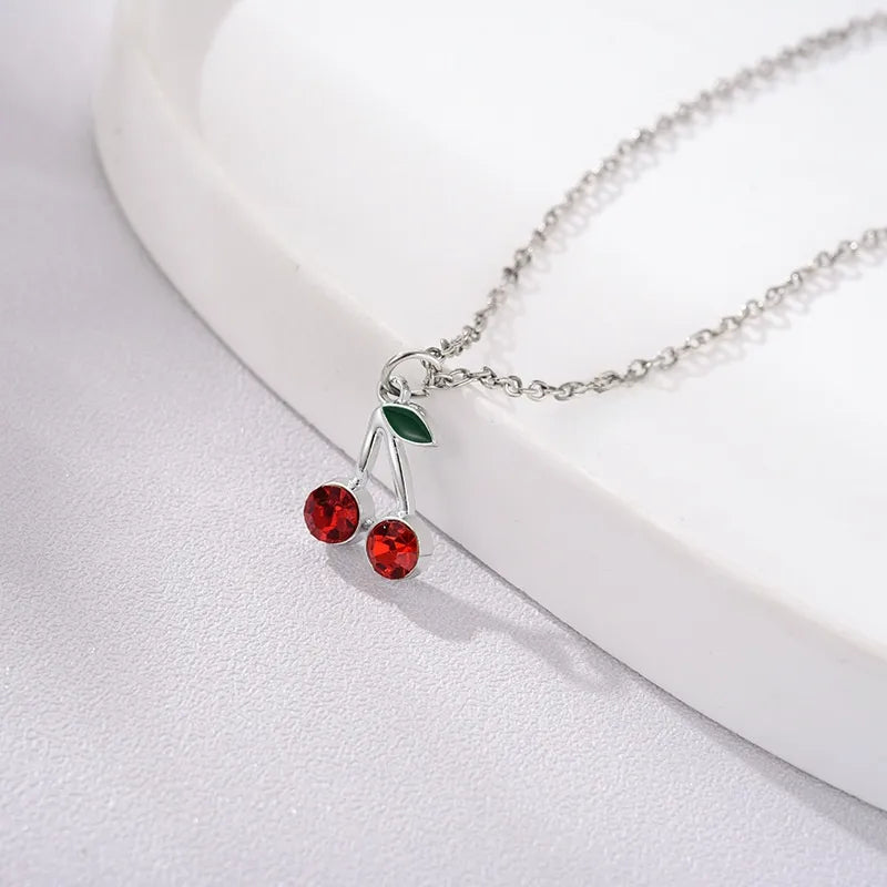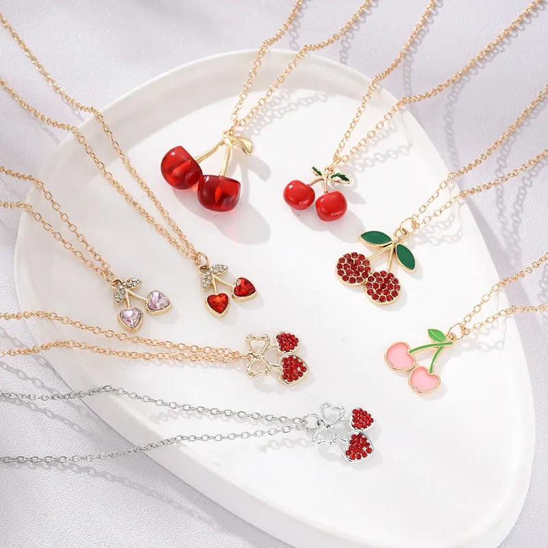 Red Cherry Pendant Necklace Women's Clavicle Chain Lightweight Luxury Simple Versatile Neck Jewelry Alloy Fruit Pattern - Red