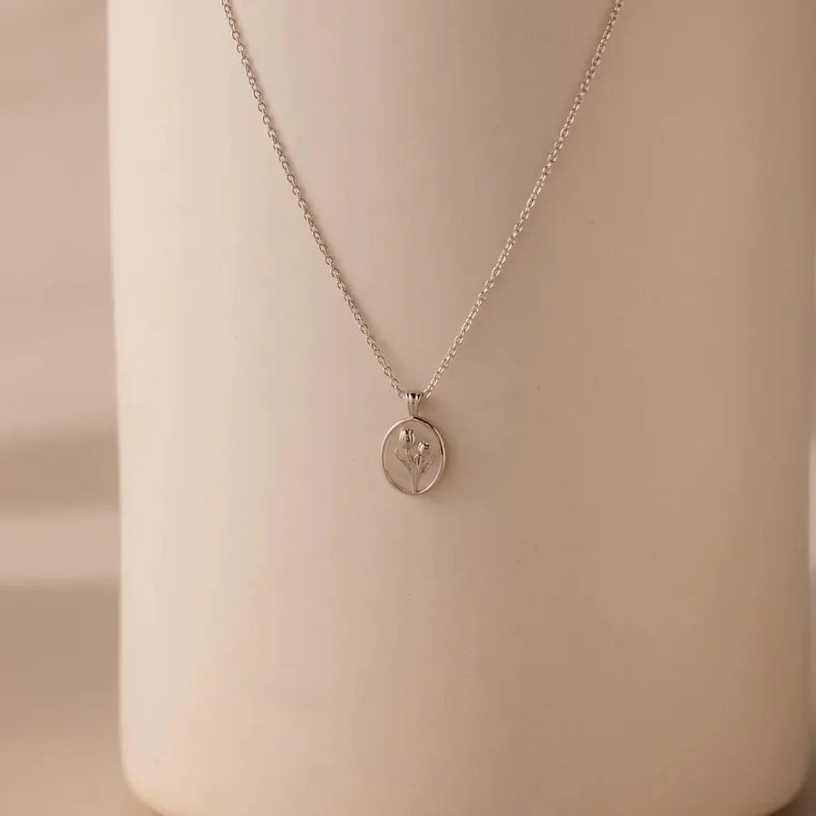Retro Tulip Necklace Floral Oval Shell Pendant Clavicle Chain Jewelry Sweet Style Alloy Bohemian Print