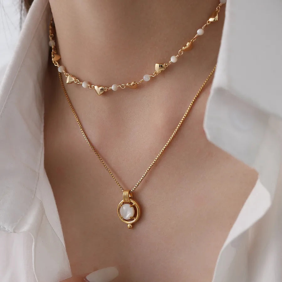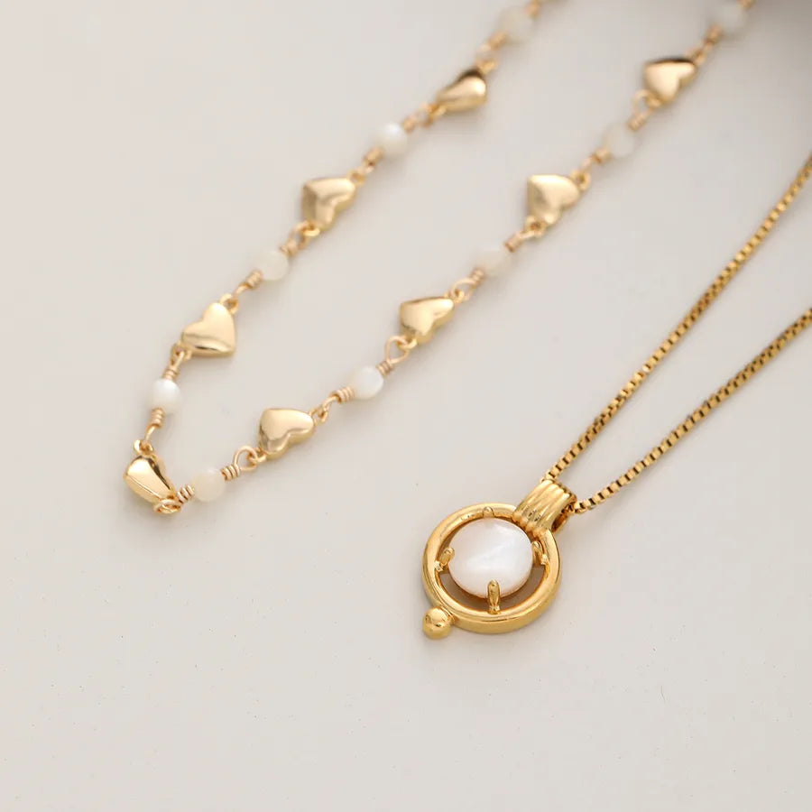 Simple Luxury Copper Plated 18K Gold Shell Bead Necklace Women's Fashion Classic High-End Commuter Style Versatile Jewelry - 2303IP20425XL