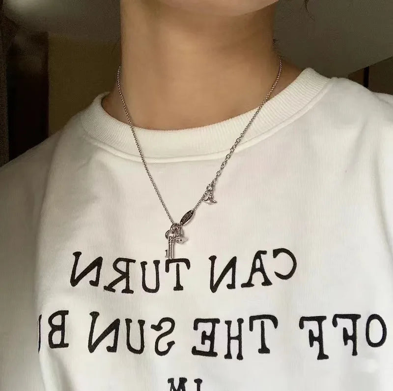 simple style planet key alloy women's pendant necklace