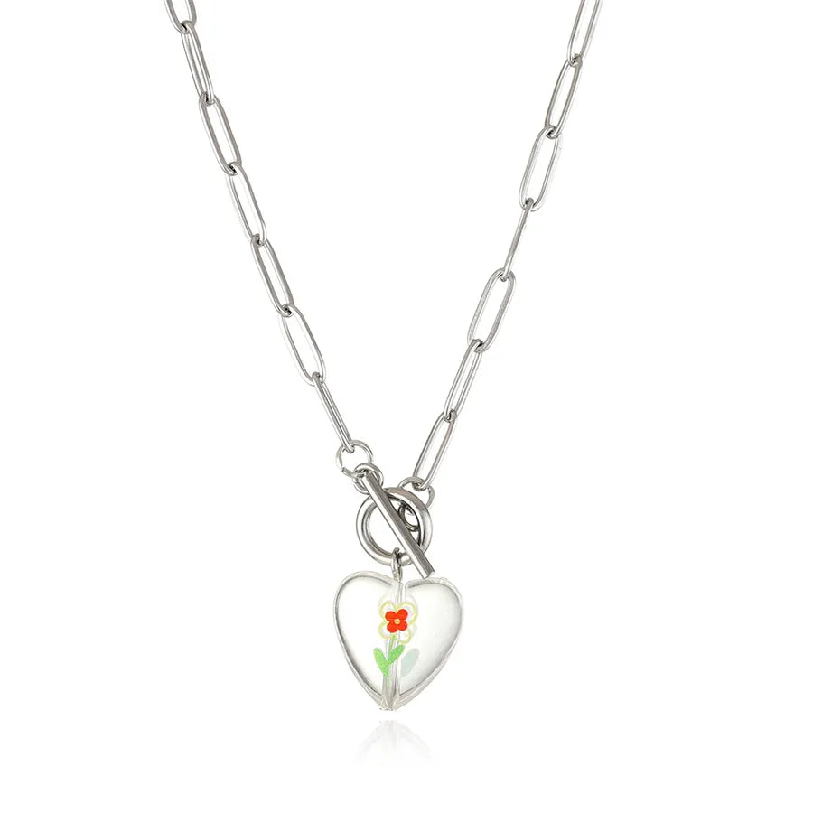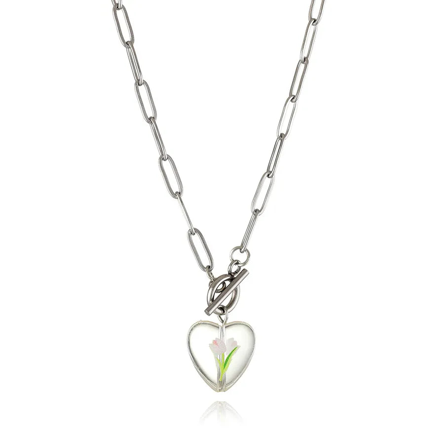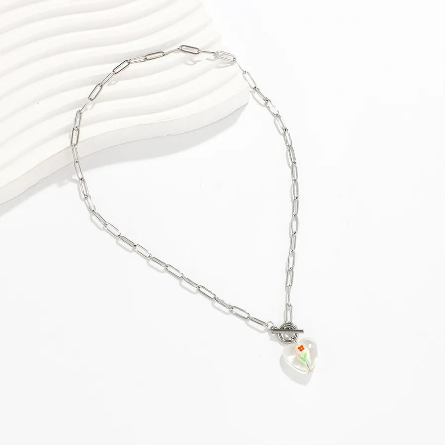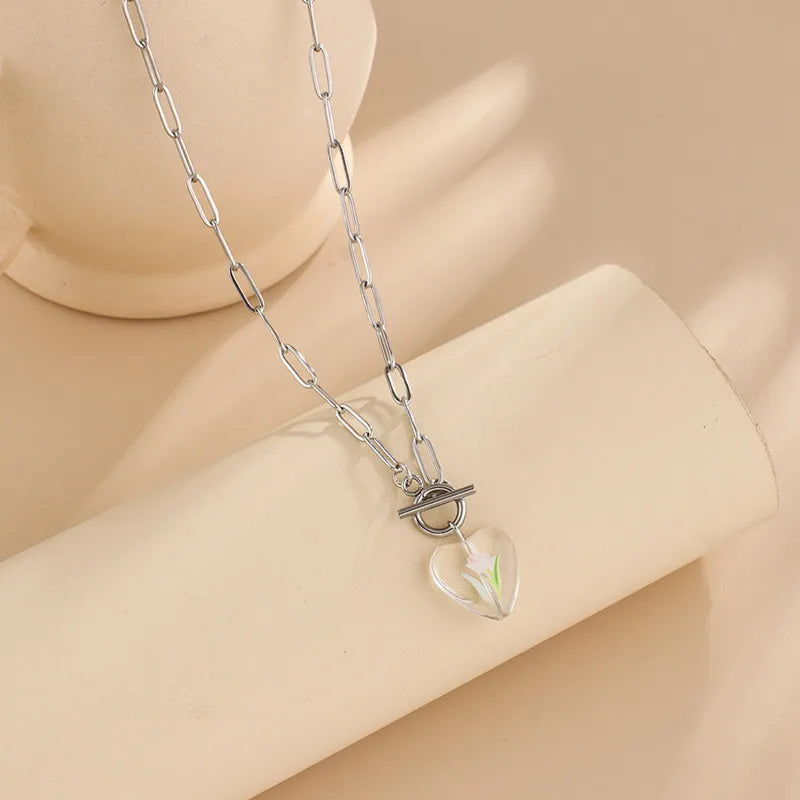 Stainless Steel Geometric Pendant Necklace Women Simple Fashion Lockbone Chain Jewelry Heart Shape Summer Versatile Accessory - NE0363 Tulip