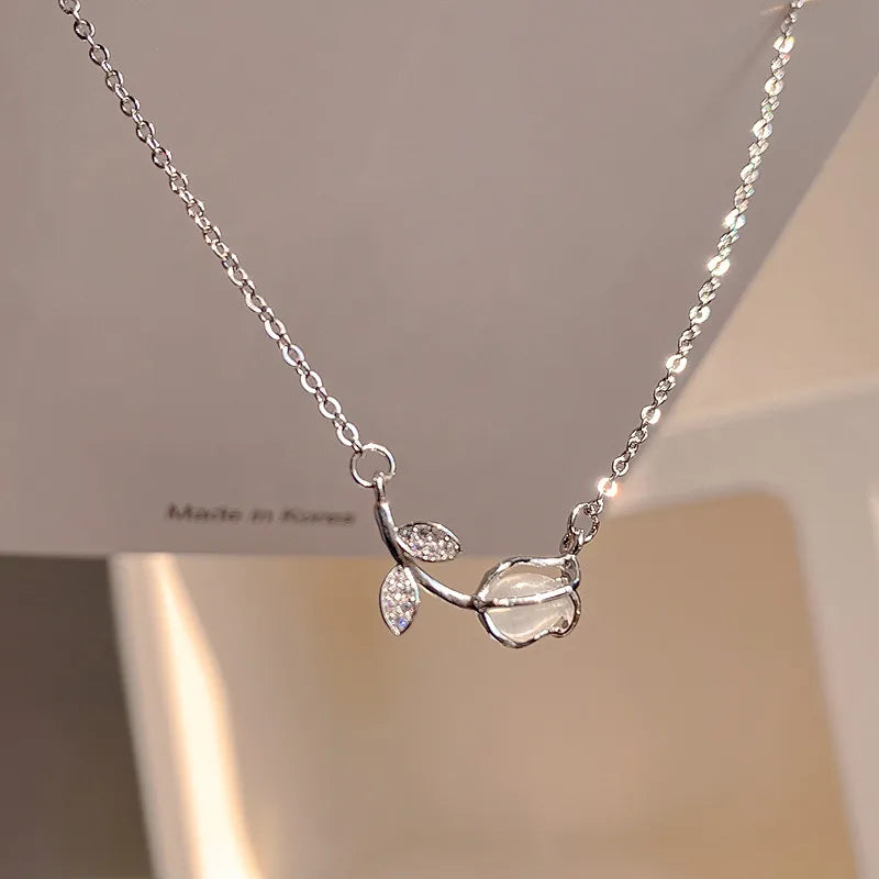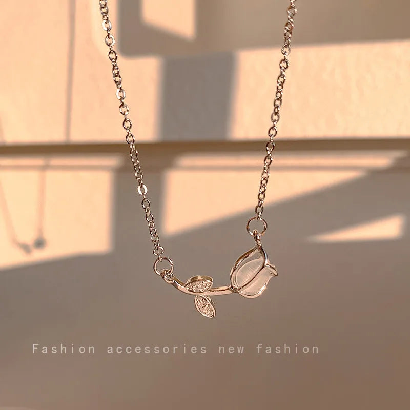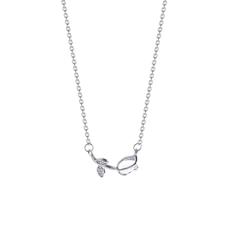 Sweet tulips Rhinestones 667 Stainless Steel Alloy cable chain Pendant Necklaces Wholesale - Tulip Necklace【40+5CM】