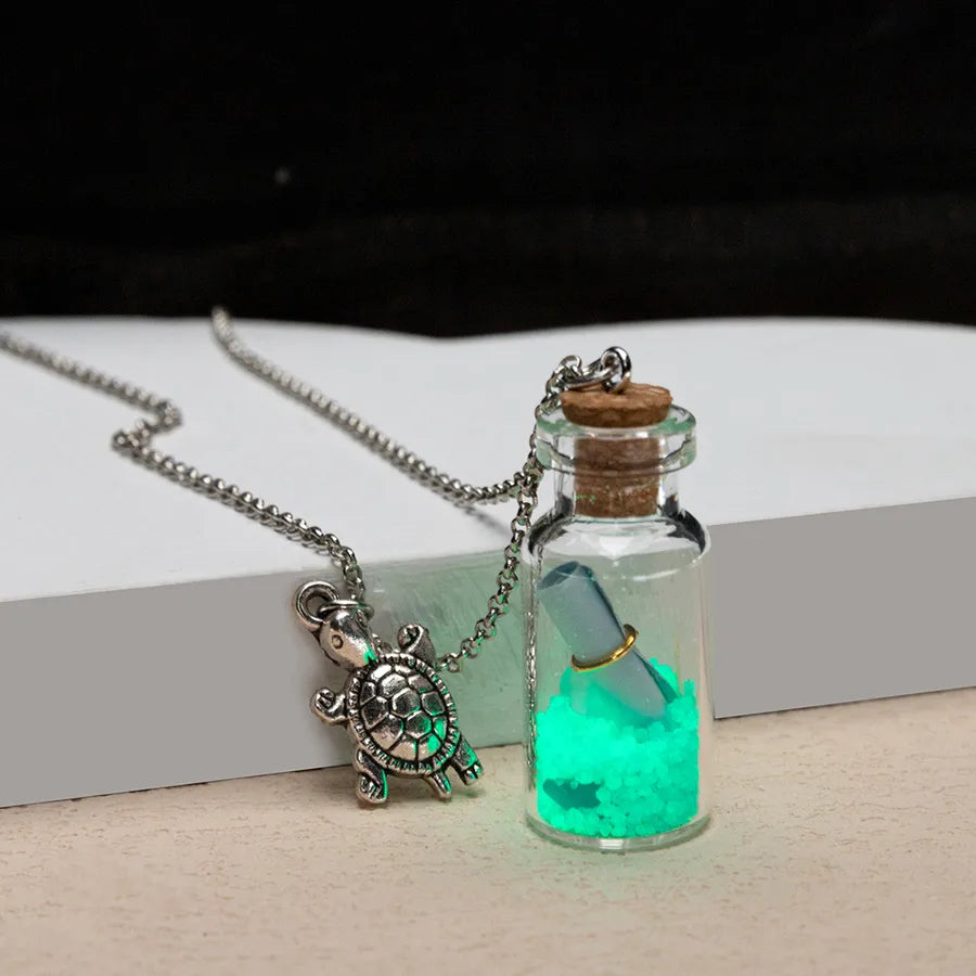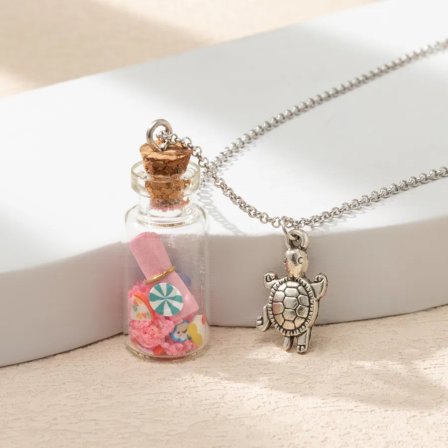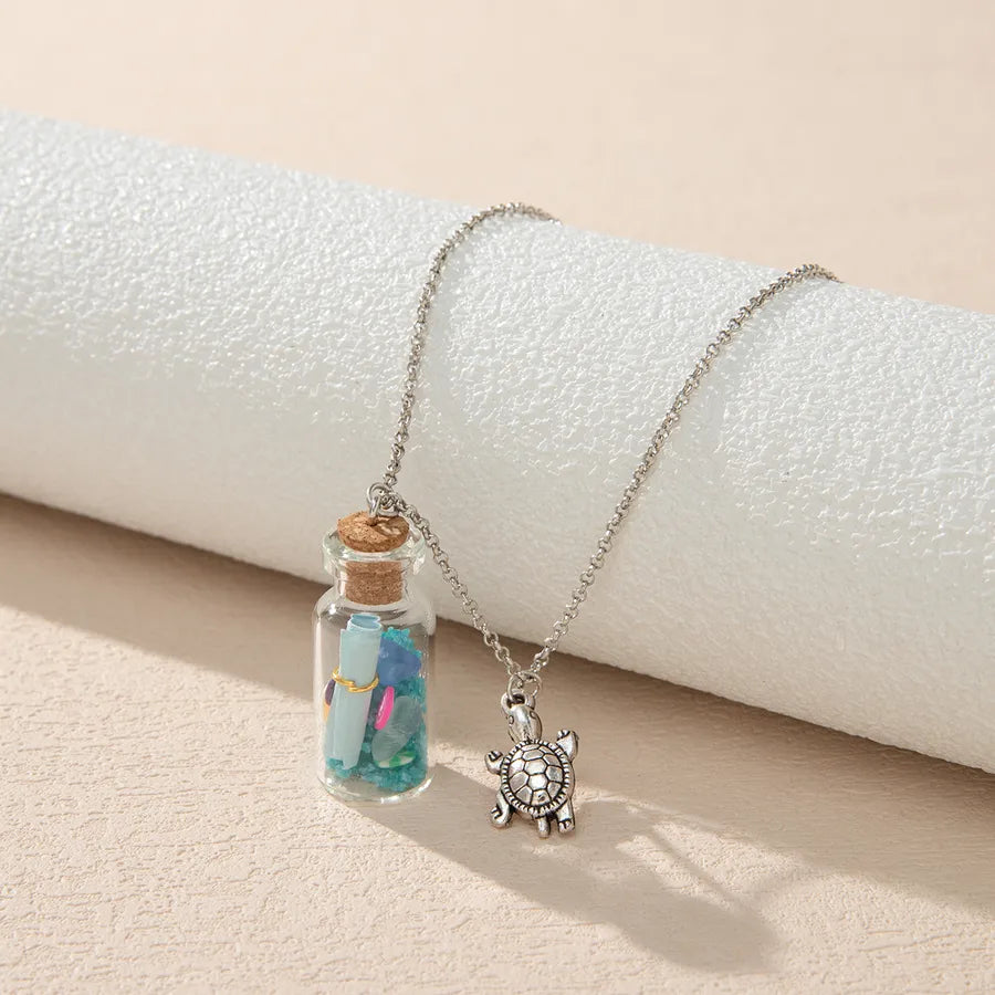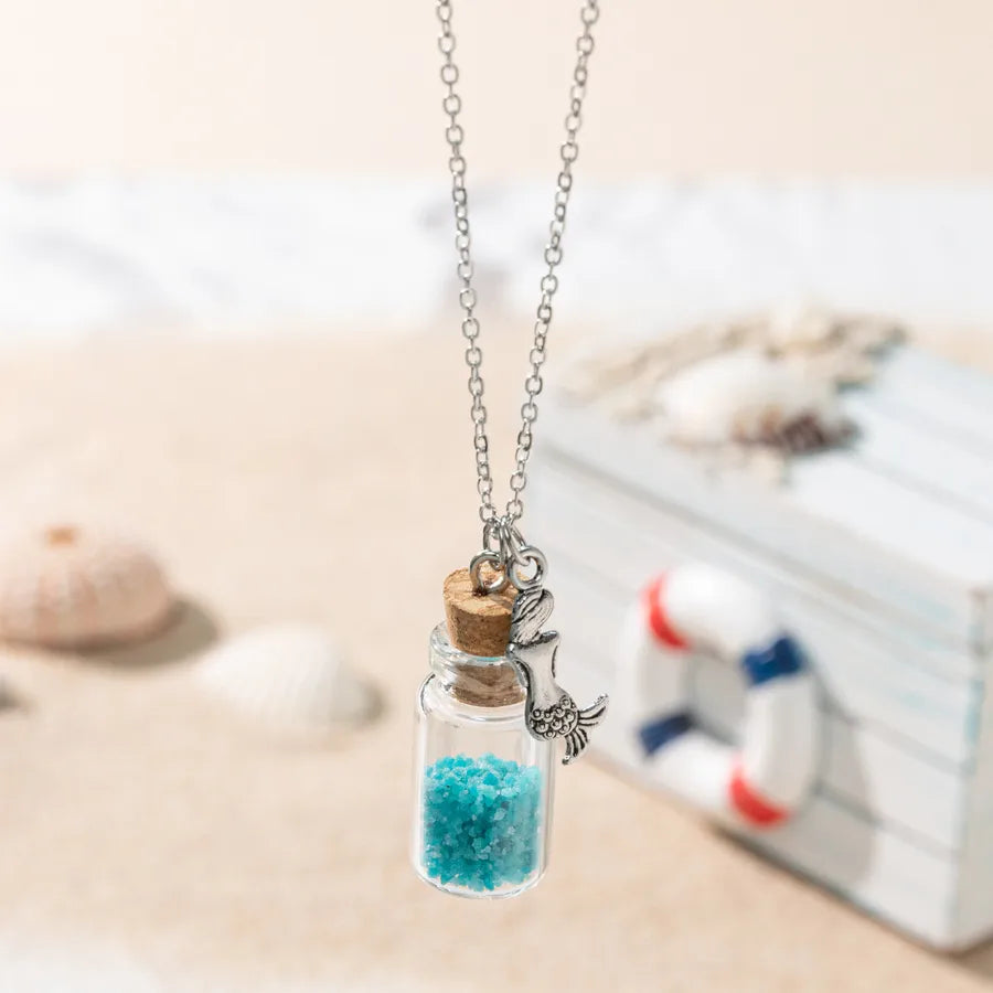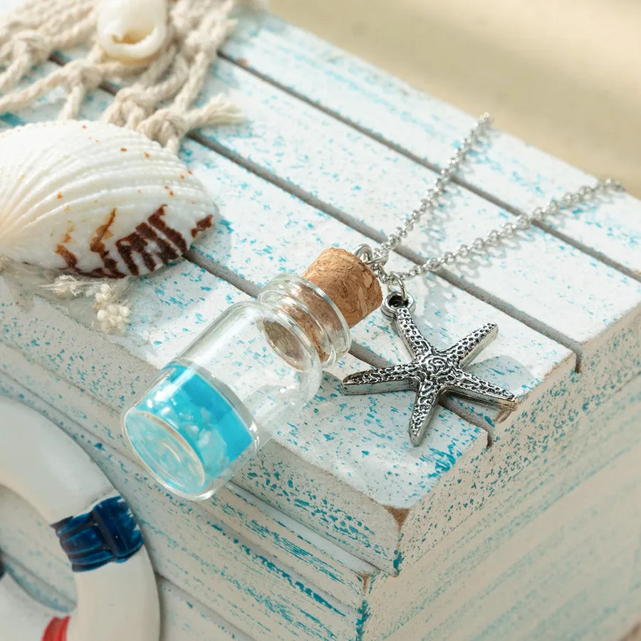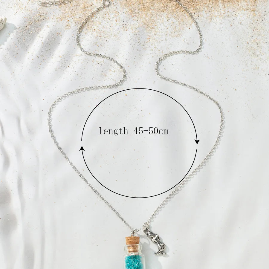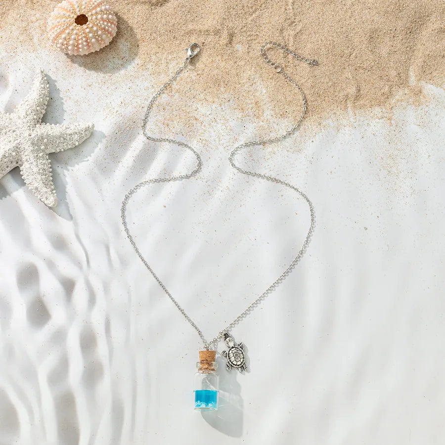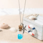 Vacation Beach Tortoise Starfish Mermaid Glass Unisex Pendant Necklace - One Size / Multicolor / Mermaid