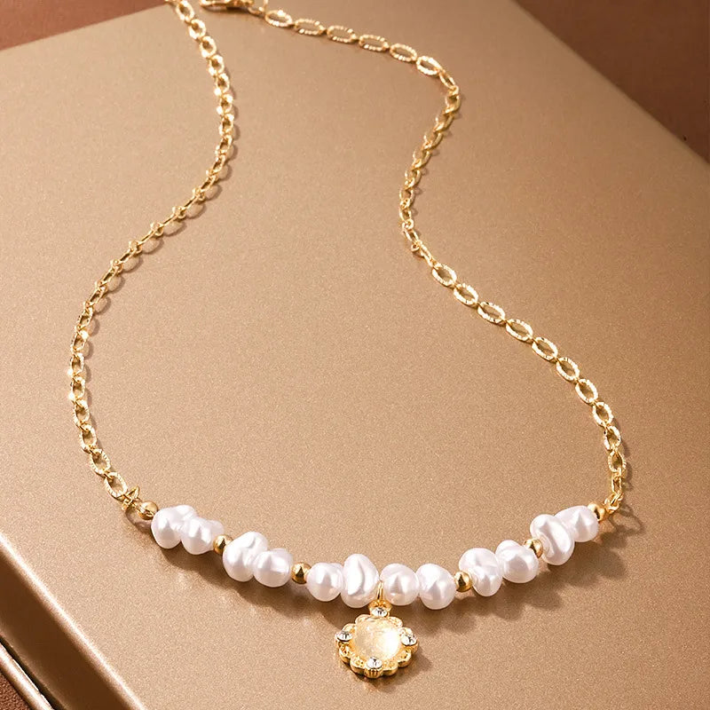 Vacation Classic Style Solid Color Alloy Paperclip Chain Pendant Necklaces Wholesale - Gold
