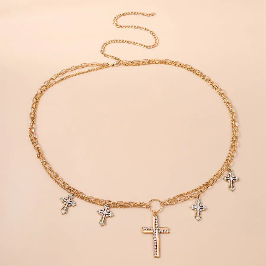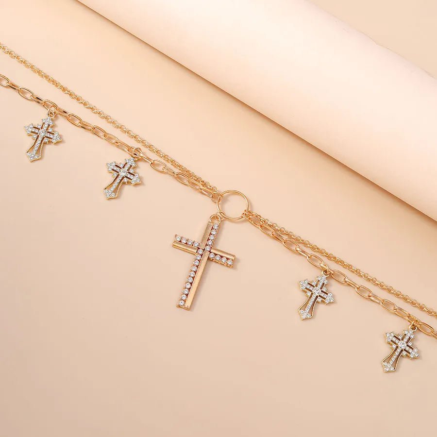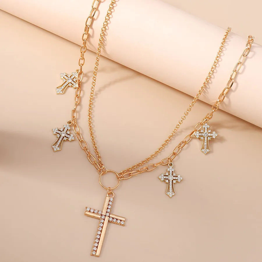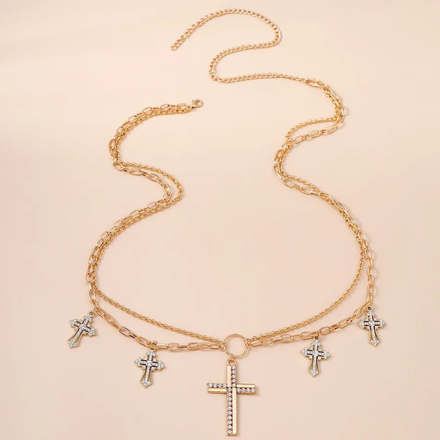 Vacation Classic Style Solid Color Rhinestones Zinc alloy cable chain Pendant Necklaces Wholesale - Gold