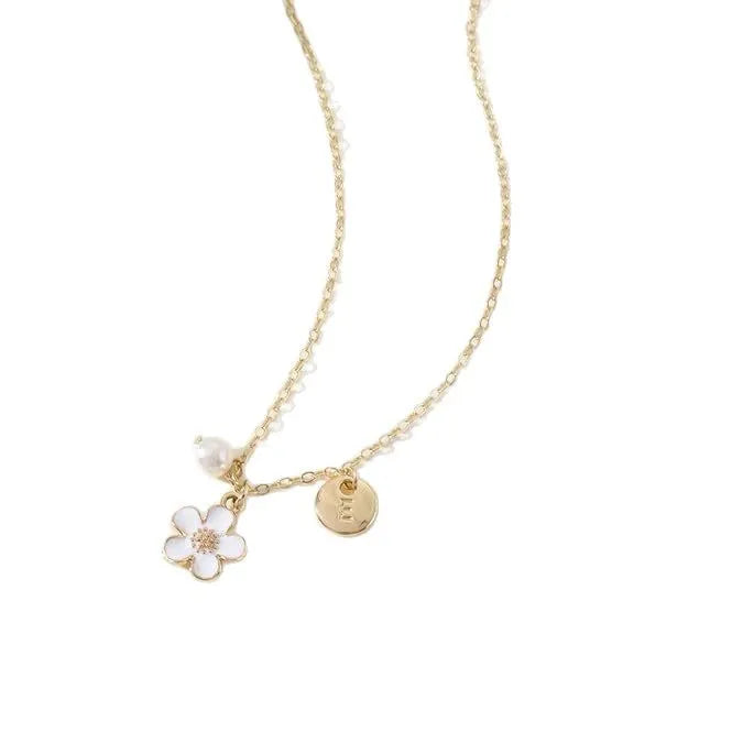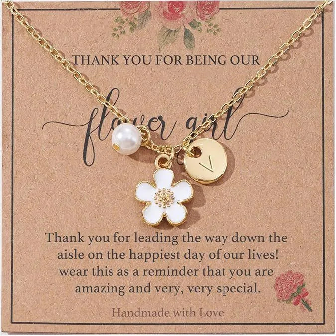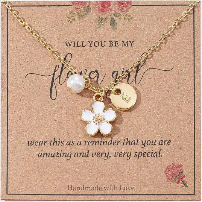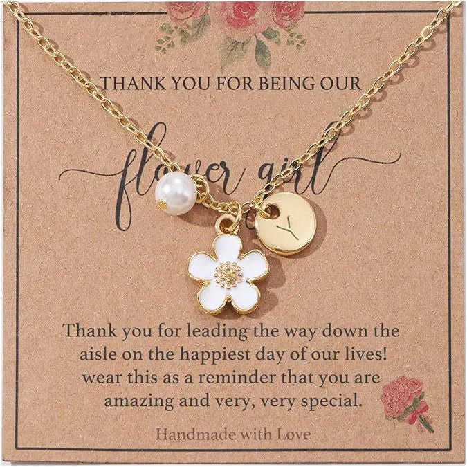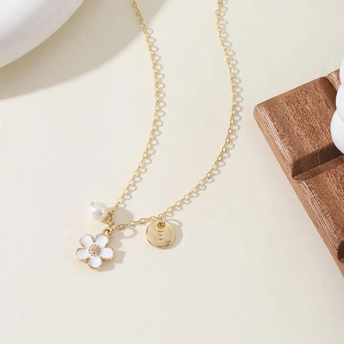 Versatile New 26 Letter Flower Imitation Pearl Pendant Necklace Unisex Fashionable Elegant Jewelry Stainless Steel Simple Style - A (excluding Card)