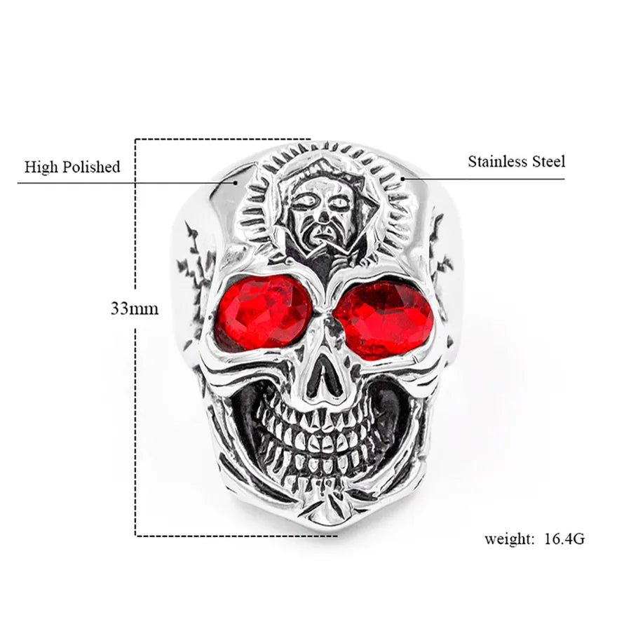 Punk Skull 304 Stainless Steel Inlay Rhinestones 18K Gold Plated Halloween Men's Rings