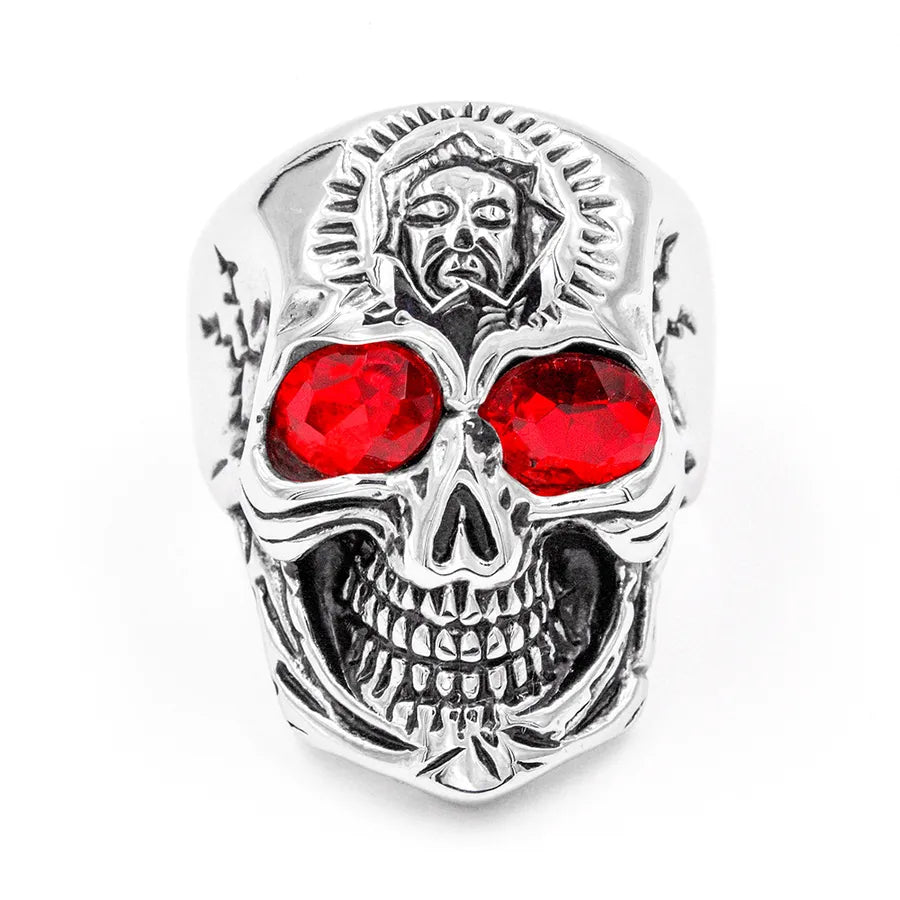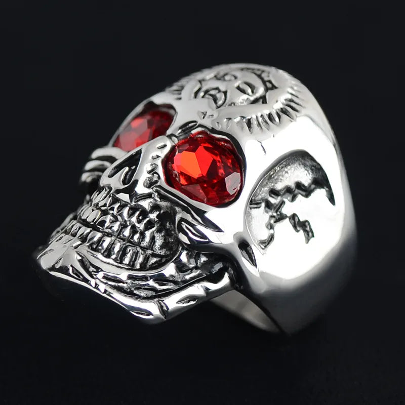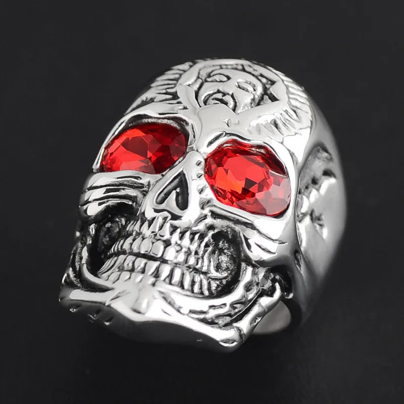 Punk Skull 304 Stainless Steel Inlay Rhinestones 18K Gold Plated Halloween Men's Rings - No. 8 / Black