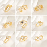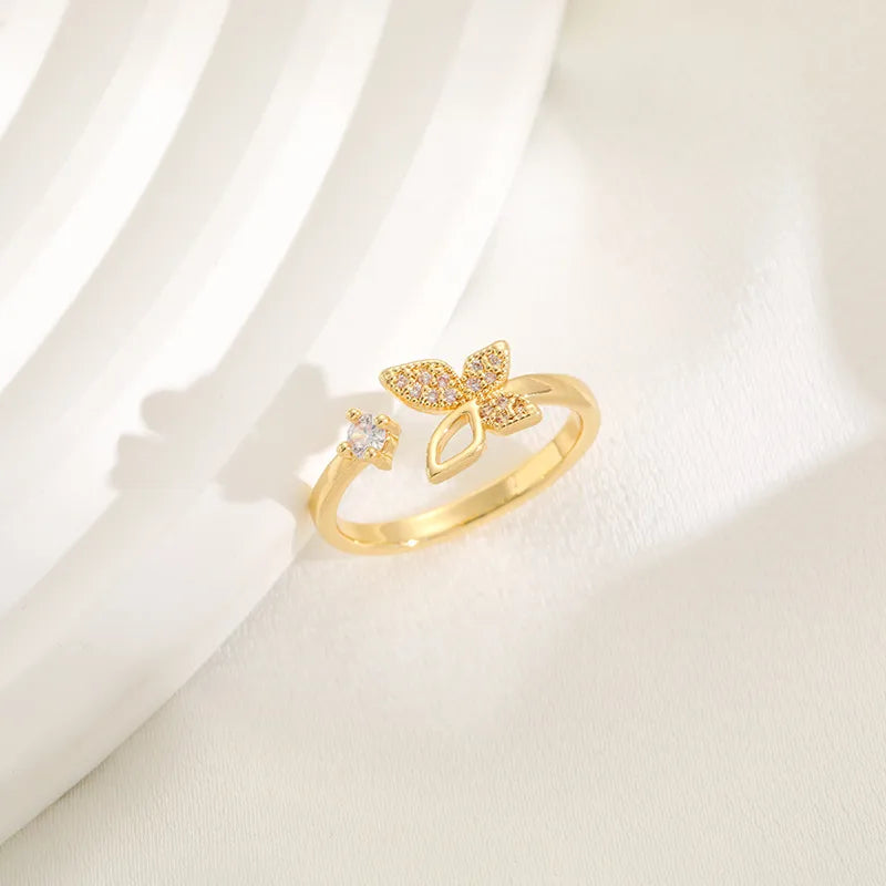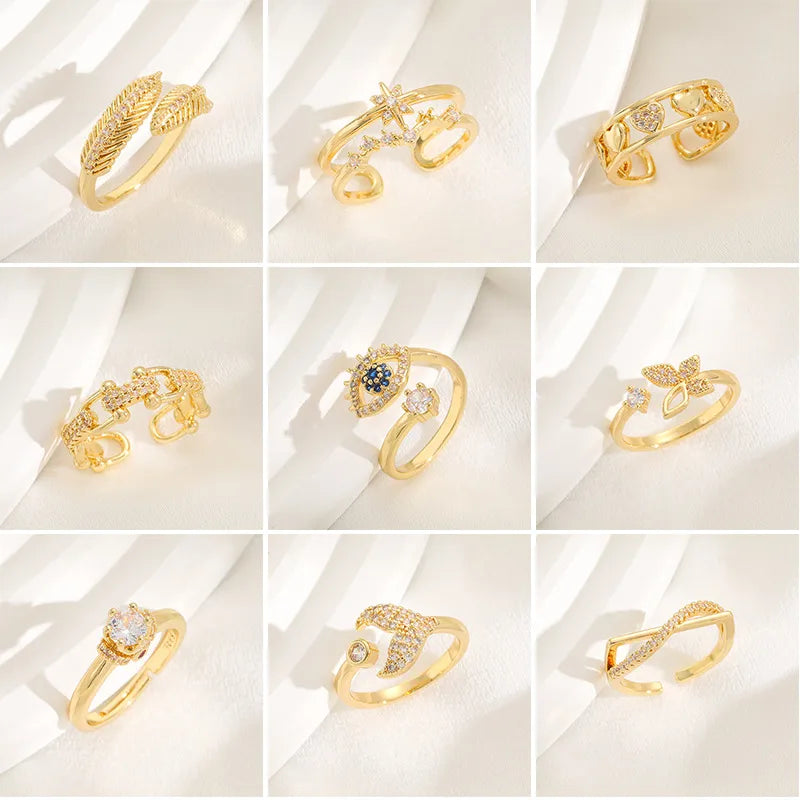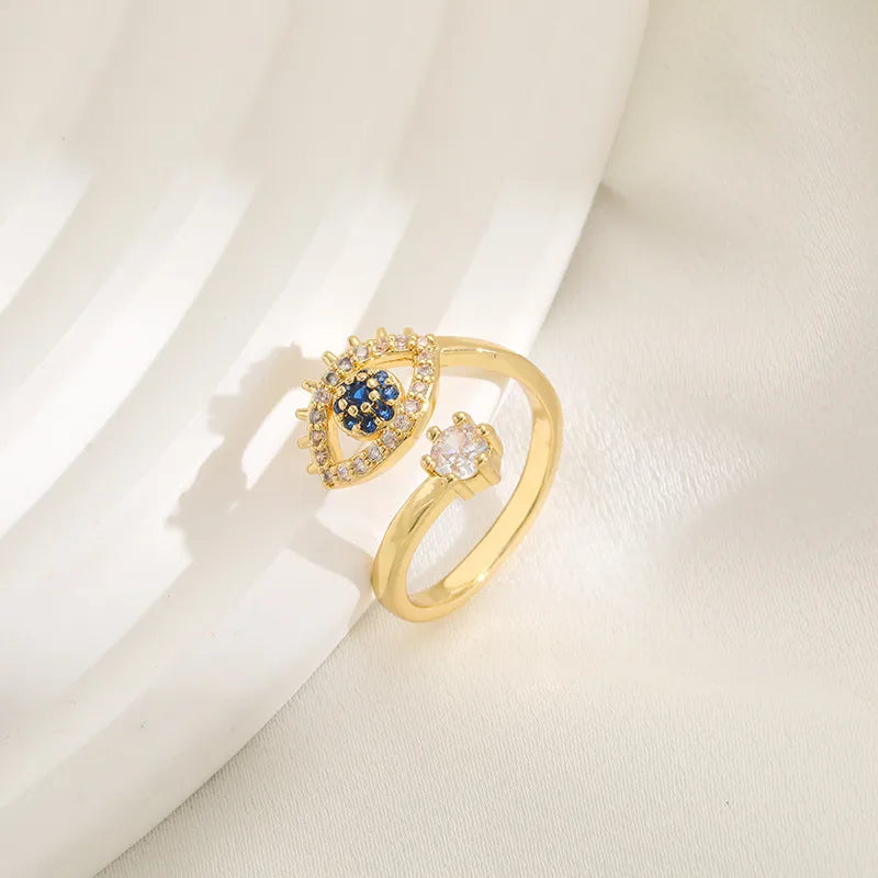 classic style heart shape eye butterfly metal plating inlay artificial gemstones women's open rings - Diamond Style