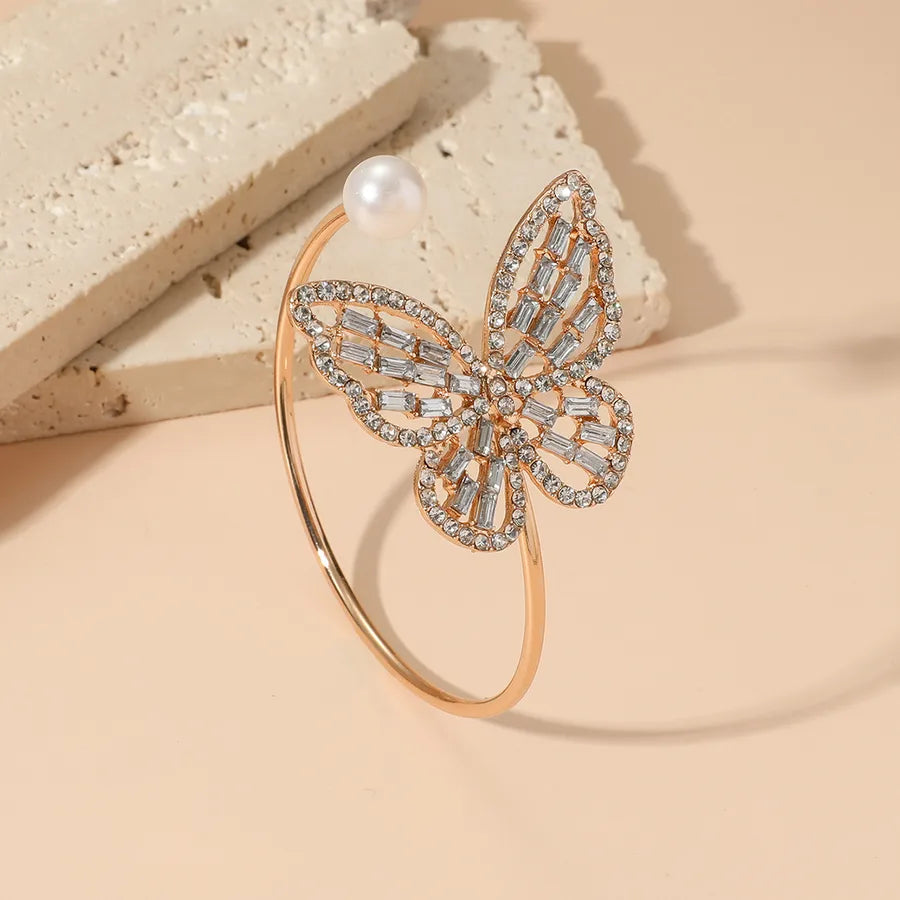 fashion butterfly metal inlay rhinestones women's rings - Butterfly Bracelet (Gold White Diamond)