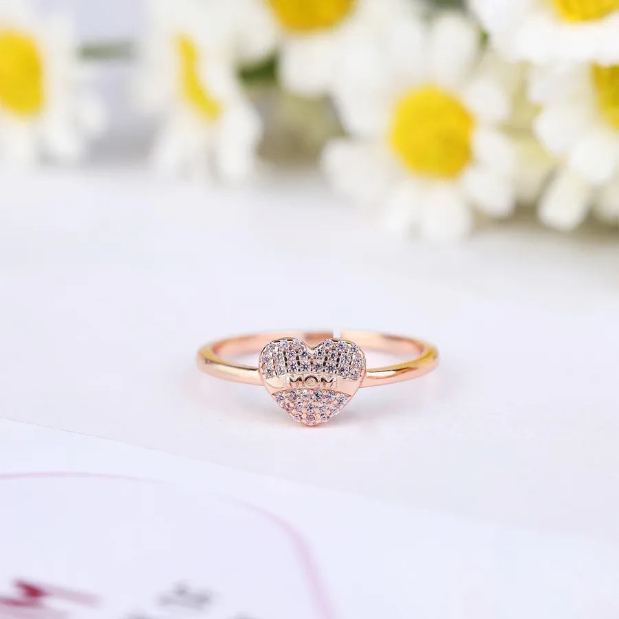 mama letter heart shape alloy plating zircon mother's day women's open ring - Adjustable Opening / Rose Gold without Card