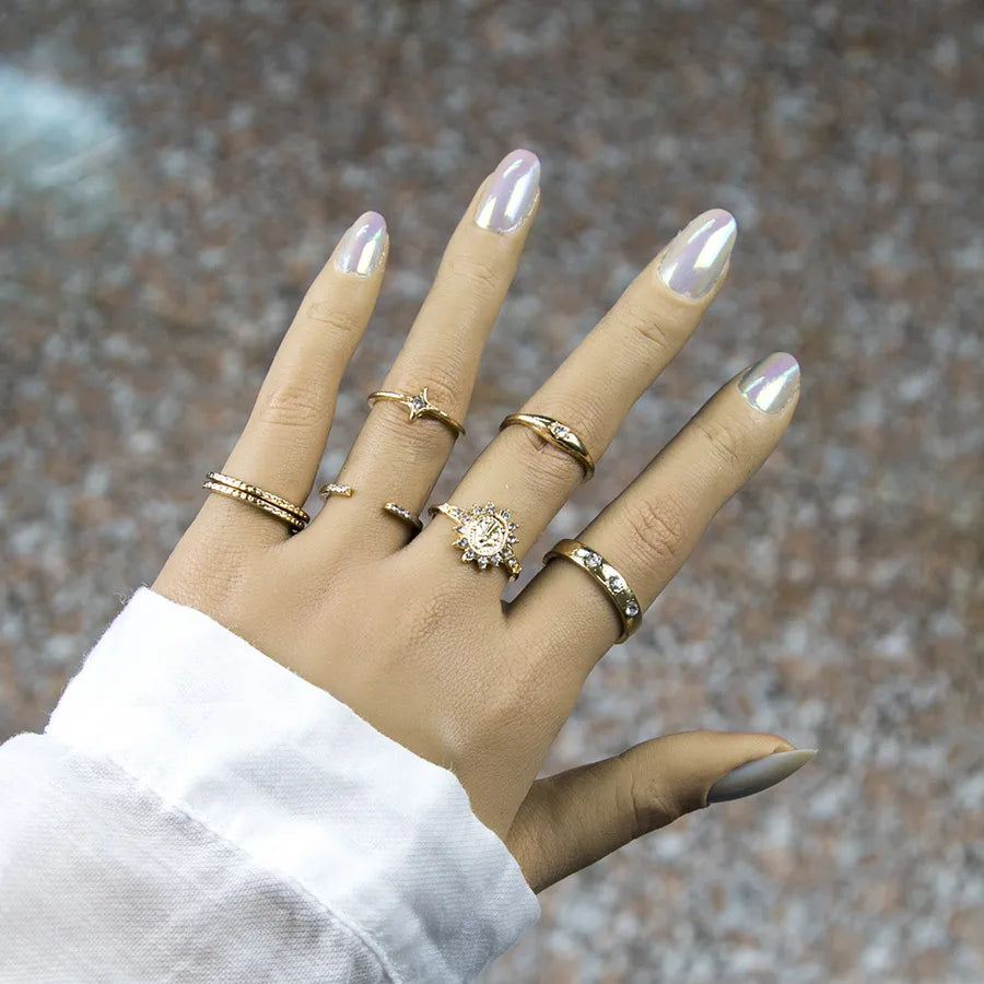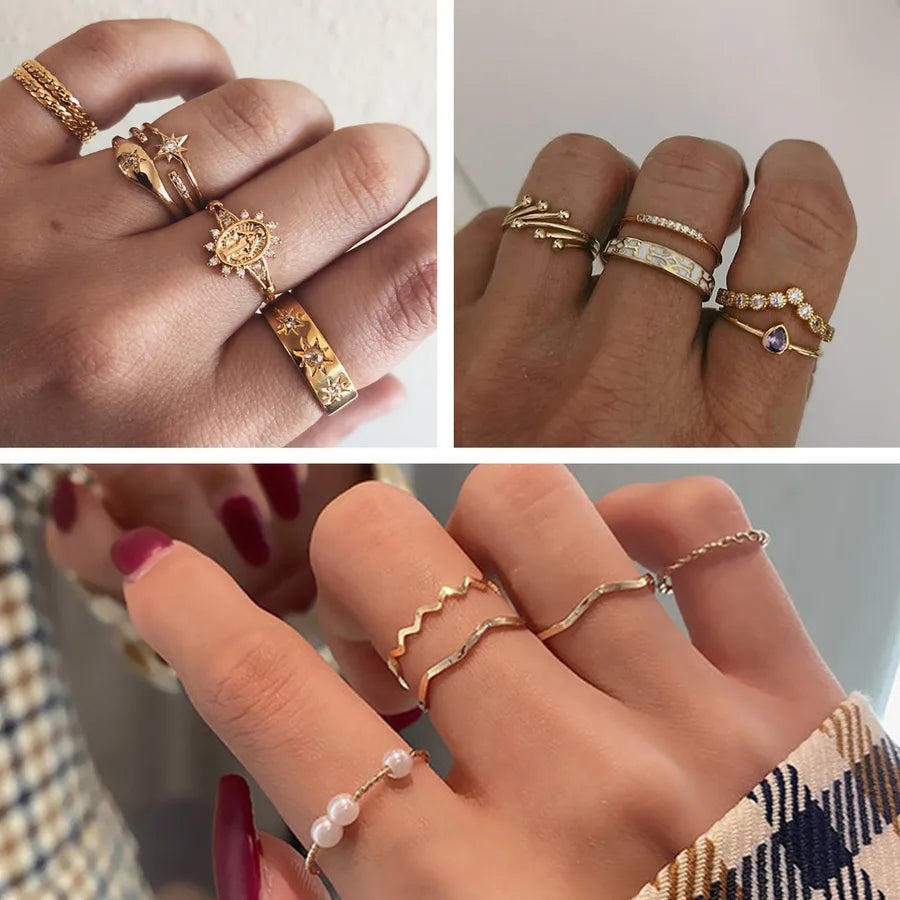Simple Style Geometric Alloy Inlay Artificial Gemstones Women's Rings - Alloy / Pearl 5-Piece Set