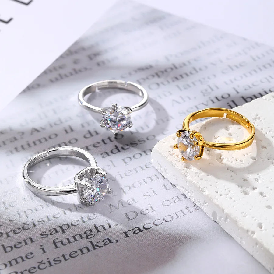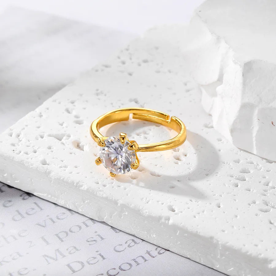 Simple Style Korean Style Round Square Alloy Inlay Artificial Crystal Glass Women's Adjustable Ring - Golden Circle
