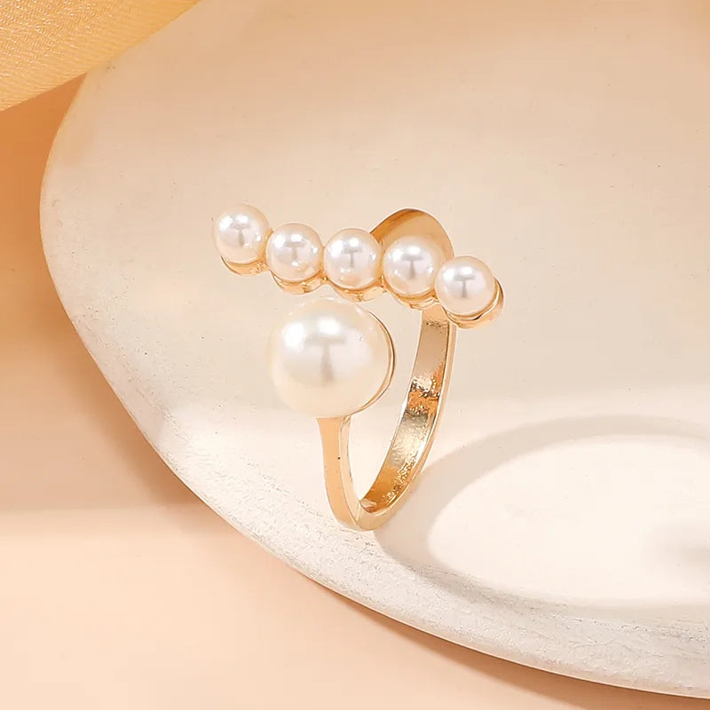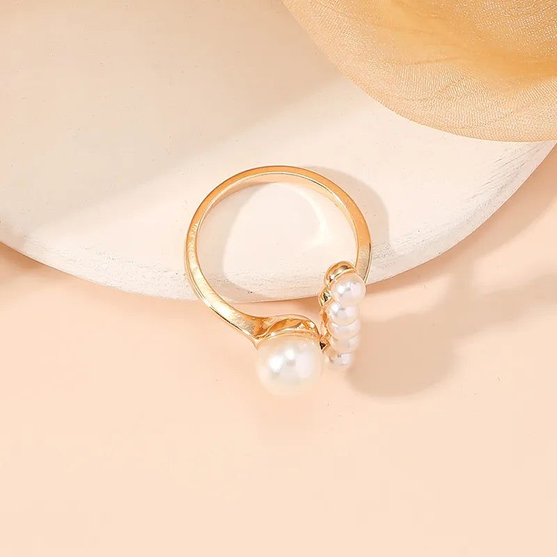 Wholesale Jewelry Elegant Pearl Alloy Gold Plated Asymmetrical Rings