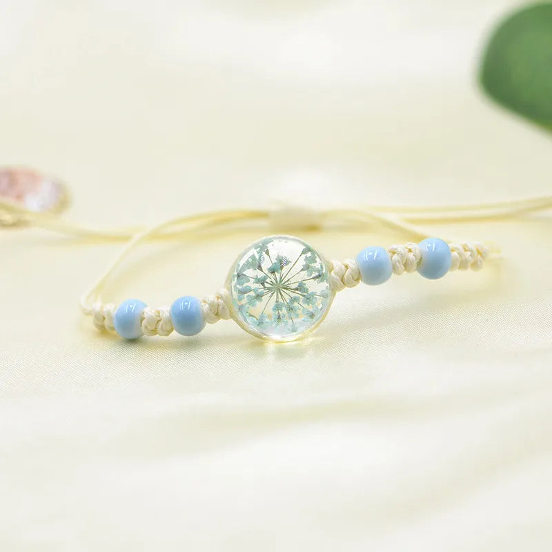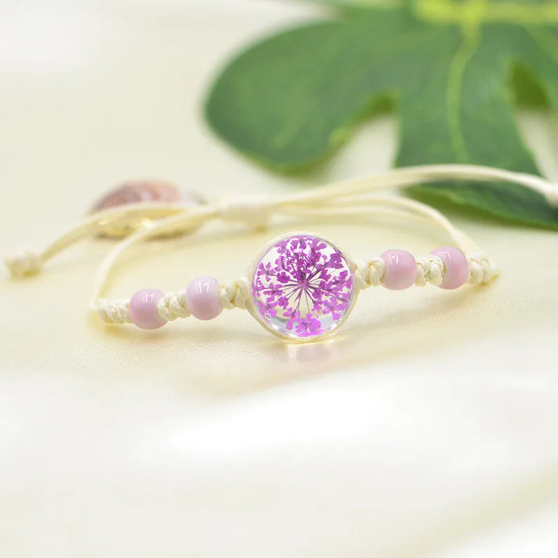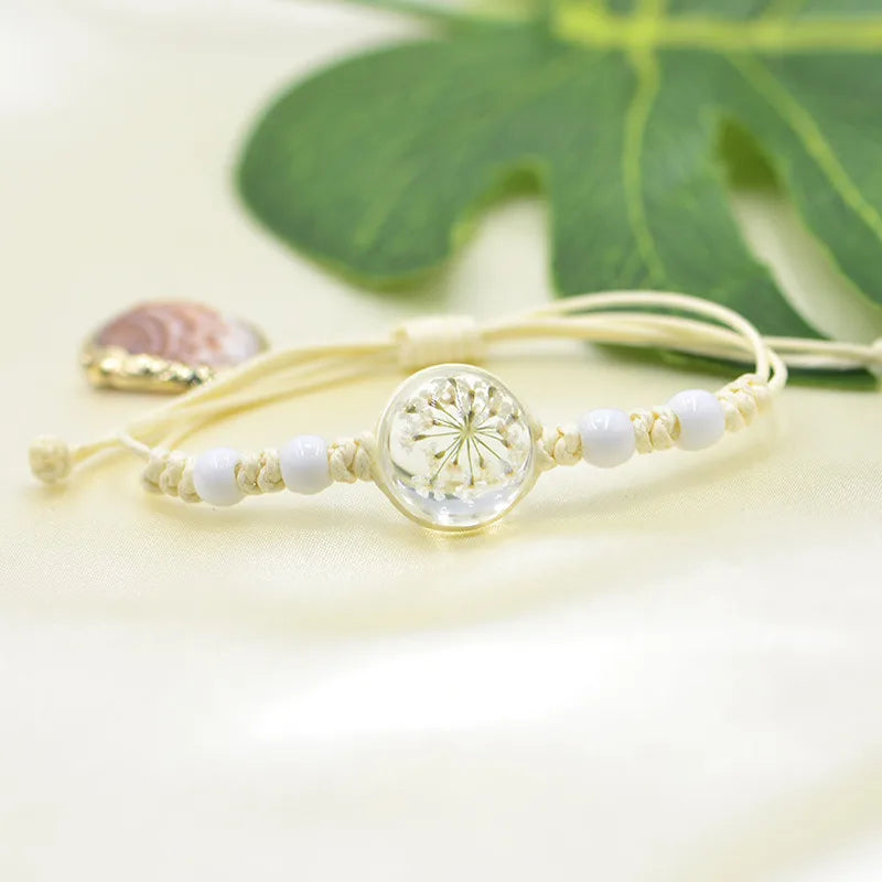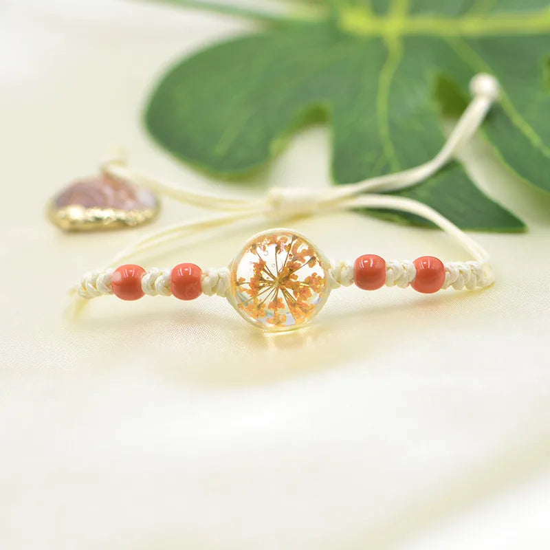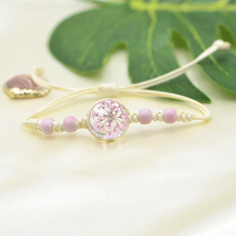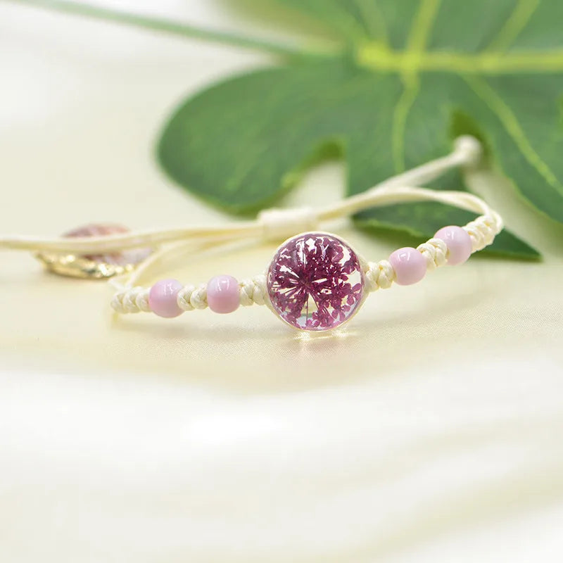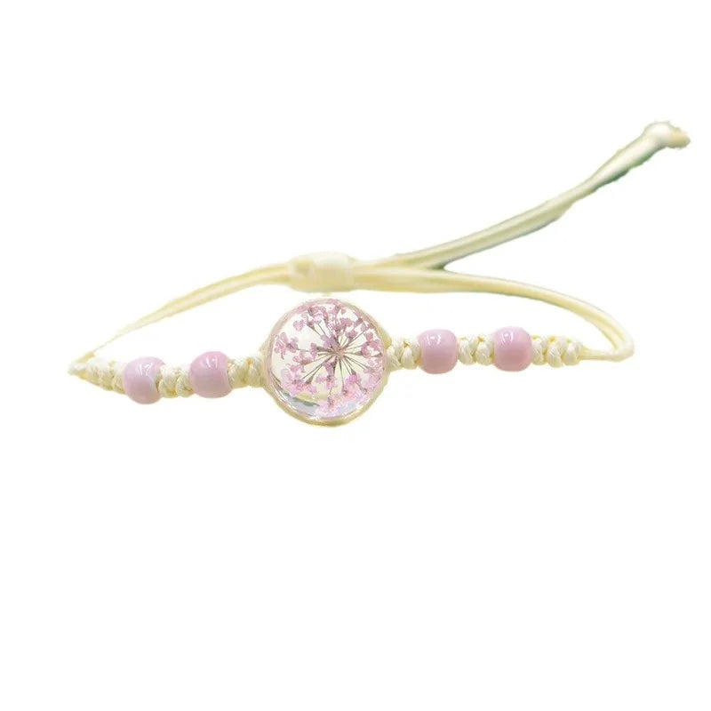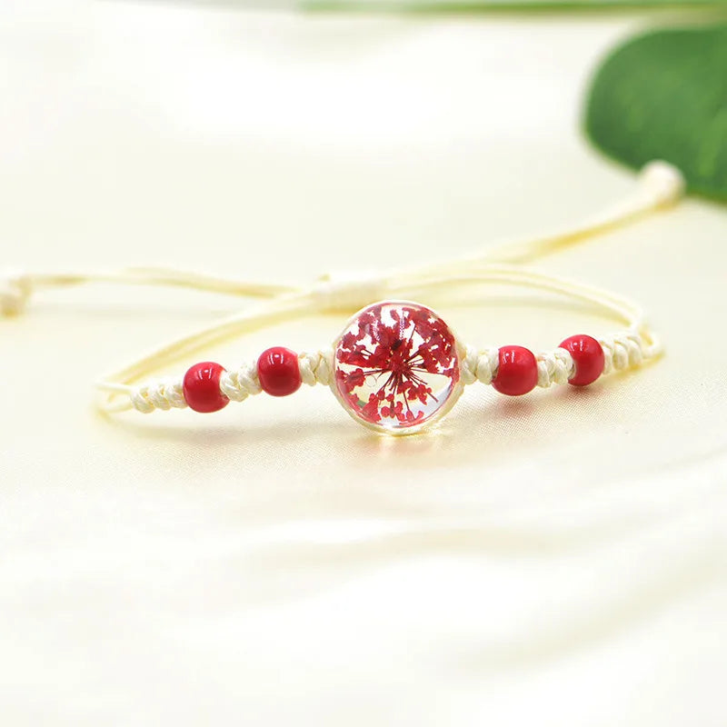 Handmade Dry Flower Bracelet Pull Out Lace Flower Full Sky Star Snow Bead Plant Fashion Jewelry For Women Floral Design - Red
