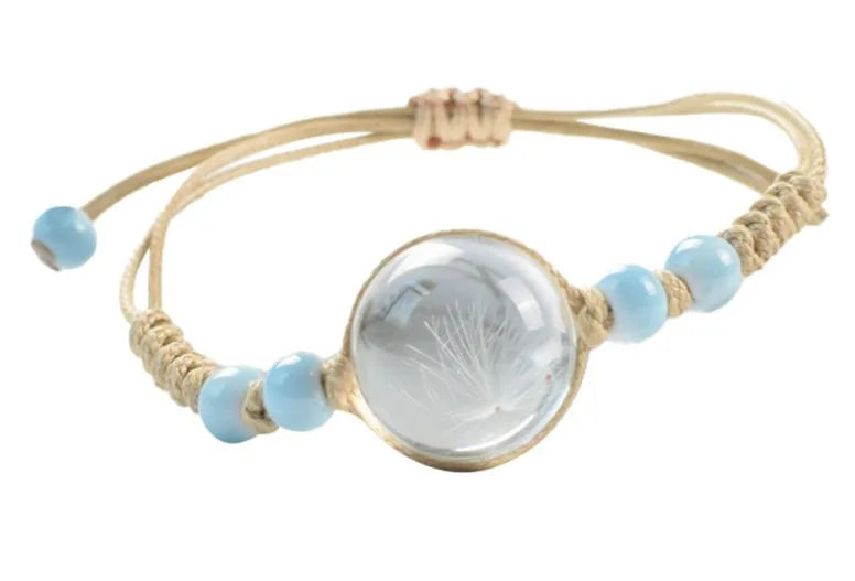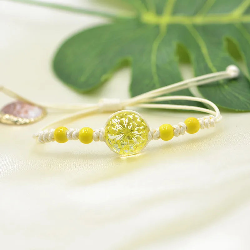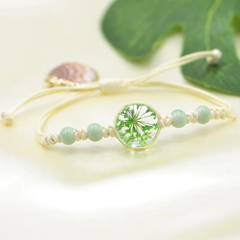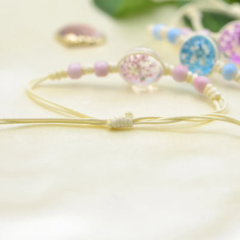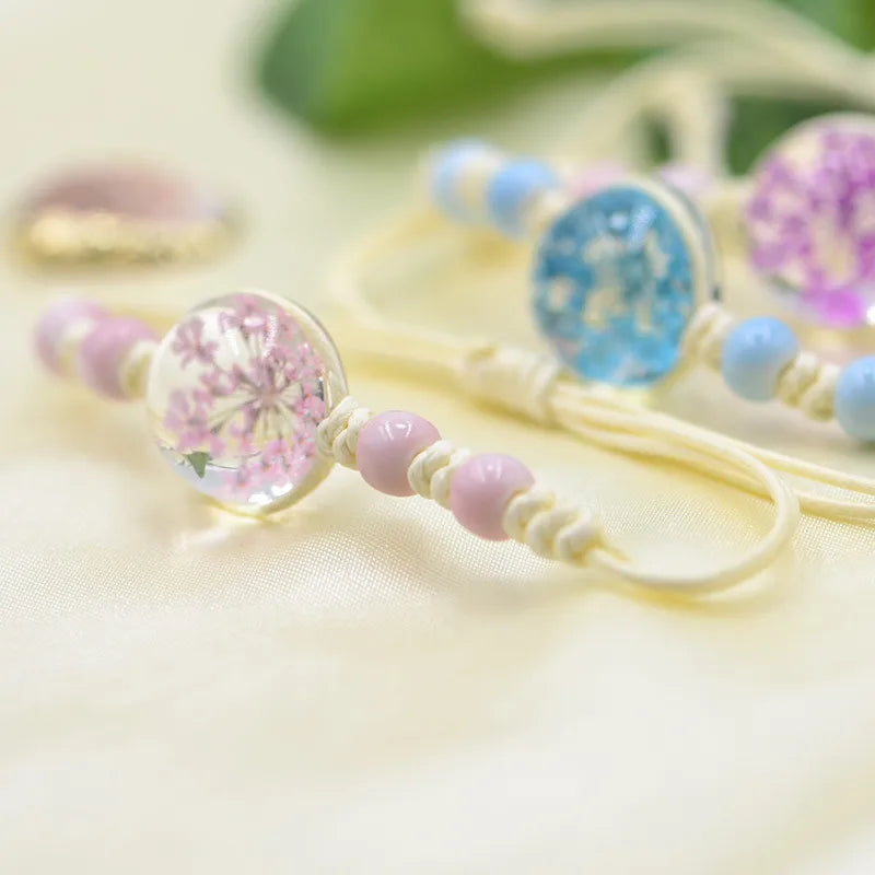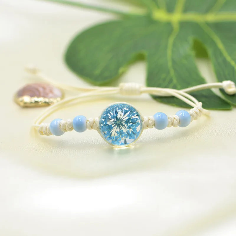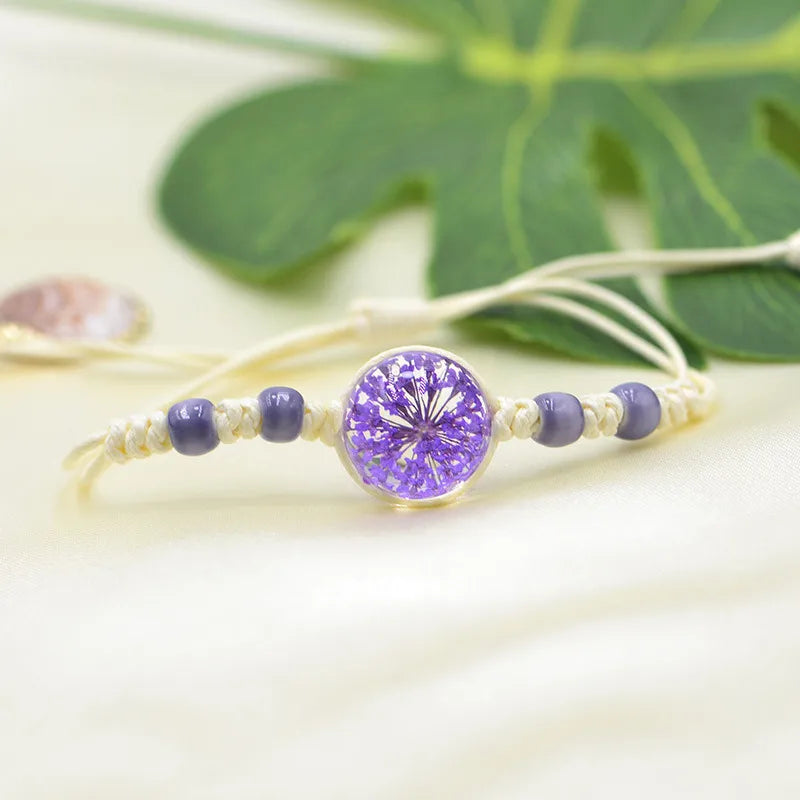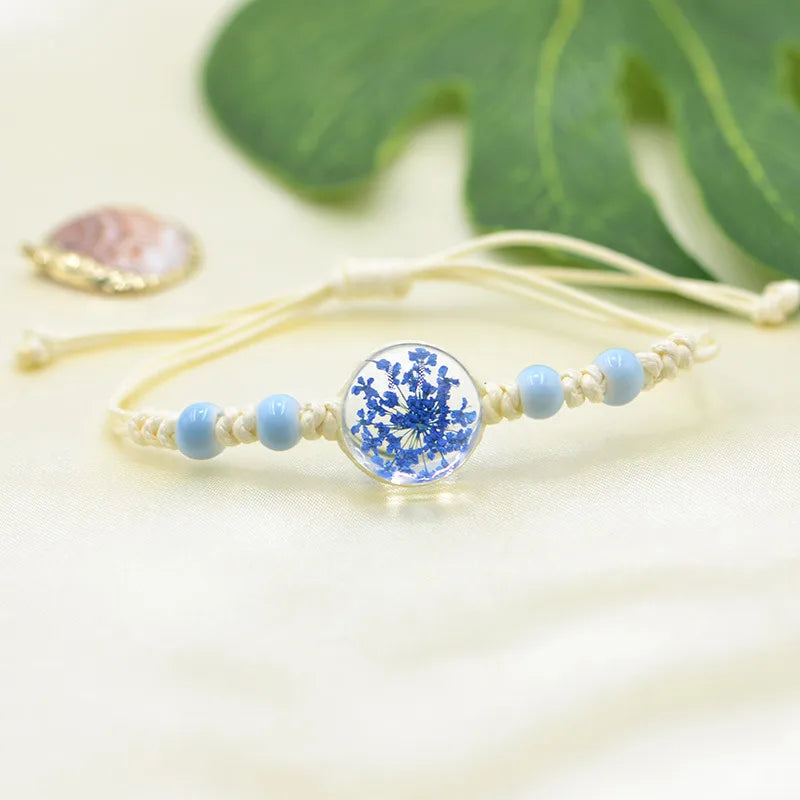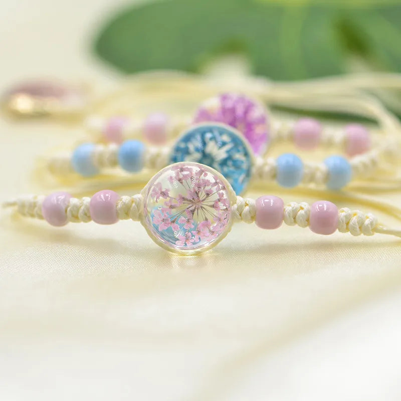 Handmade Dry Flower Bracelet Pull Out Lace Flower Full Sky Star Snow Bead Plant Fashion Jewelry For Women Floral Design - Red