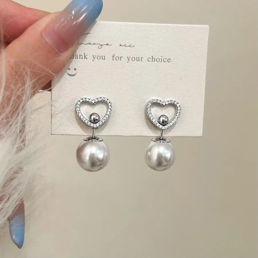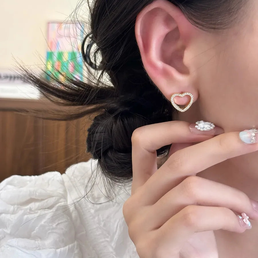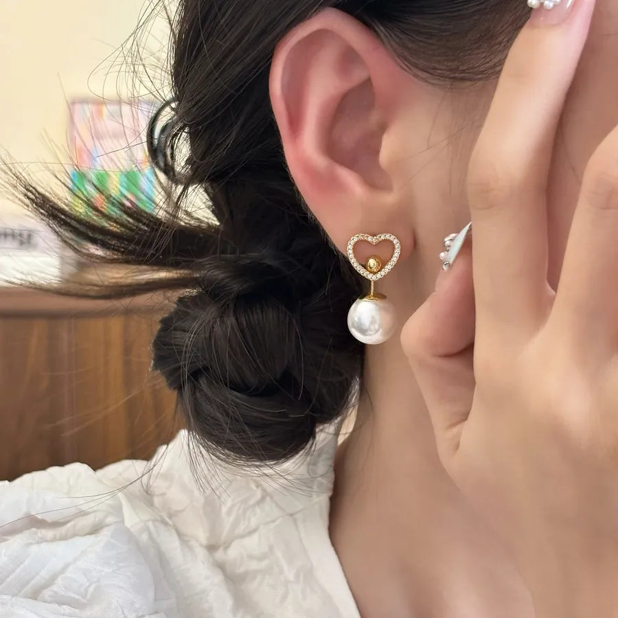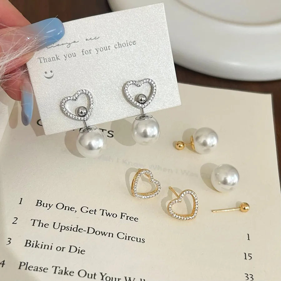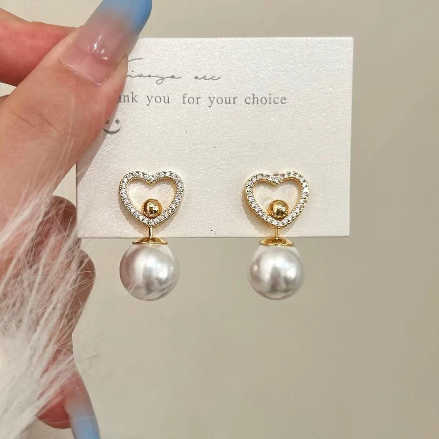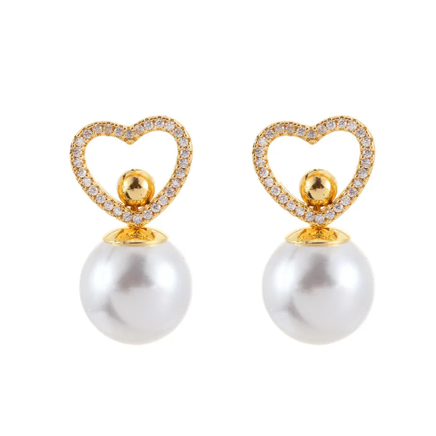 Elegant Simple Sweet Zircon Heart Pearl Pendant Earrings Luxury Light Luxury Geometric Pattern Female Ear Jewelry - Golden Love Heart Stud Earrings