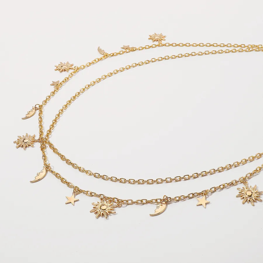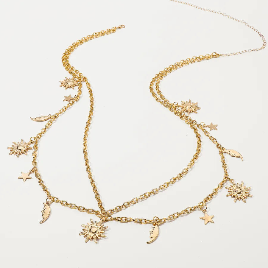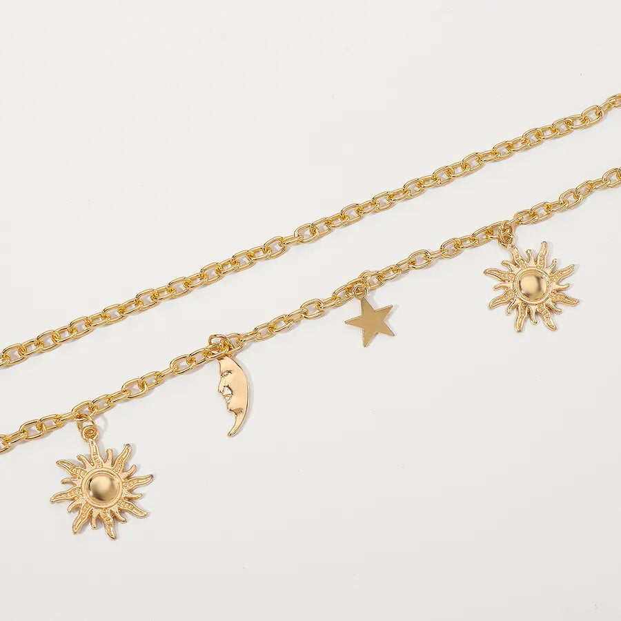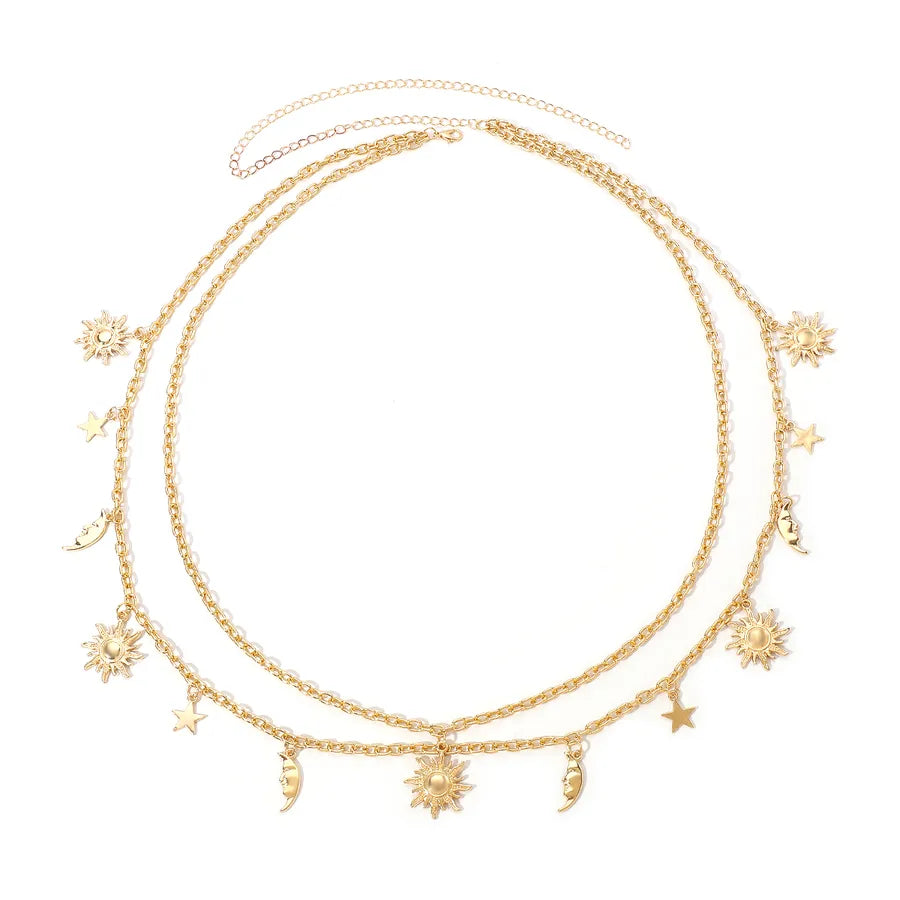 Exaggerated Sexy Sun Star Moon Iron Wholesale Waist Chain - One Size / Gold