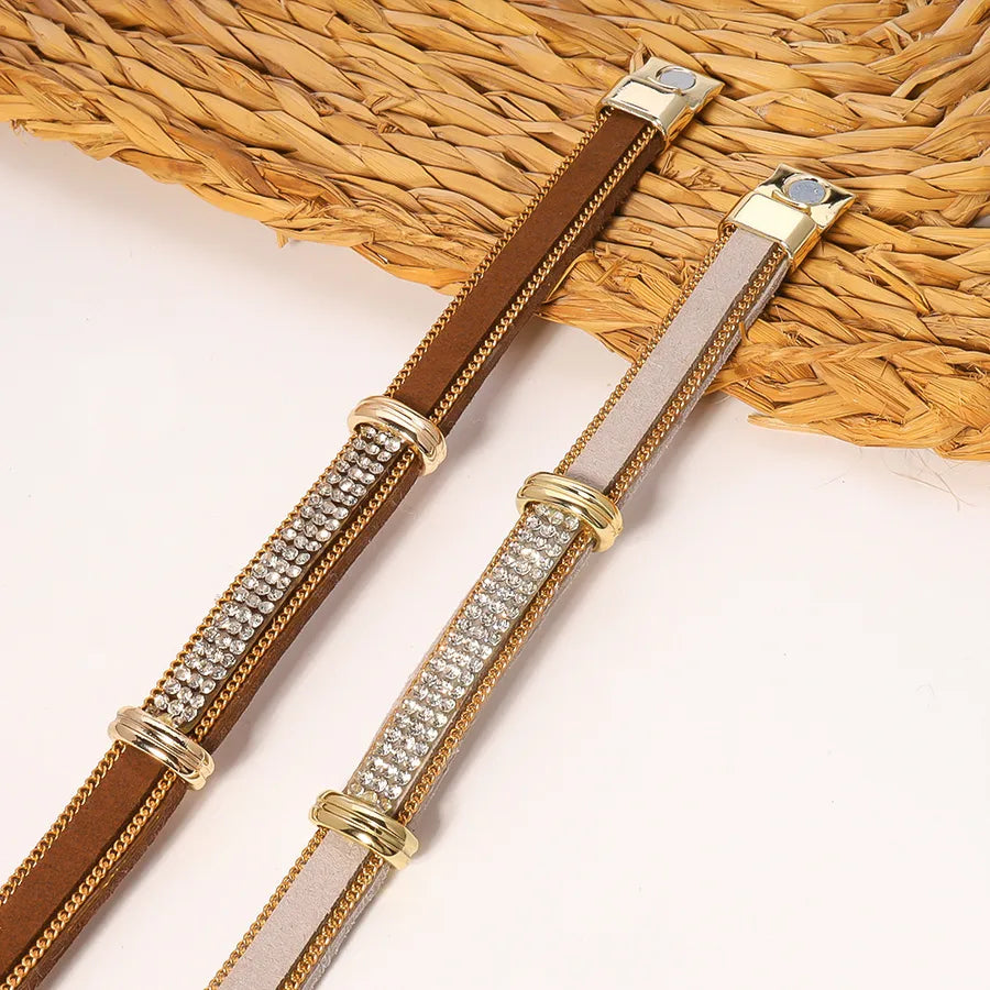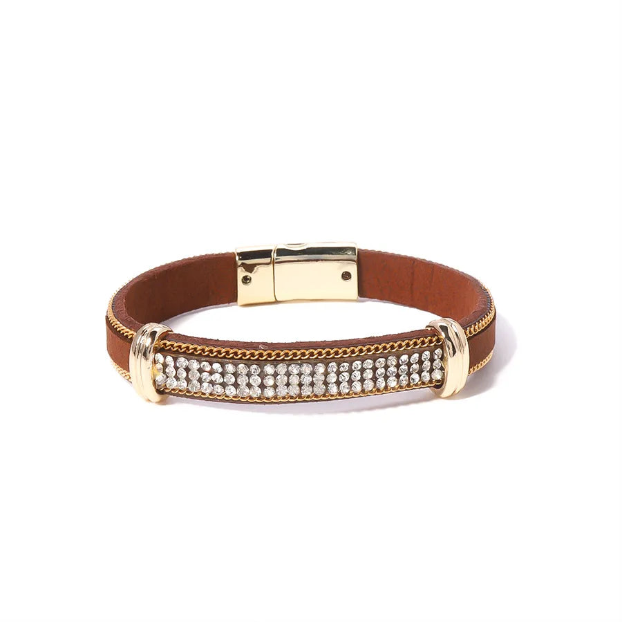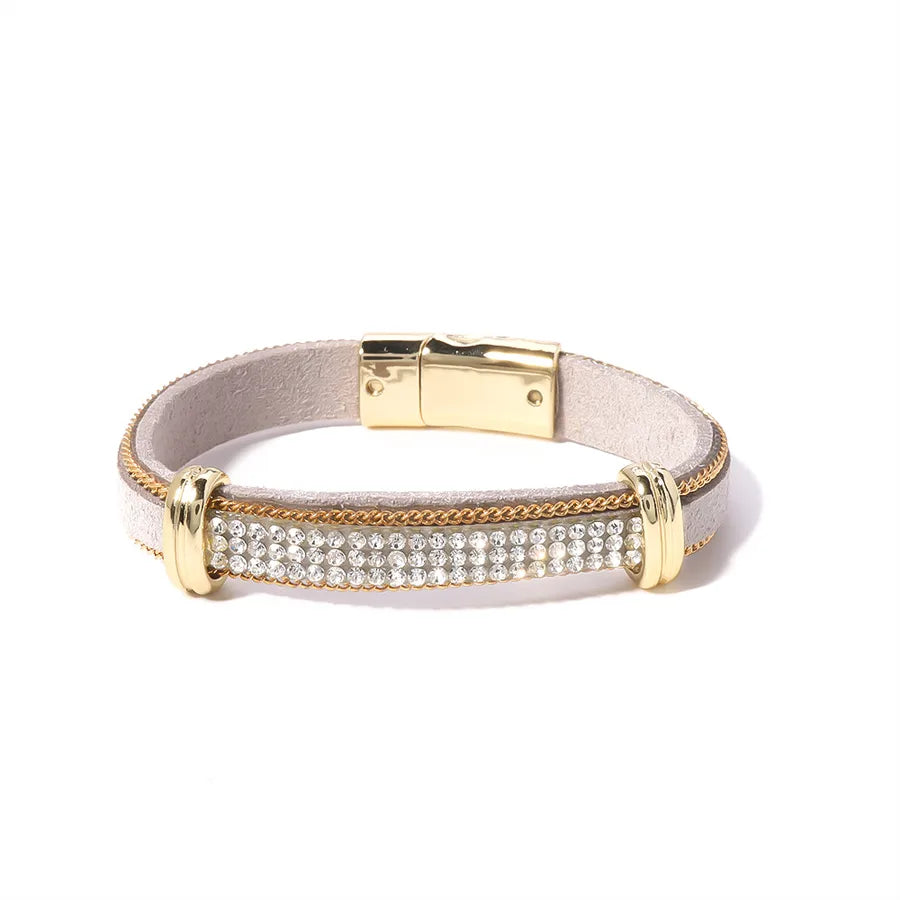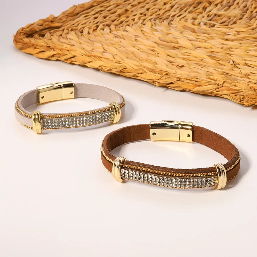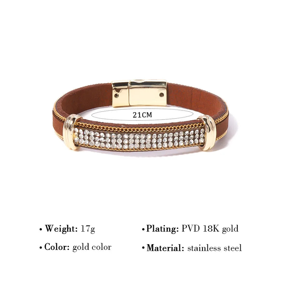 Punk Style Magnetic Diamond Embedded Bracelet Women's Summer Holiday Fashion High-End Geometric Pattern Alloy Ethnic Arm Jewelry - JB21011931C / 18K Gold Plated