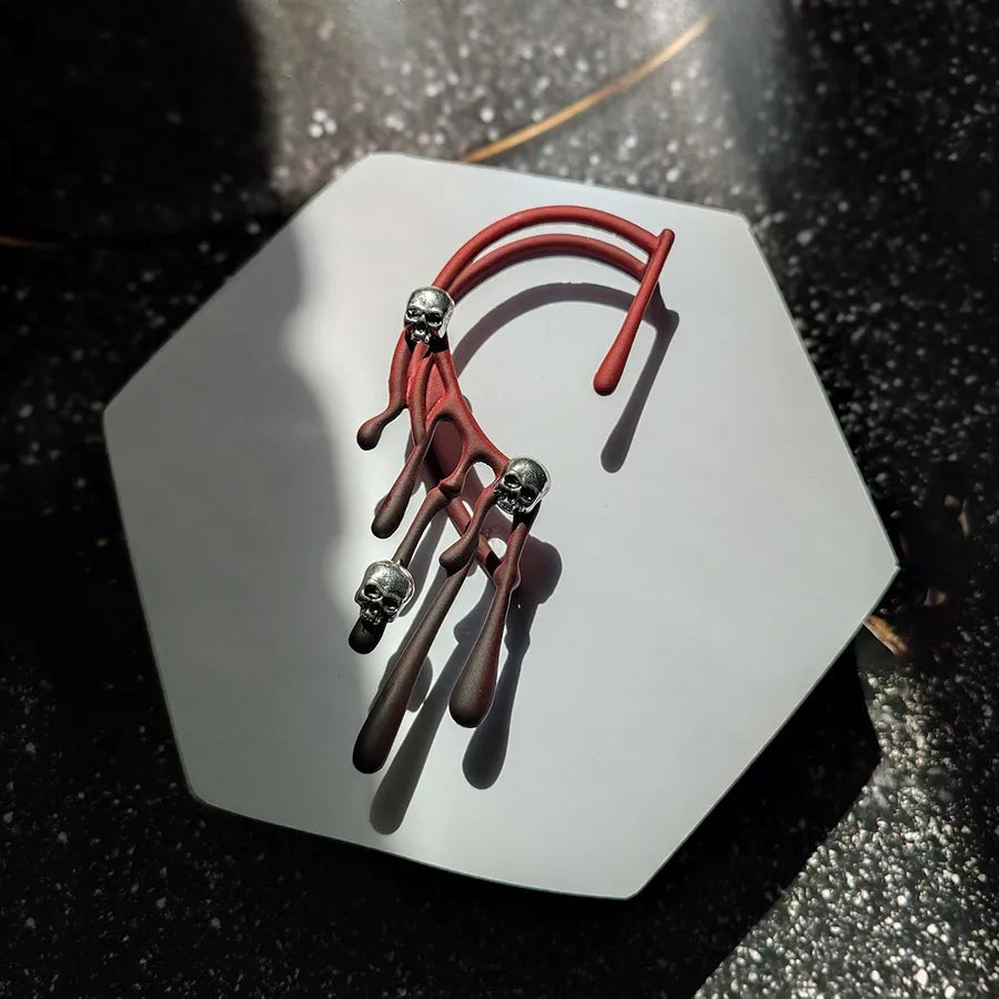 1 Piece Halloween Hip-Hop Retro Punk Skull Alloy Ear Cuffs - Red