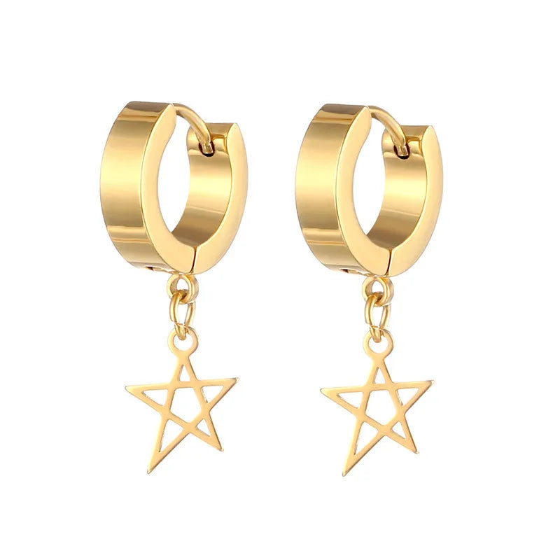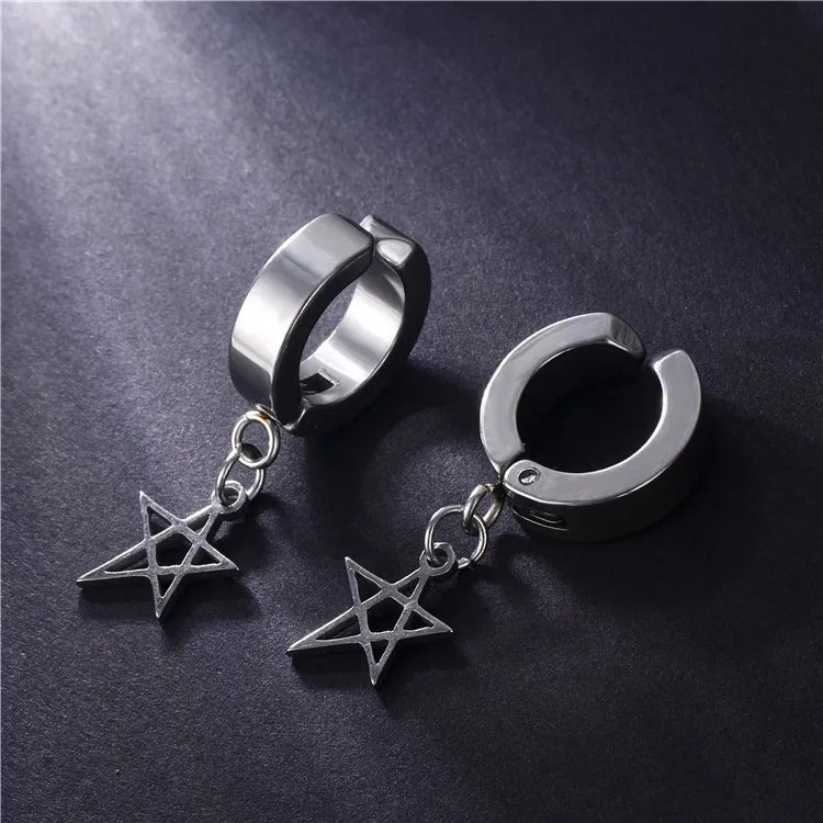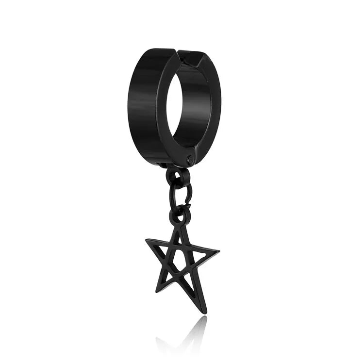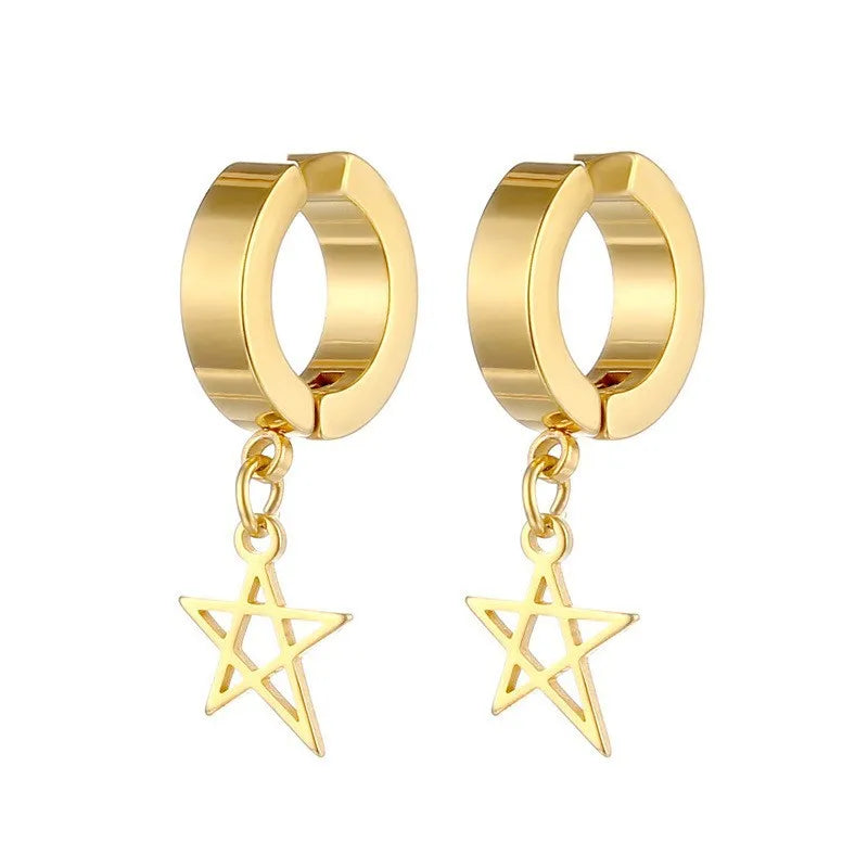 1 piece lady pentagram titanium steel plating hollow out drop earrings - Steel Ear Clip Five-Pointed Star (Single)
