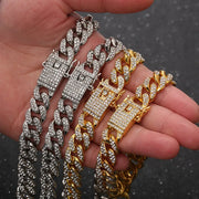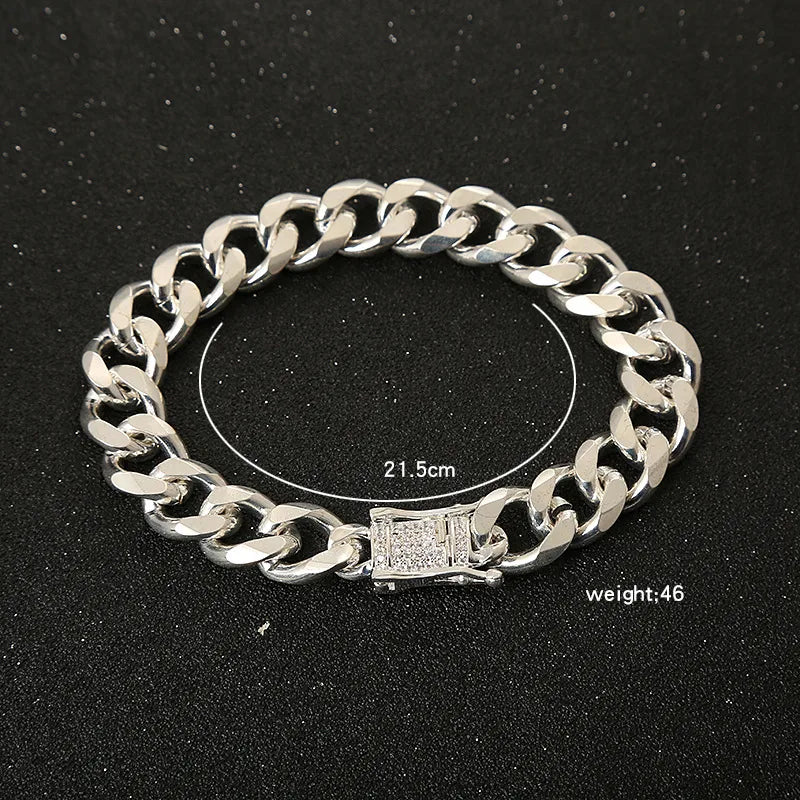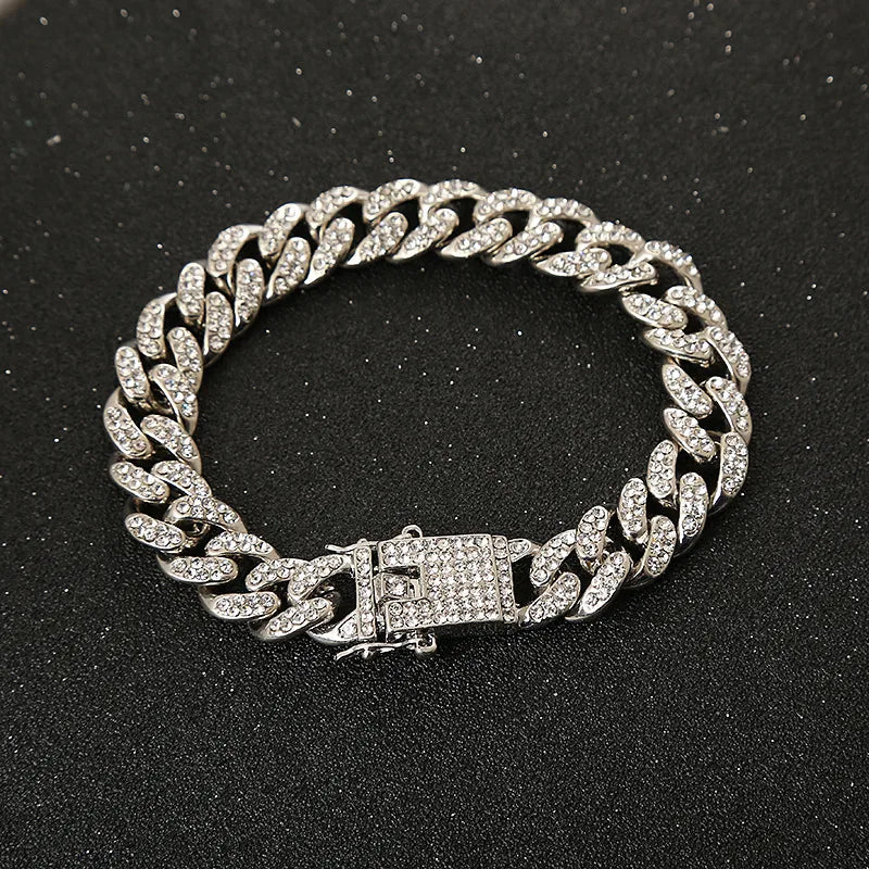 1 trendy jewelry full diamond men's and women's necklace hip hop jewelry dense diamond chain Hiphop Cuban bracelet accessories - Silver 20cm long