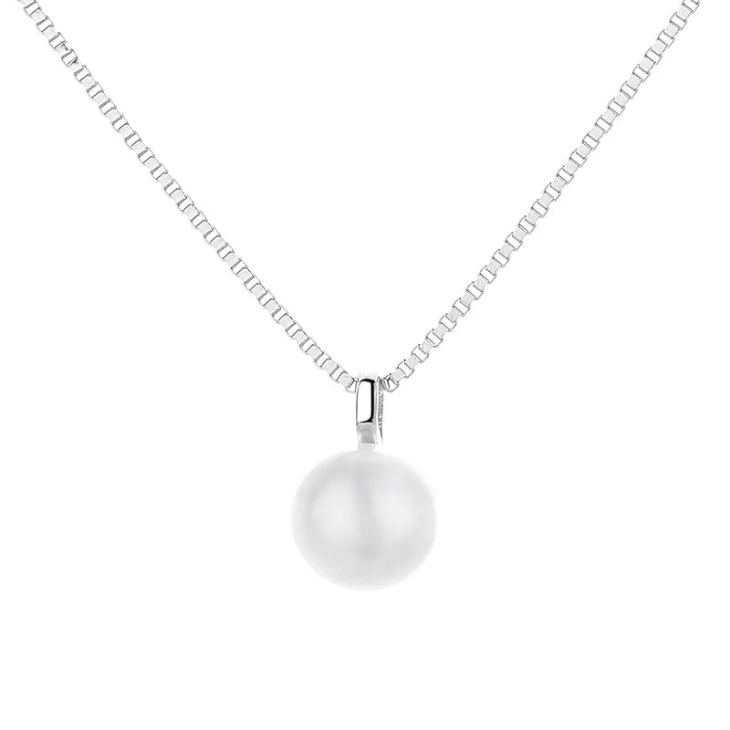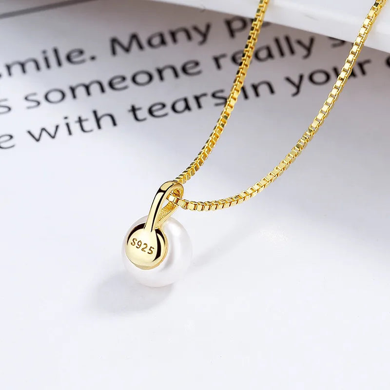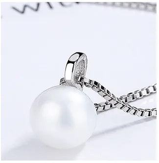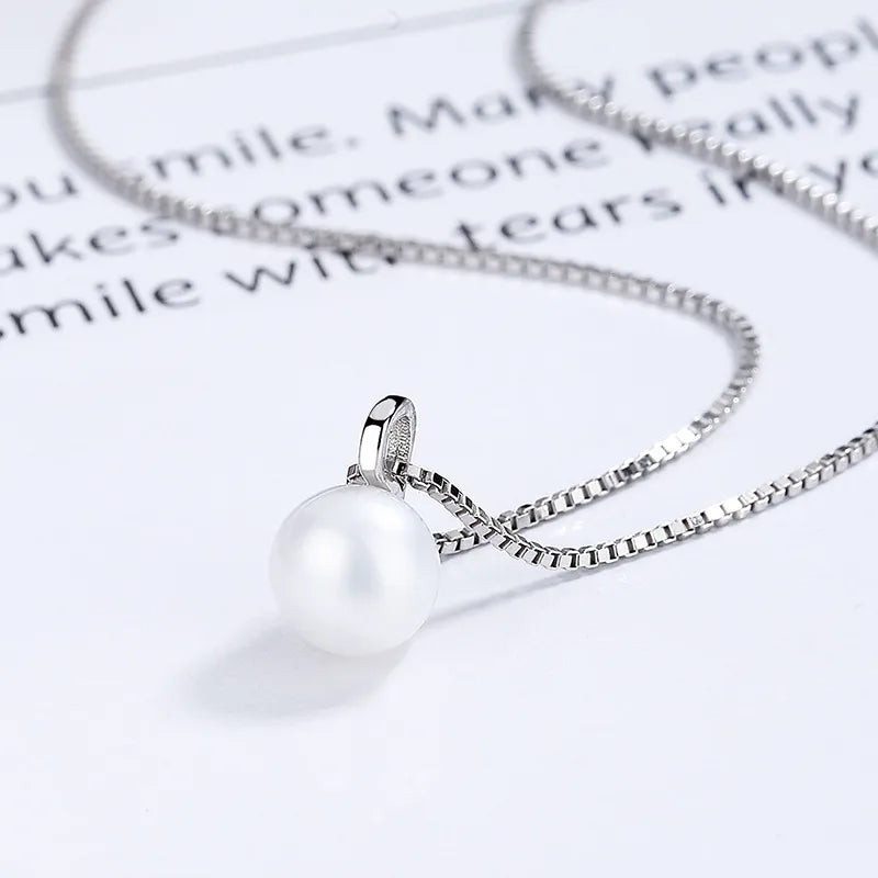 925 Sterling Silver Plating Pearl Charms Pendant Necklace - White Gold Color Necklace / 925 Silver