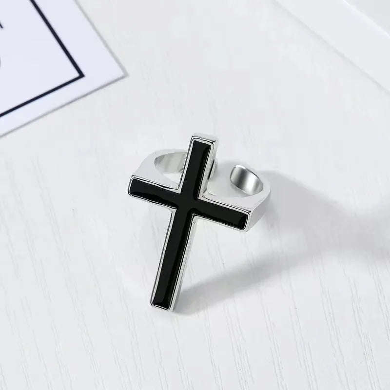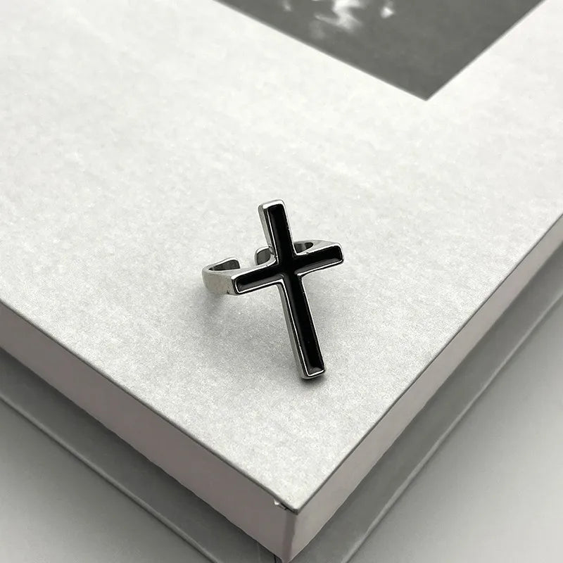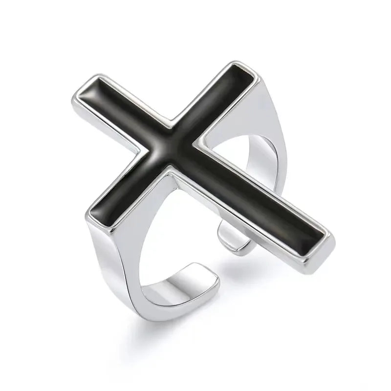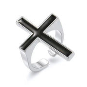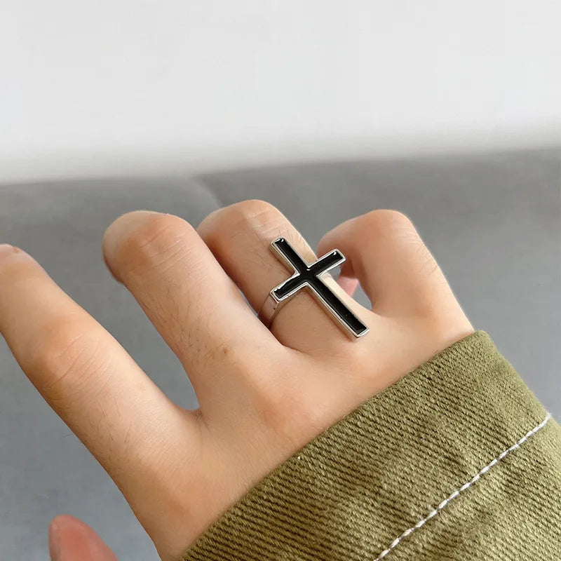 Black Cross Open Ring Hip Hop Style Vintage Punk Drip Oil Alloy Rings Unisex Personalized Jewelry Accessories - Adjustable Opening / Oil Drop Cross Ring